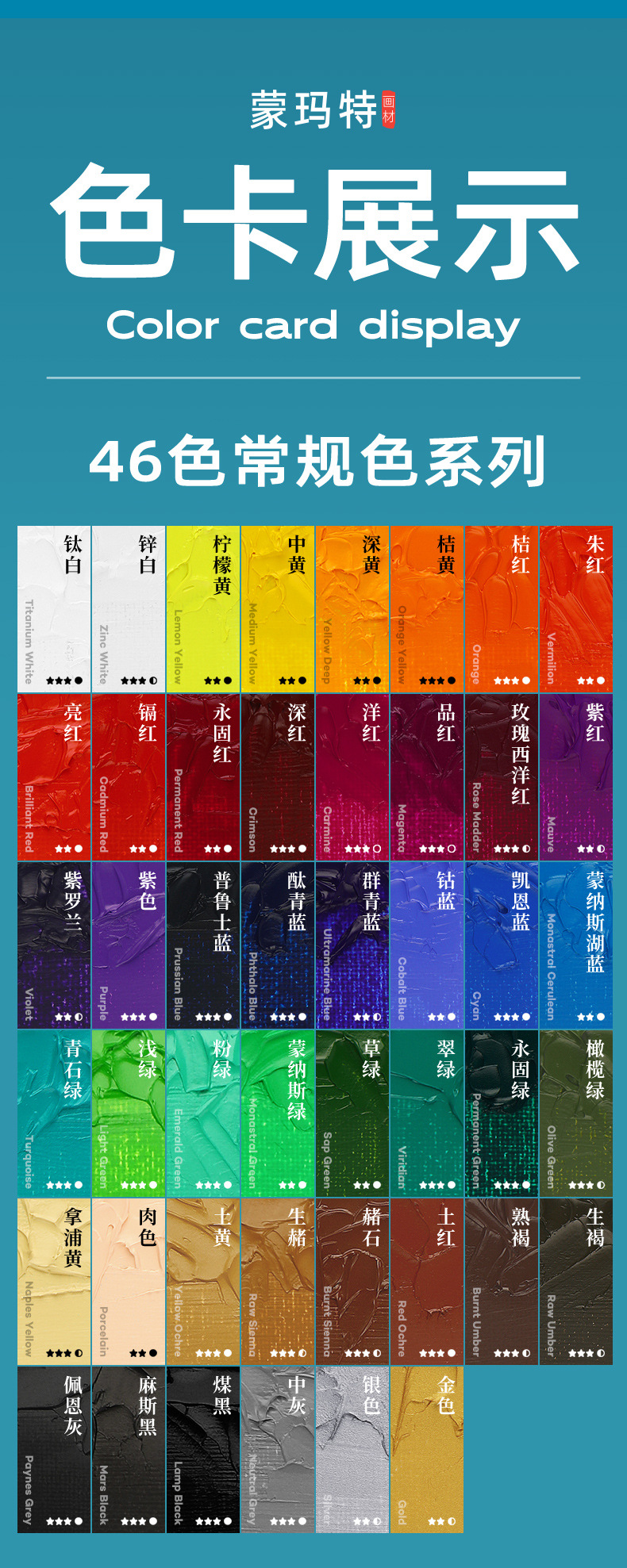 蒙玛特油画颜料100ml套装艺术创作46色油画颜料画室用大支白颜料