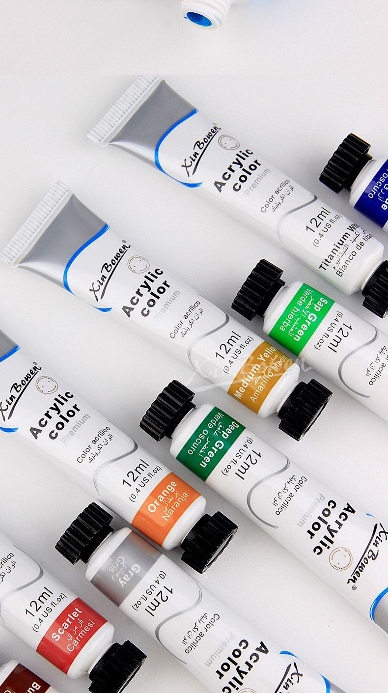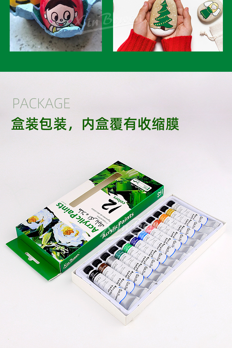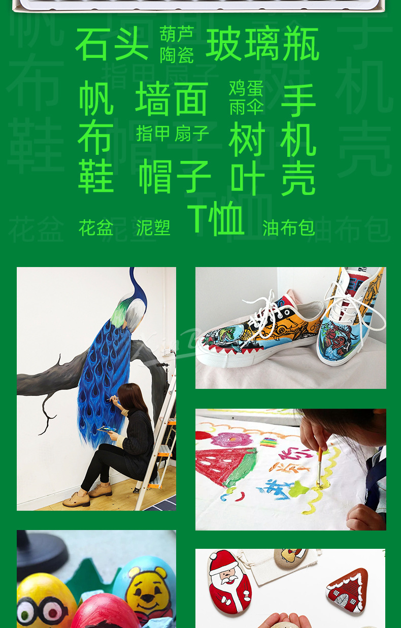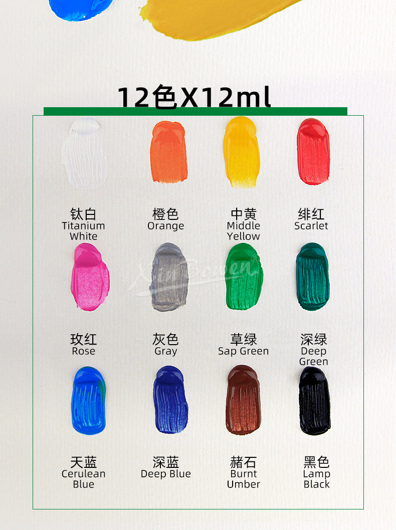 12色丙烯颜料套装 儿童绘画diy手绘颜料彩绘石头墙绘丙烯颜料批发