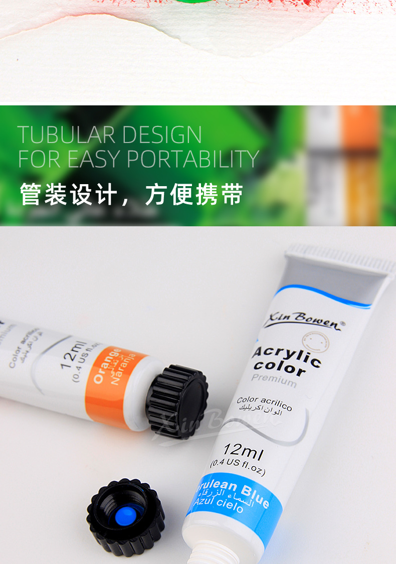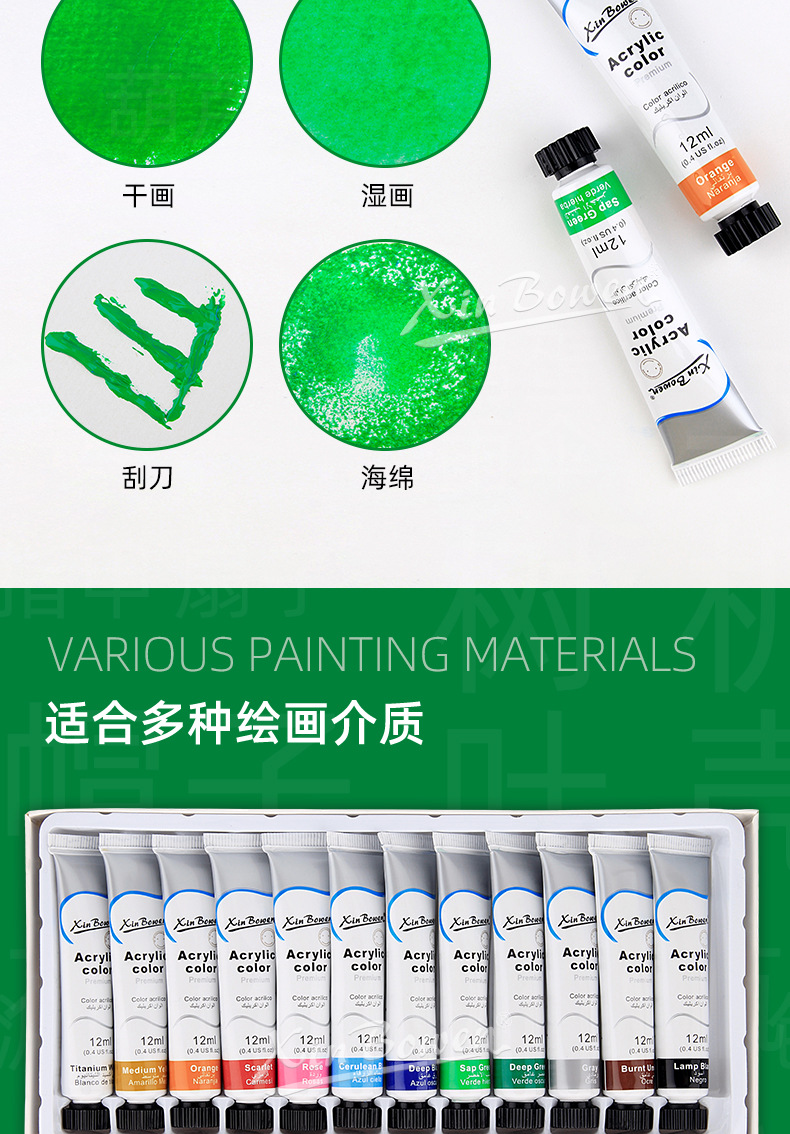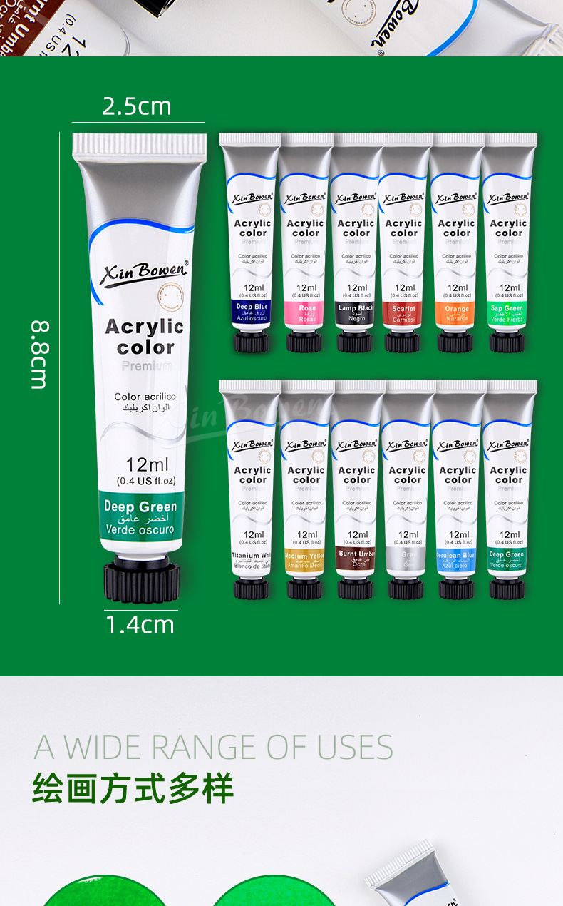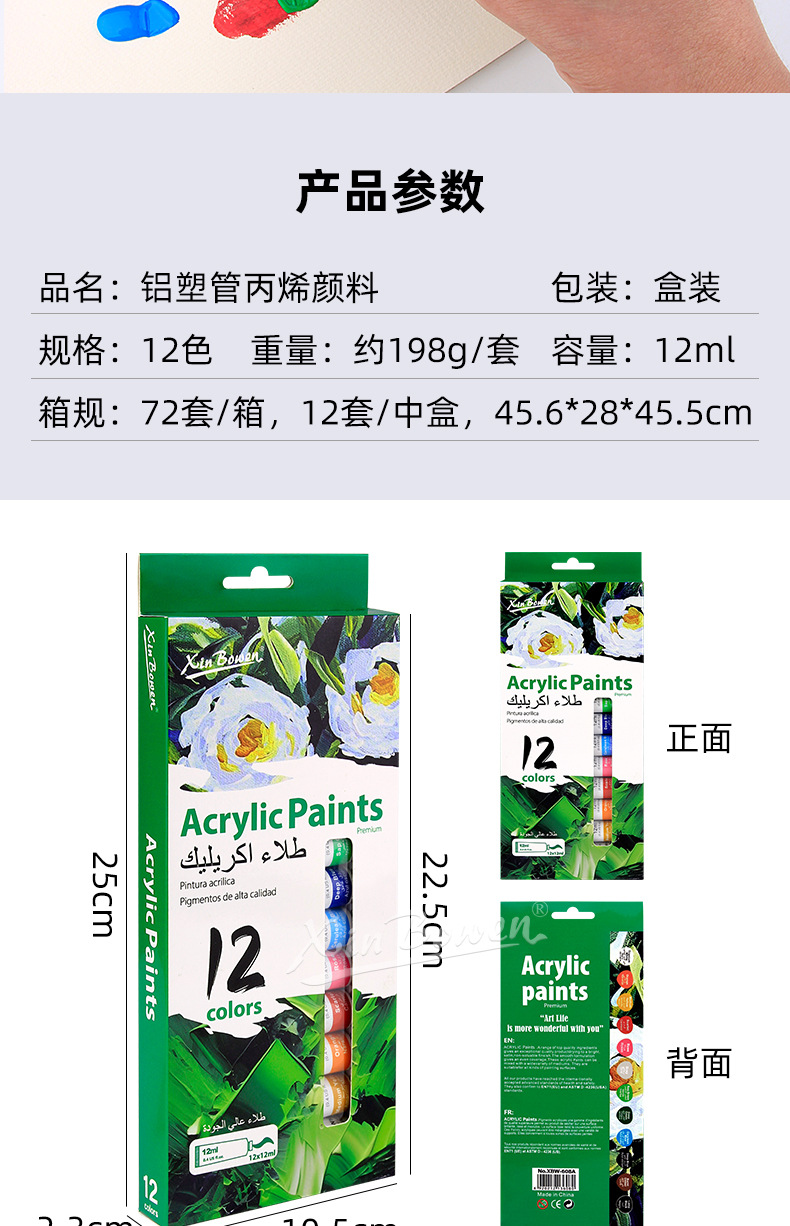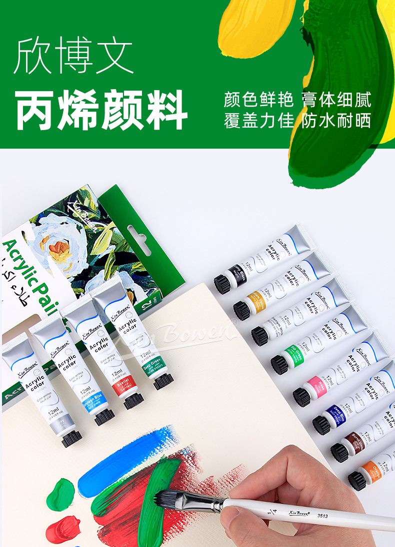 12色丙烯颜料套装 儿童绘画diy手绘颜料彩绘石头墙绘丙烯颜料批发