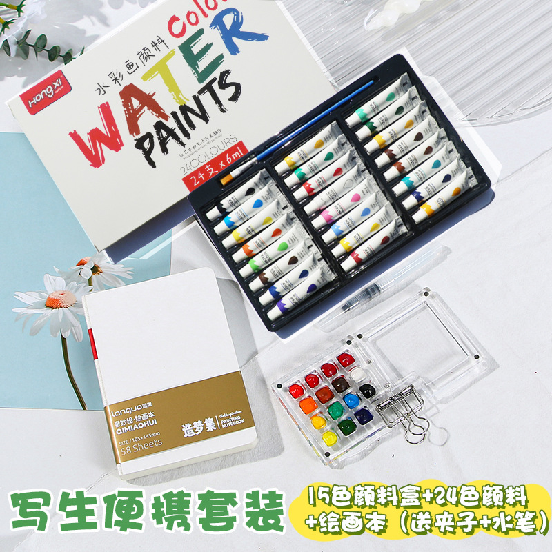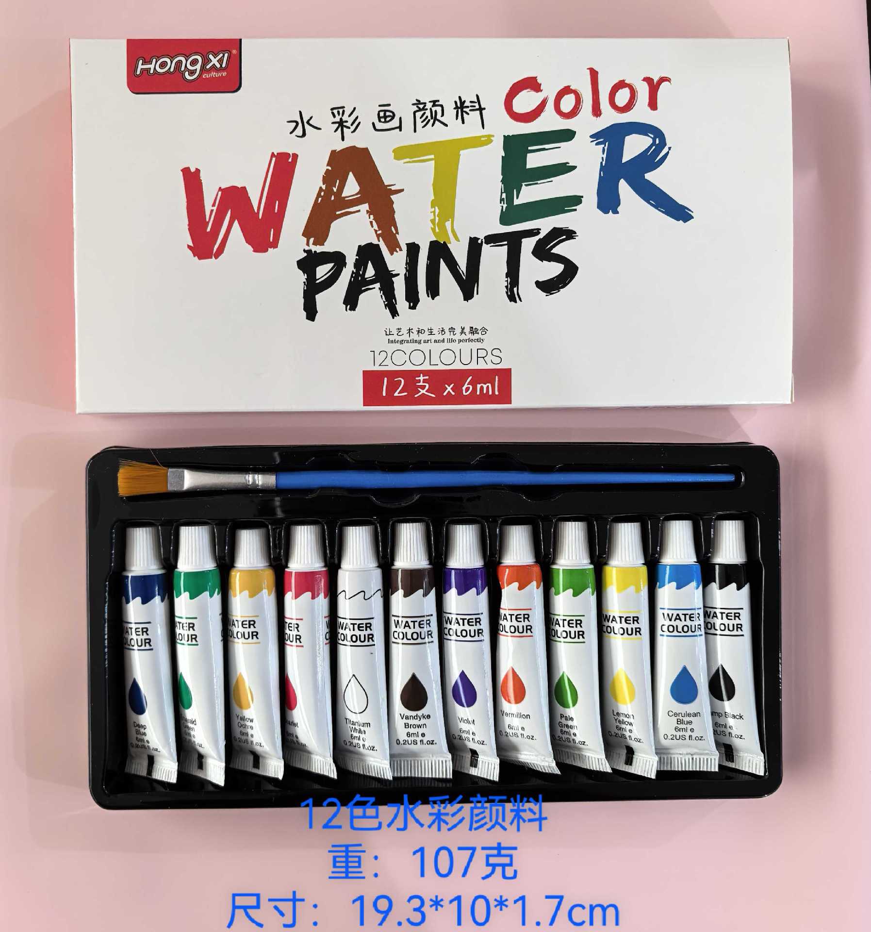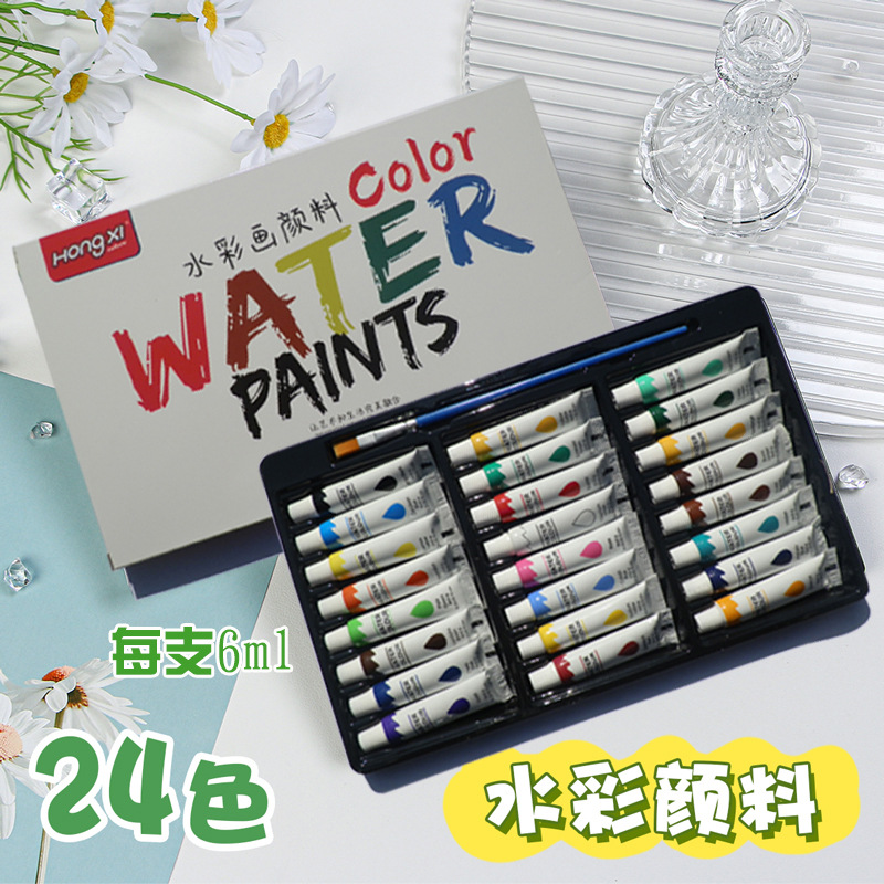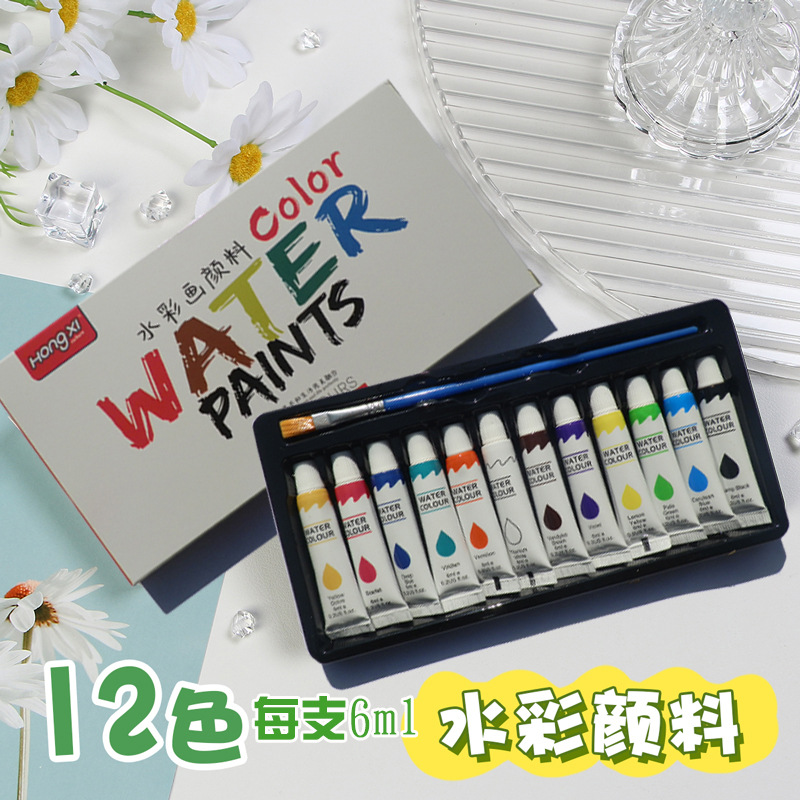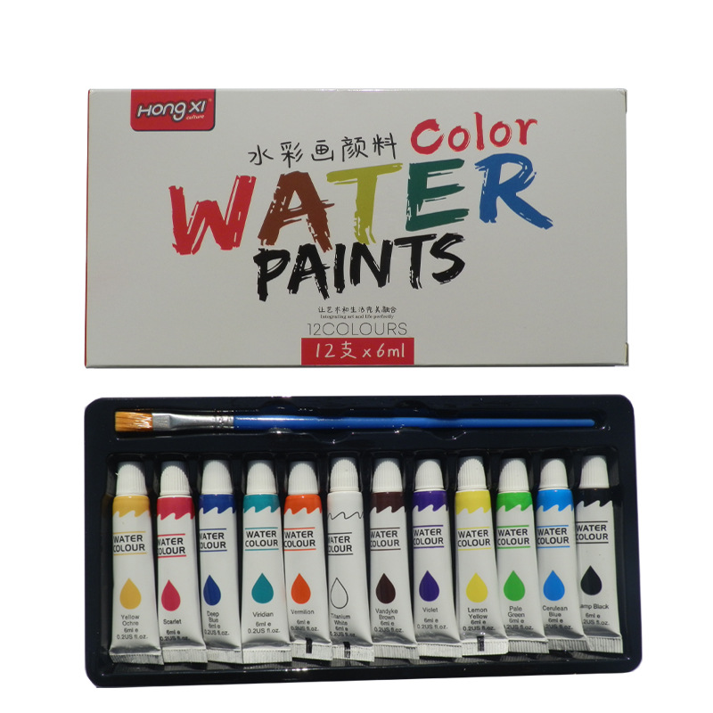 厂家供应跨境水彩颜料丙烯油画颜料美术颜料学生画画批发6ml洪僖