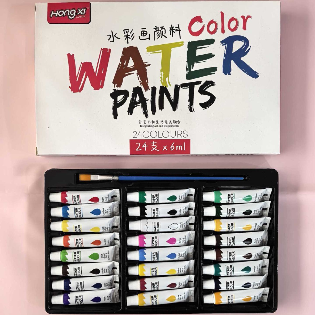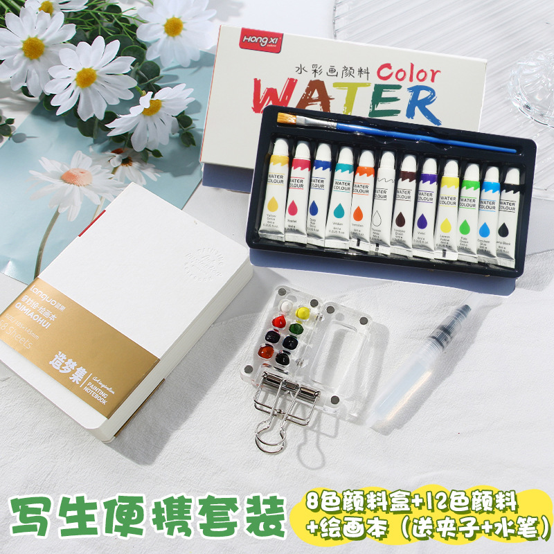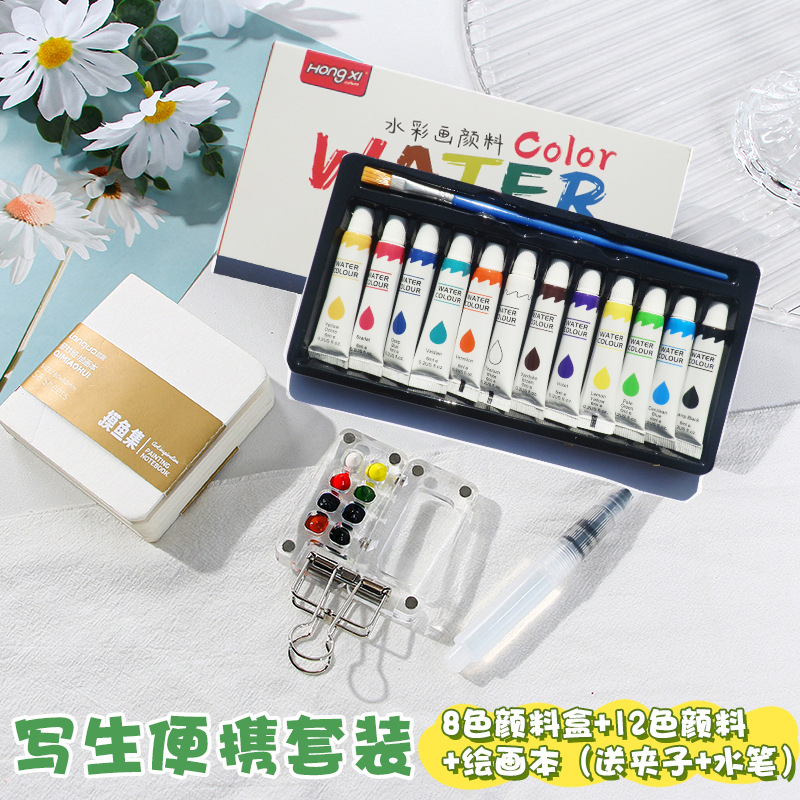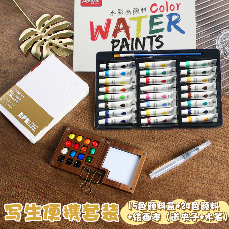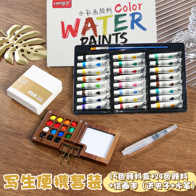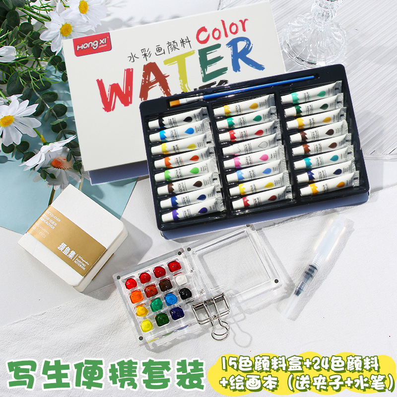 厂家供应跨境水彩颜料丙烯油画颜料美术颜料学生画画批发6ml洪僖