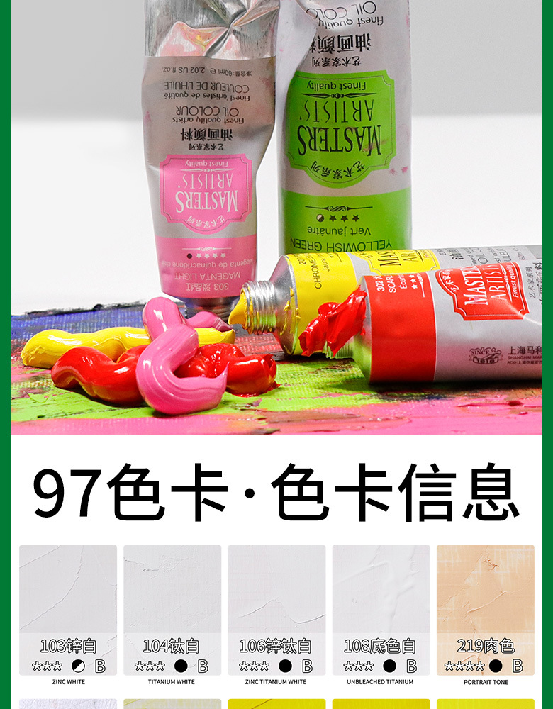 马利艺术家级油画颜料60/200ML高级创作古典慢干半不透明罩染油彩