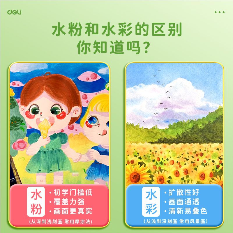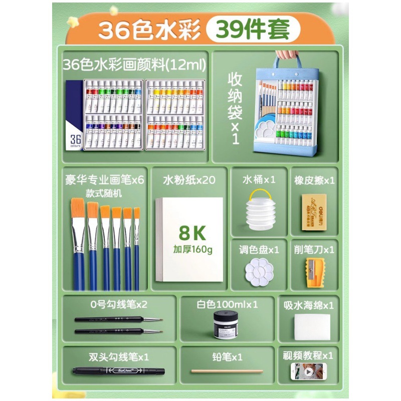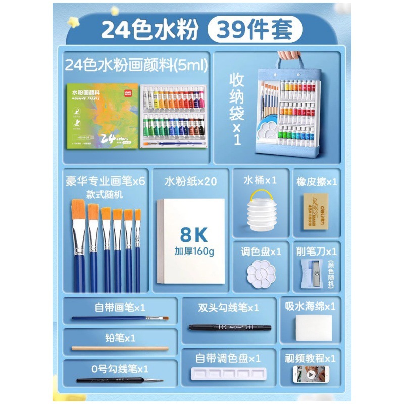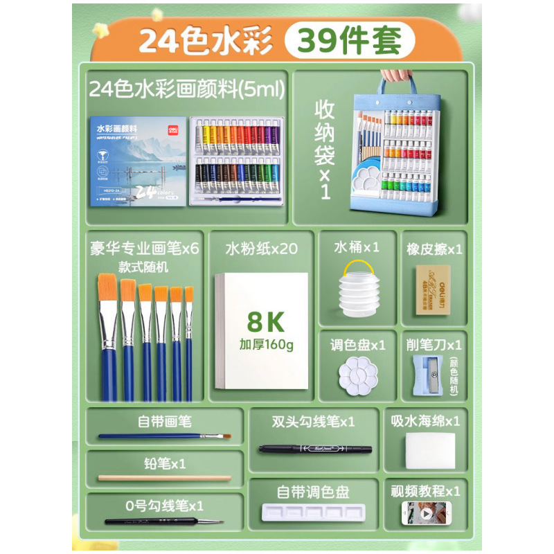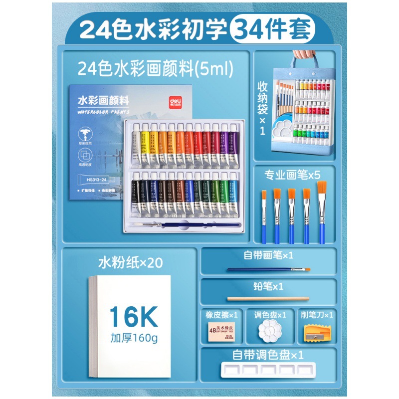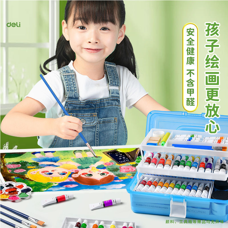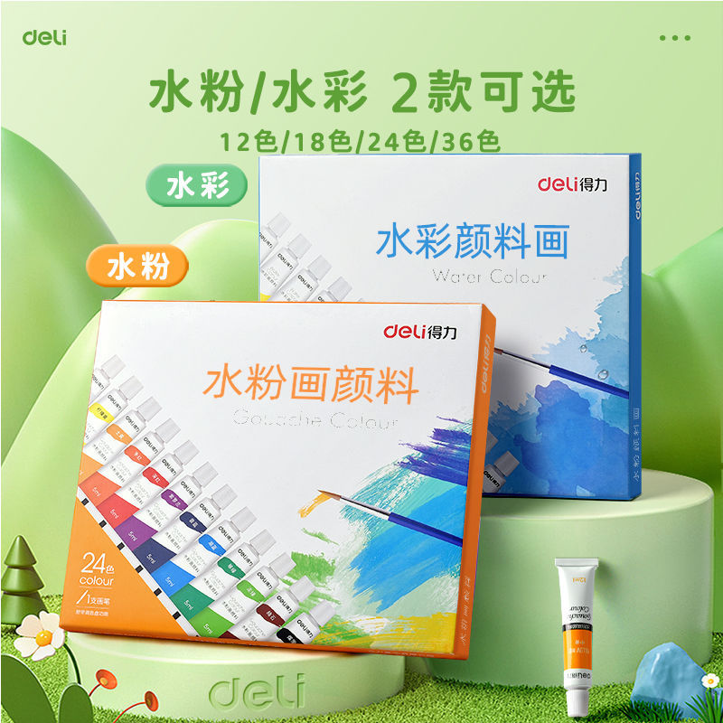 得力水彩水粉画颜料套装24色油画国画小学生儿童初学者美术专用