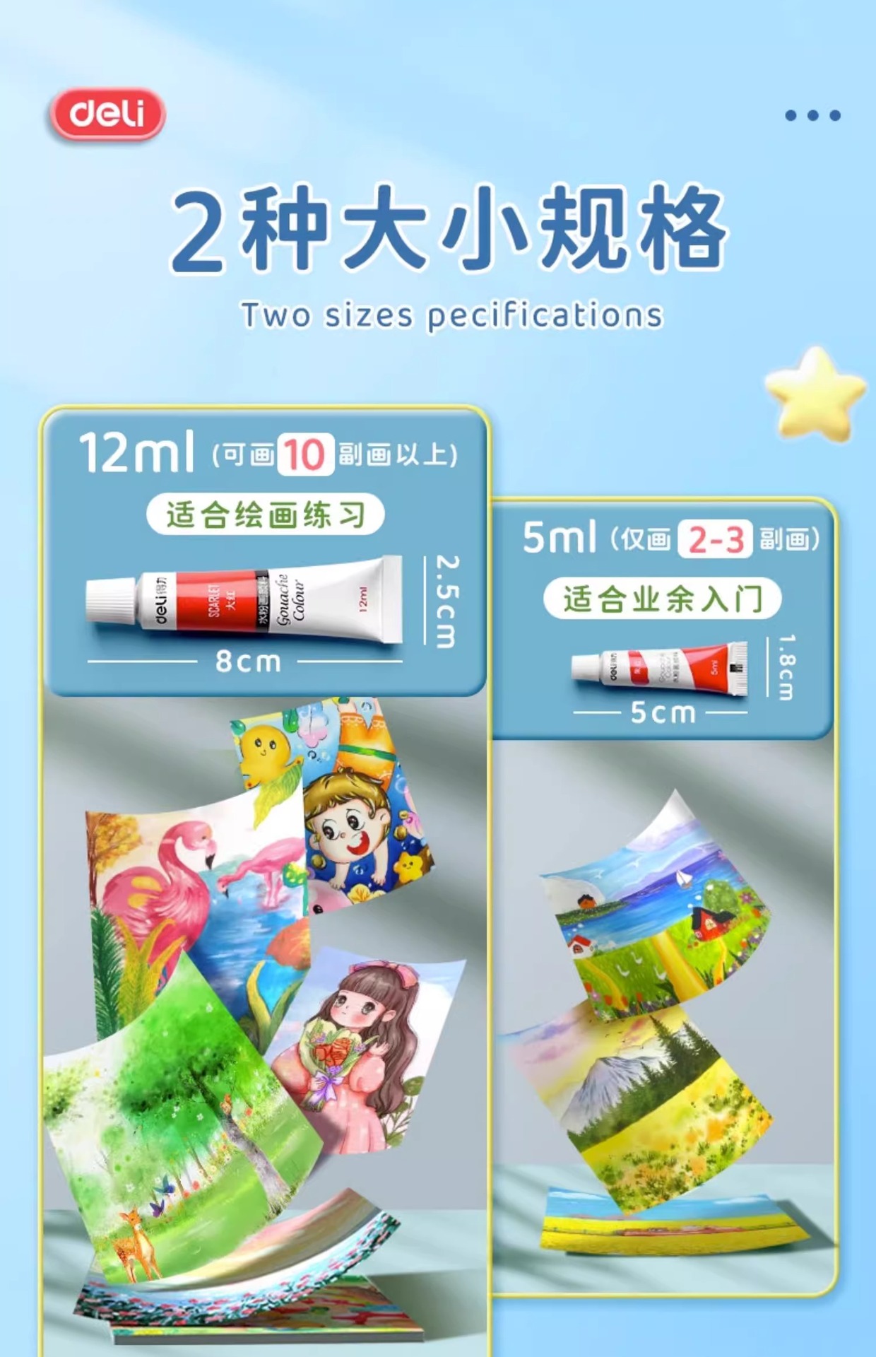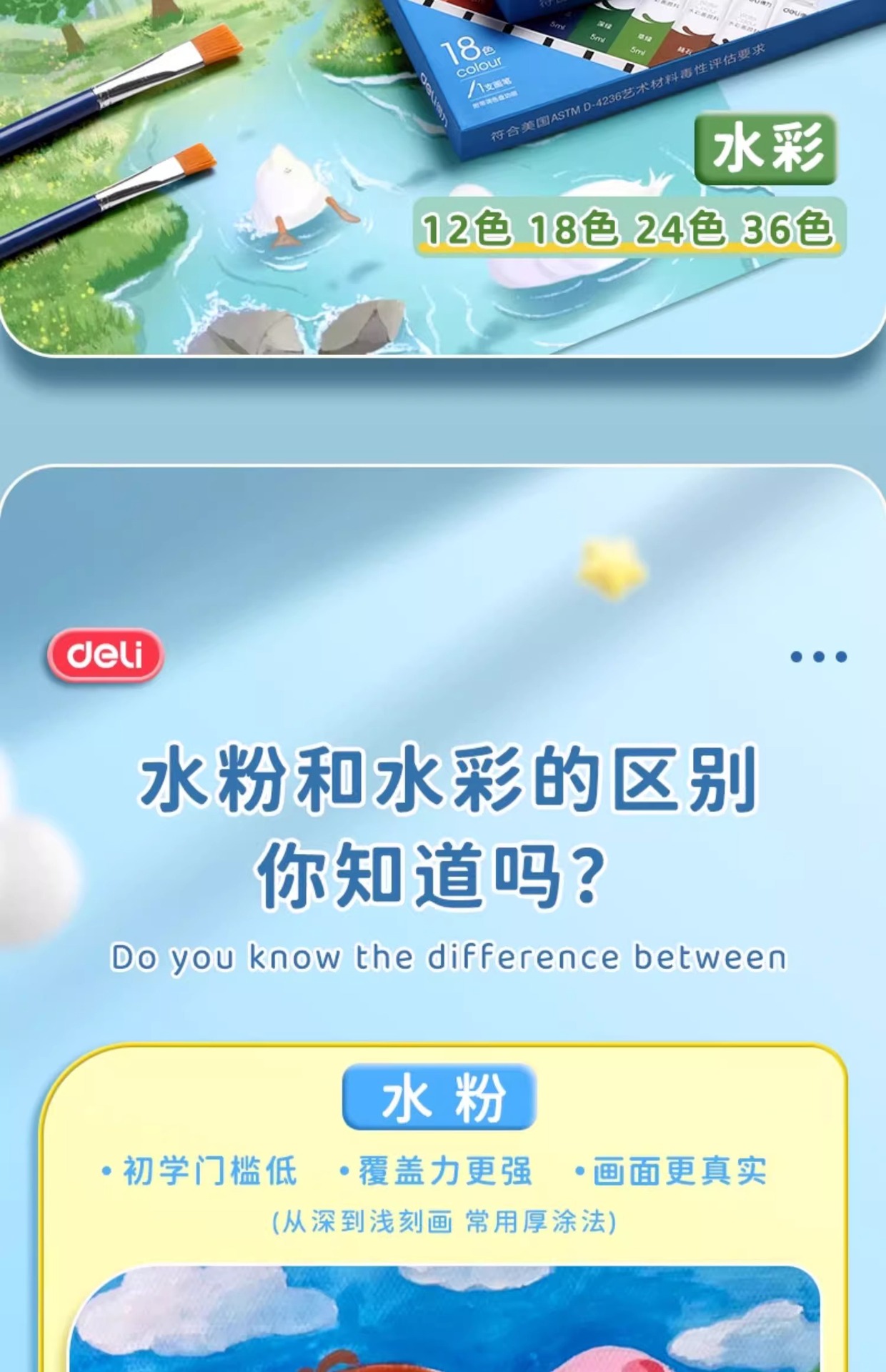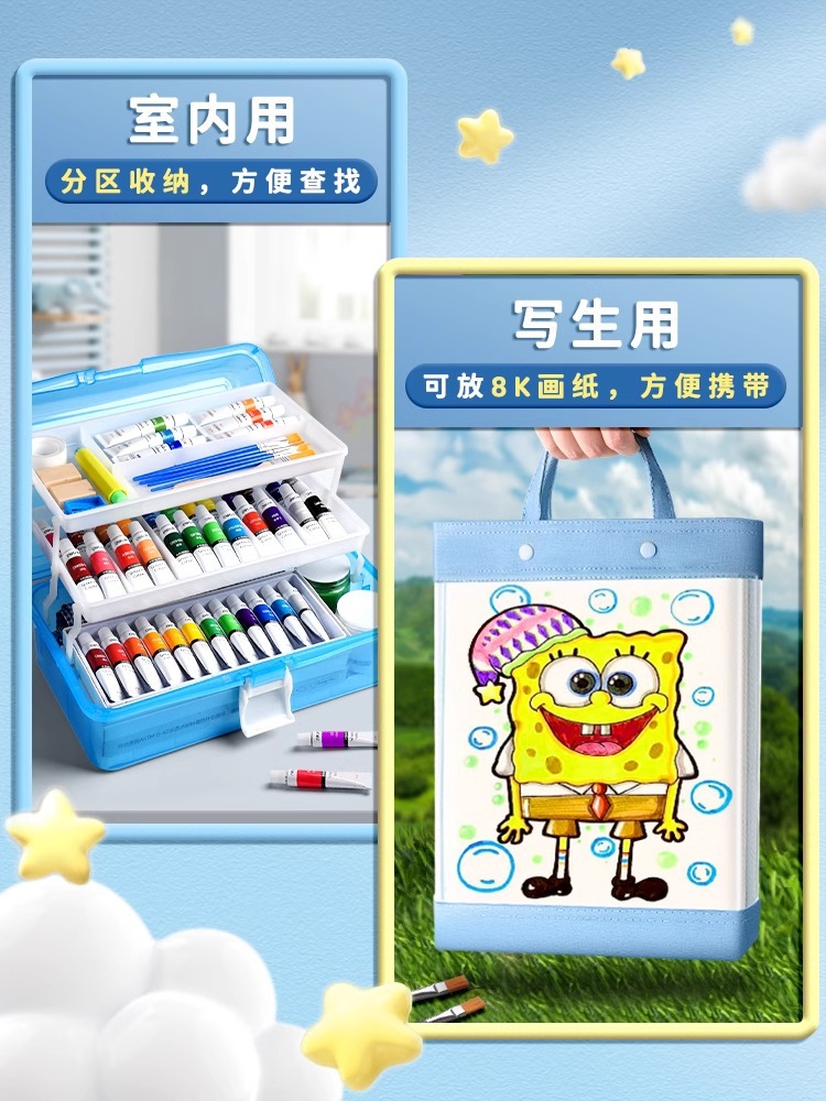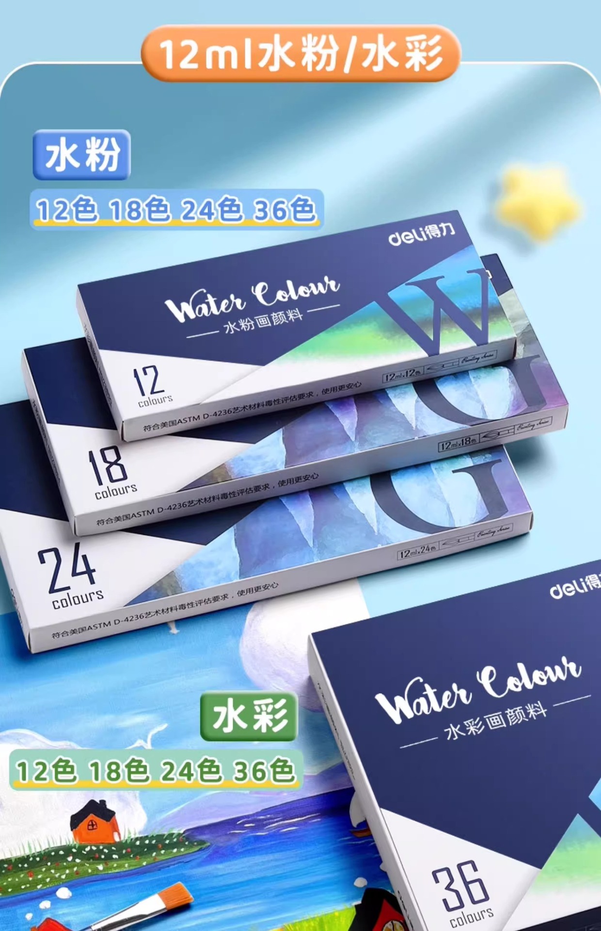 得力水彩水粉画颜料套装24色油画国画小学生儿童初学者美术专用