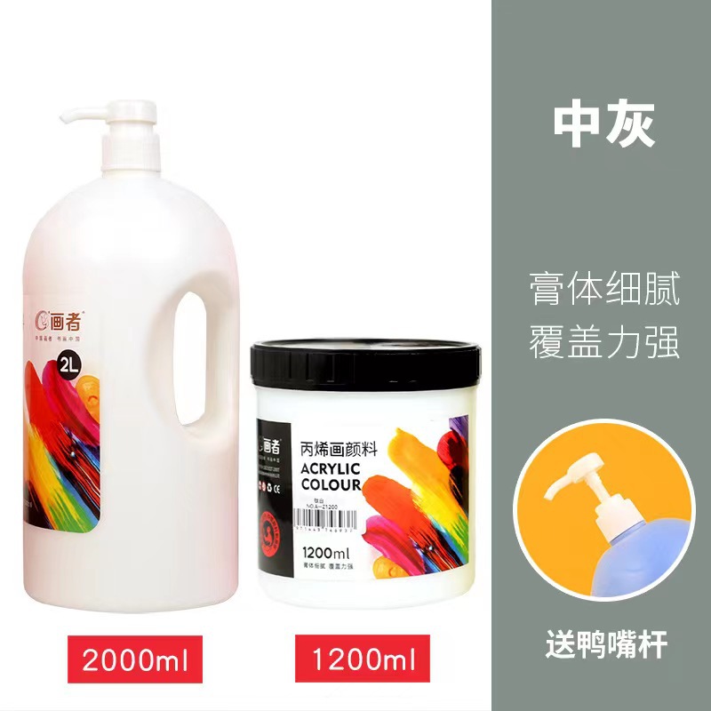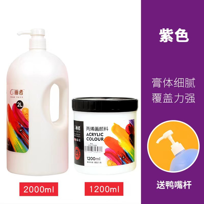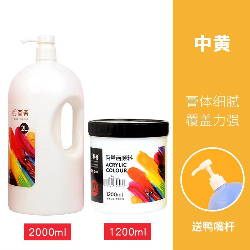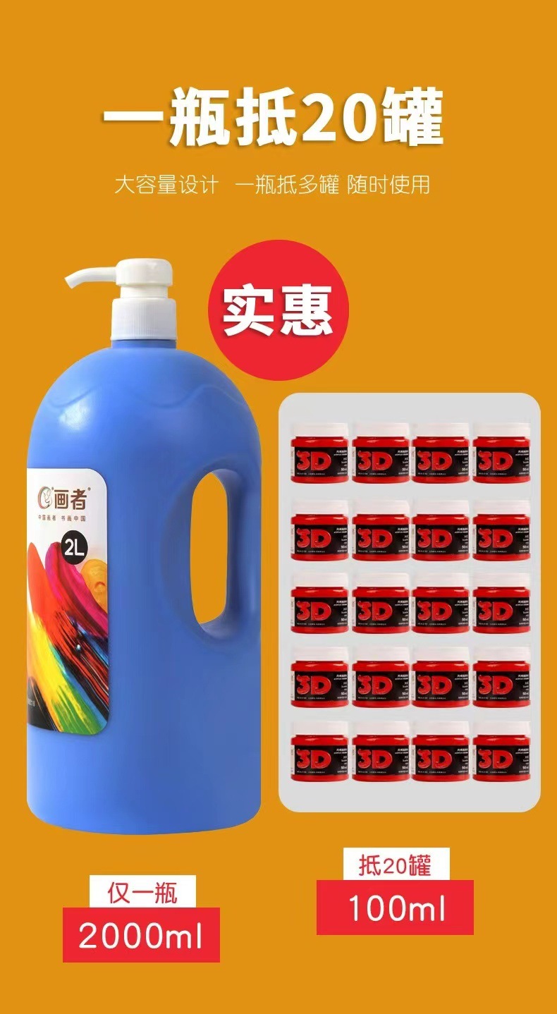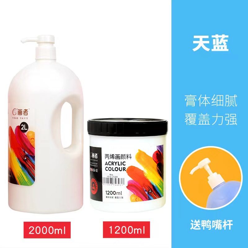 丙烯颜料批发2L/1.2L/0.5L大桶按压式53色墙绘画室培训专用不掉色