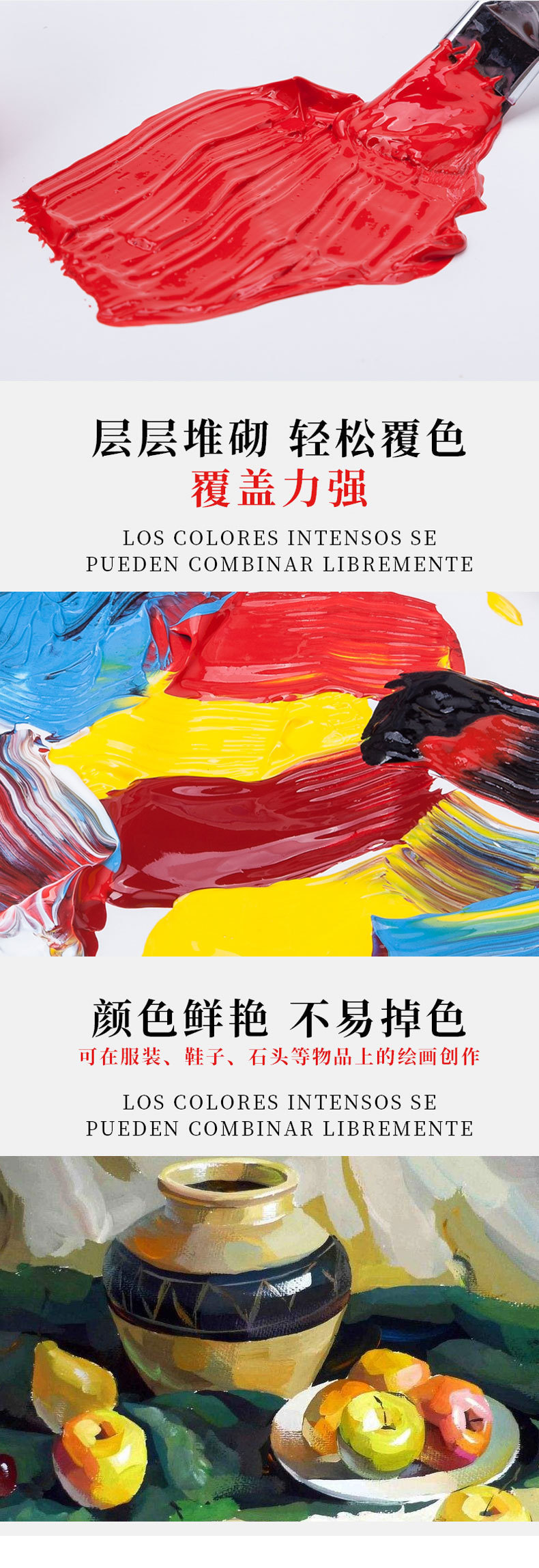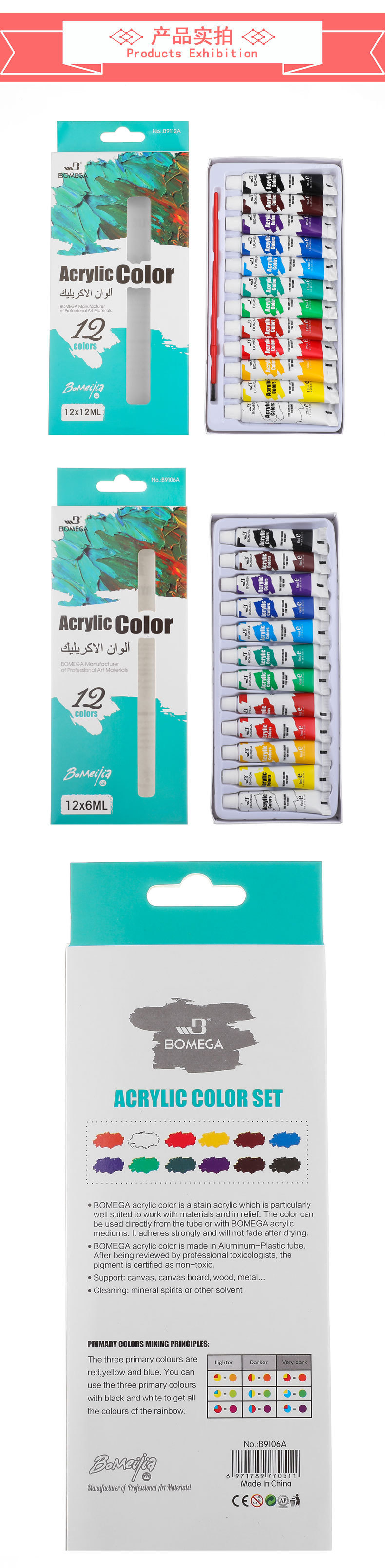 厂家12色丙烯油画颜料条批发 跨境6ml/12ml水粉水彩绘画颜料套装