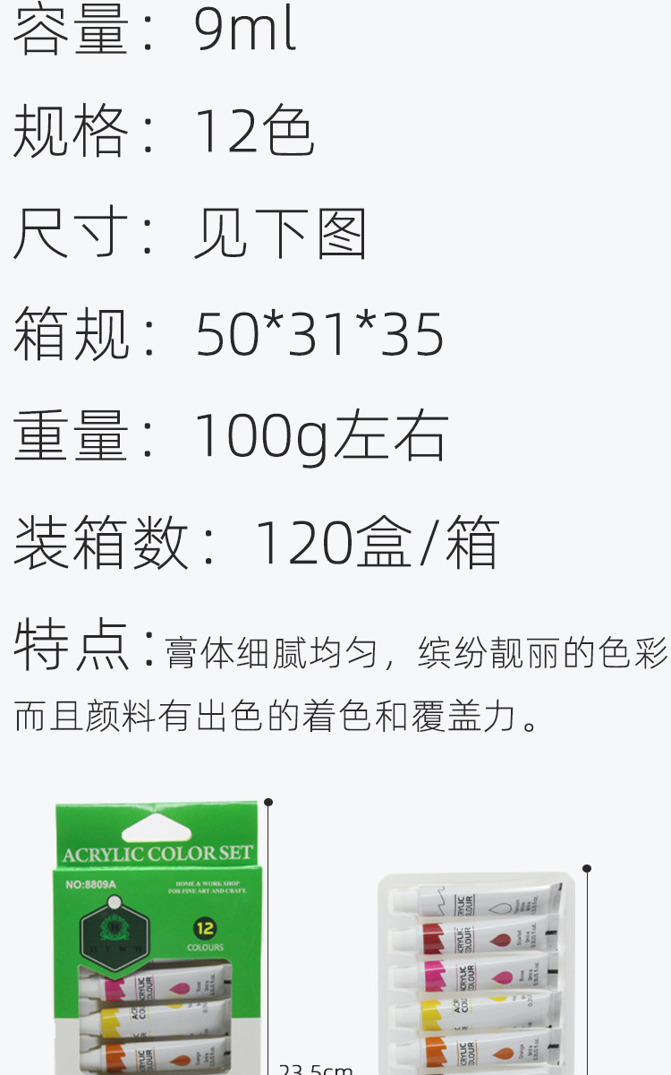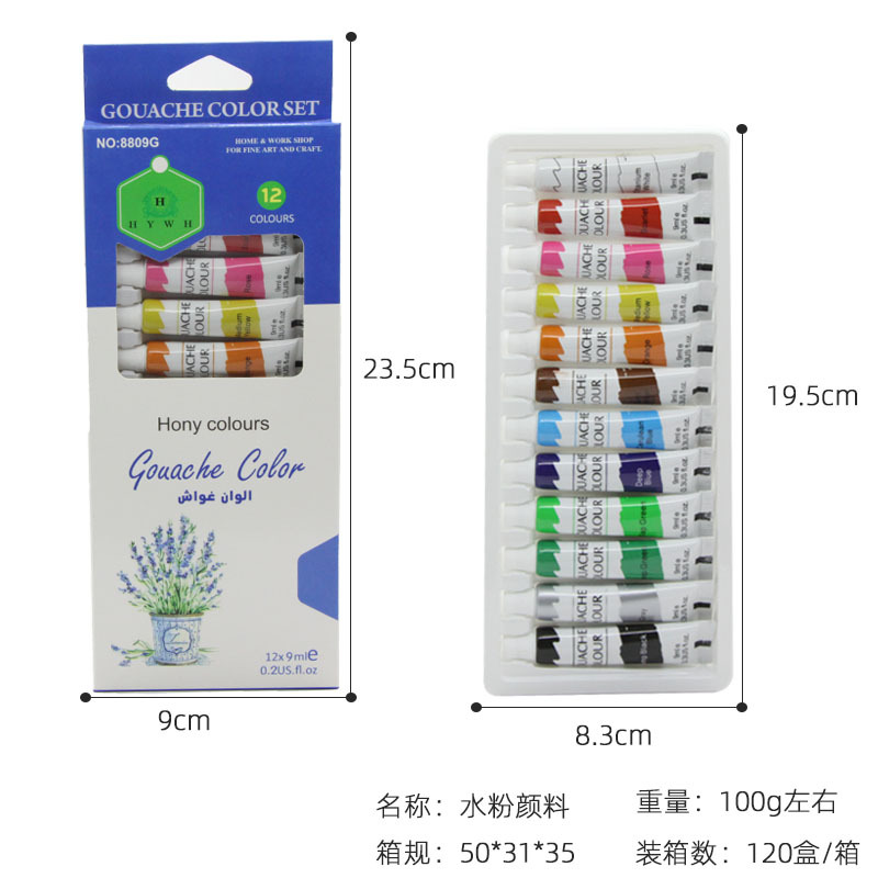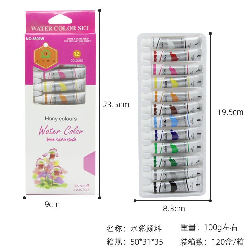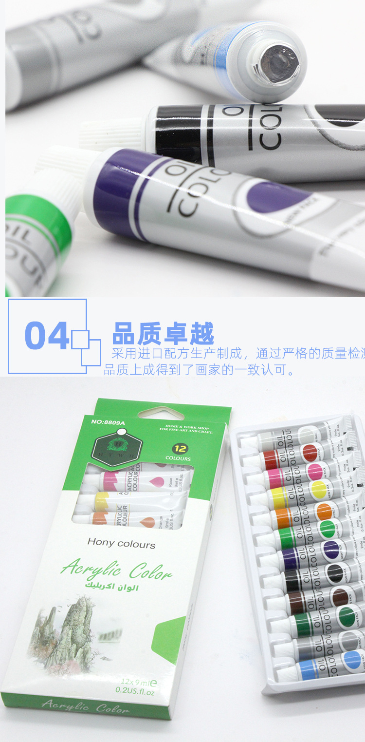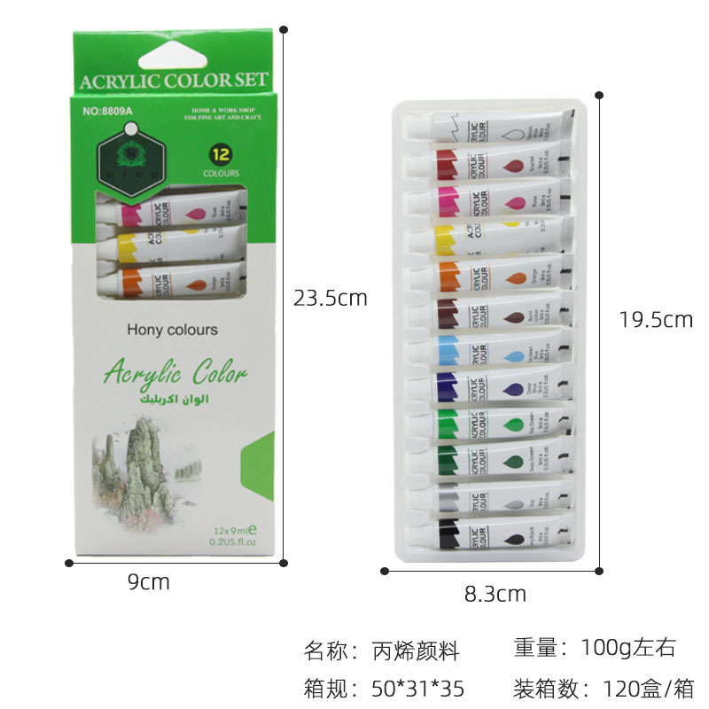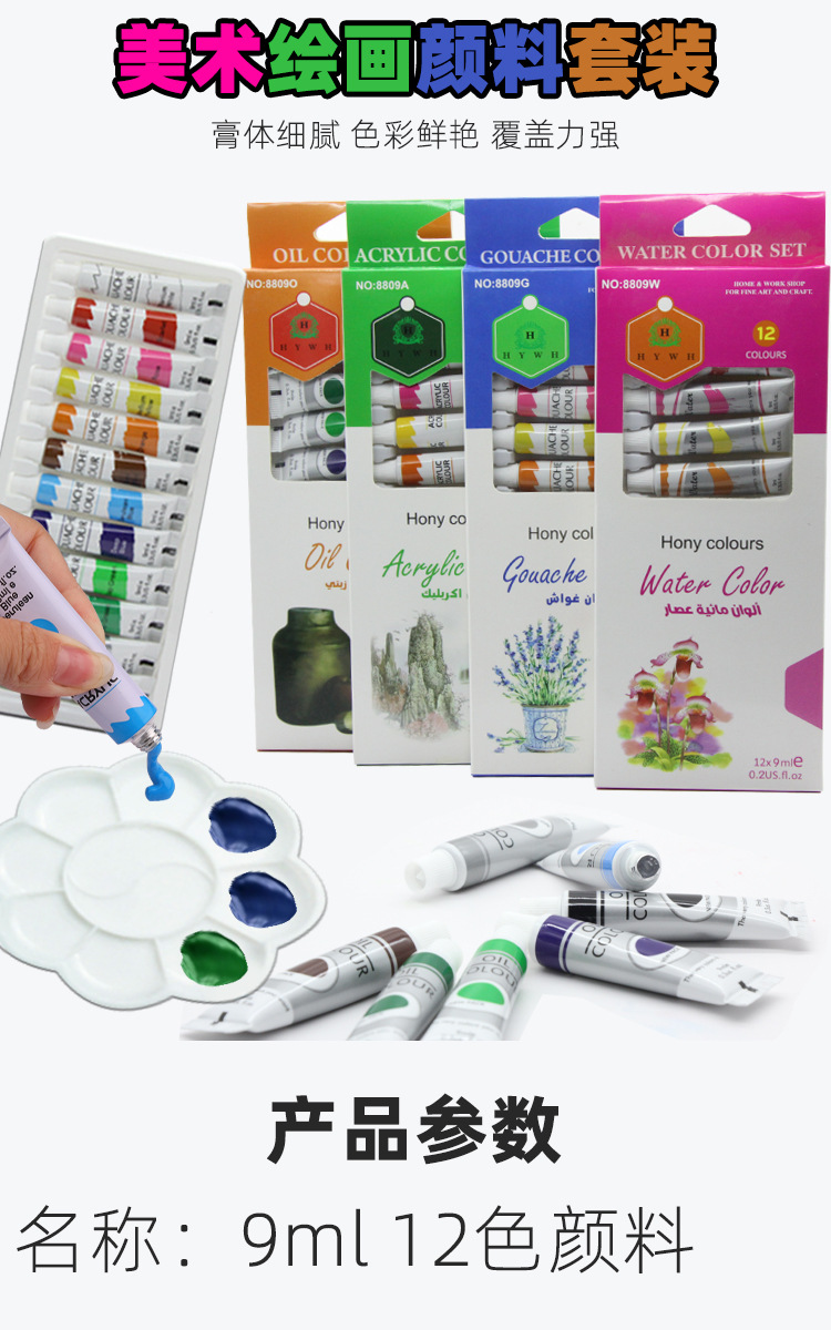 12色9ml水彩丙烯油画颜料美术颜料学生画画美术用品套装绘画手绘