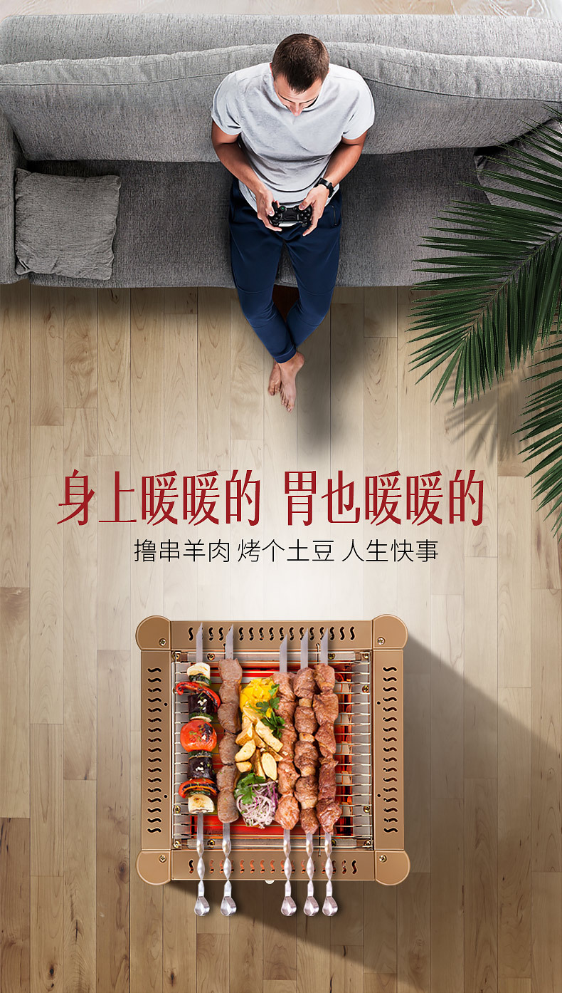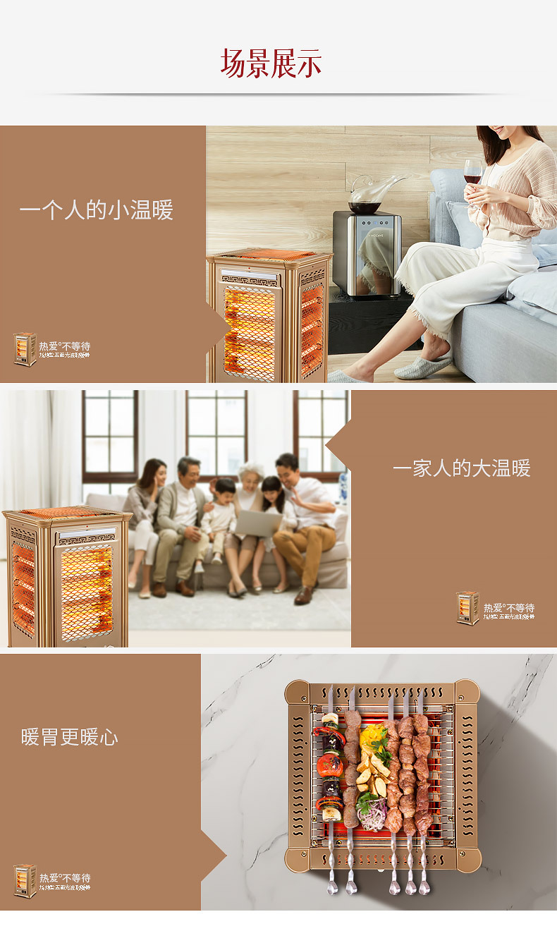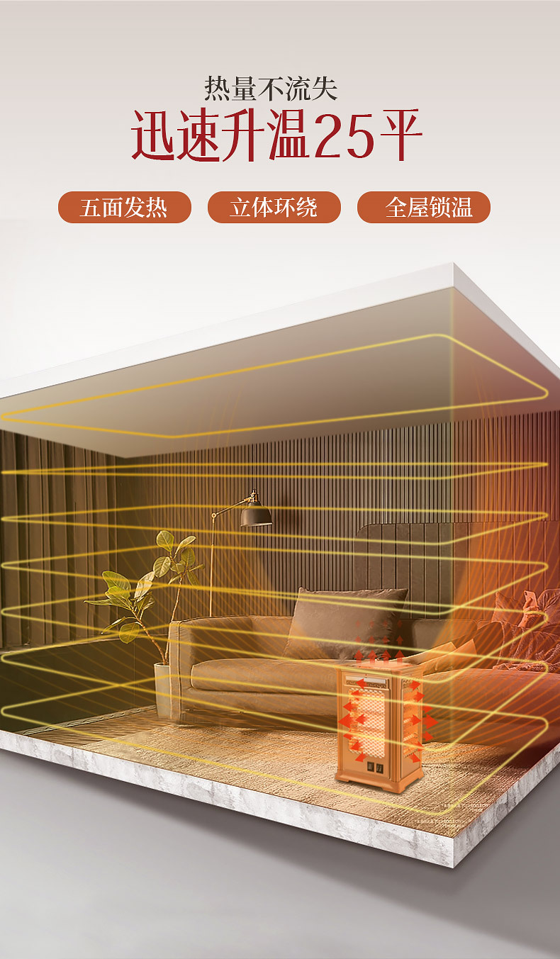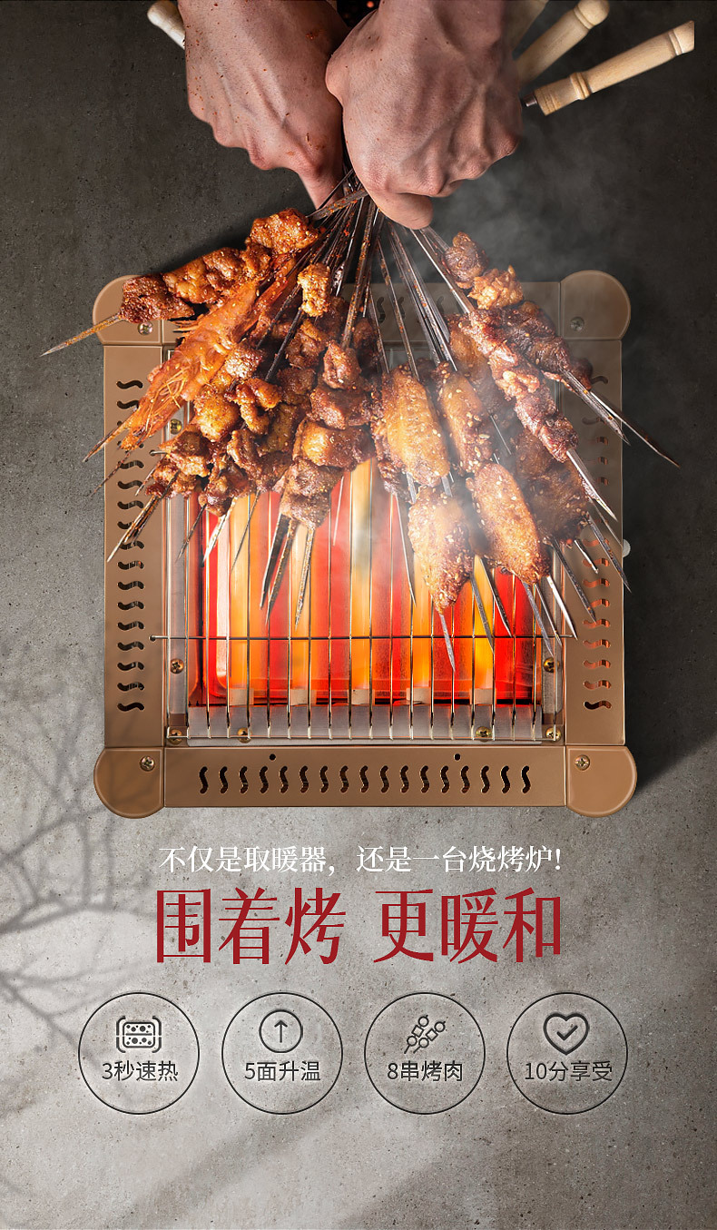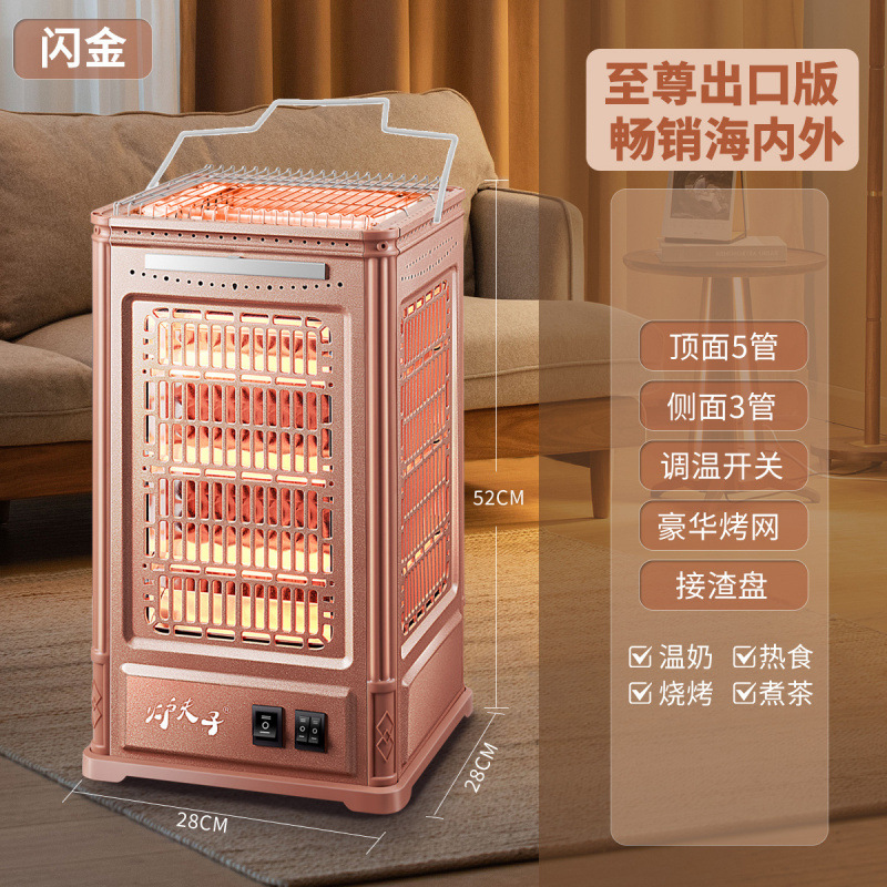 炉夫子五面取暖器烤火炉家用烧烤型小太阳电热扇电暖气四面电烤炉
