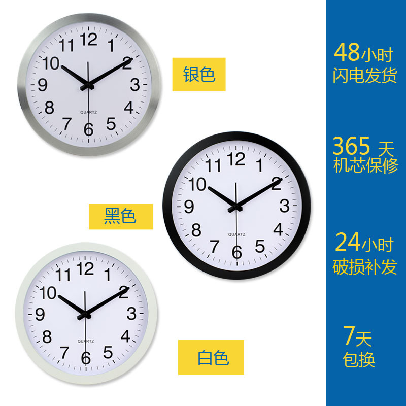 12英寸金属圆形客厅挂钟 简约家居挂饰酒店石英钟 卧室静音壁挂钟