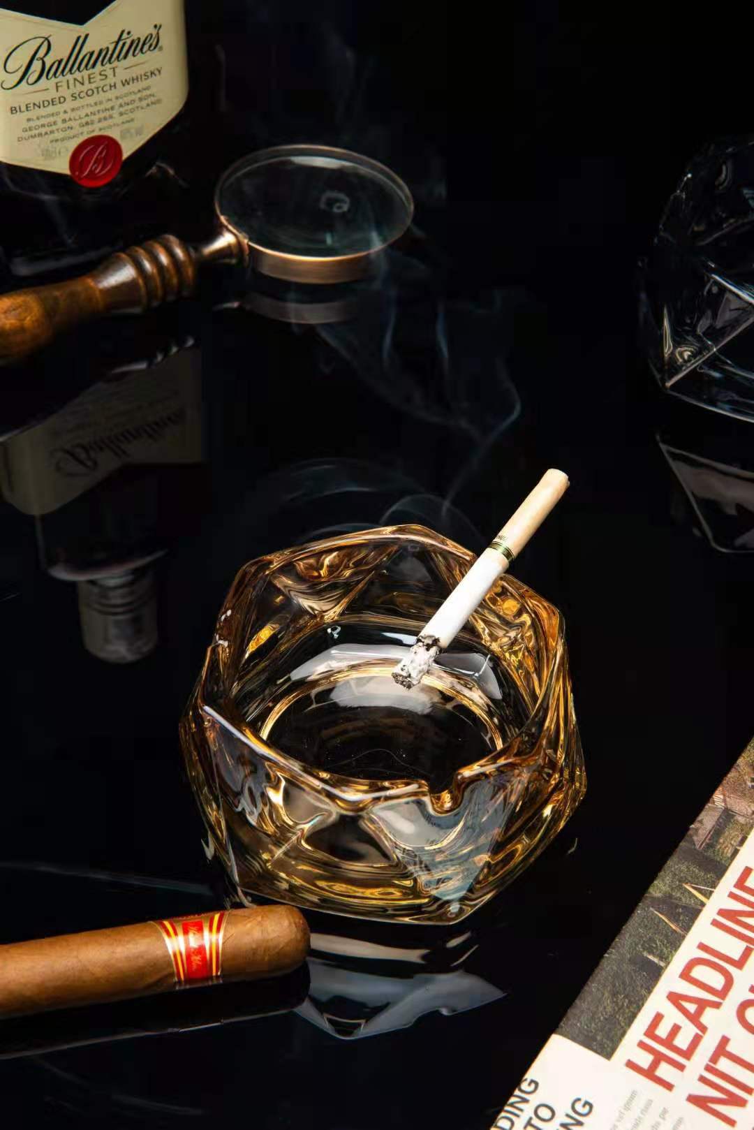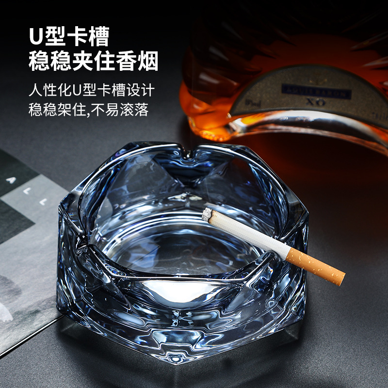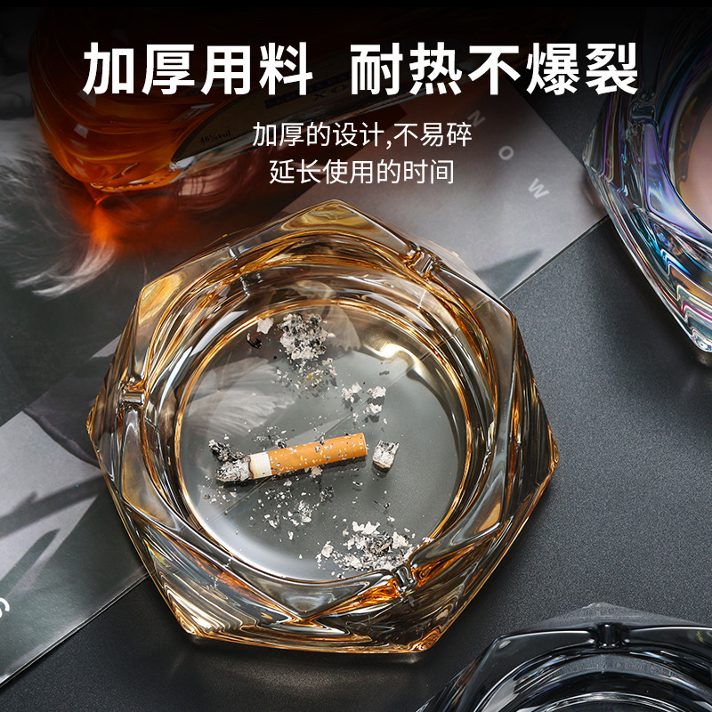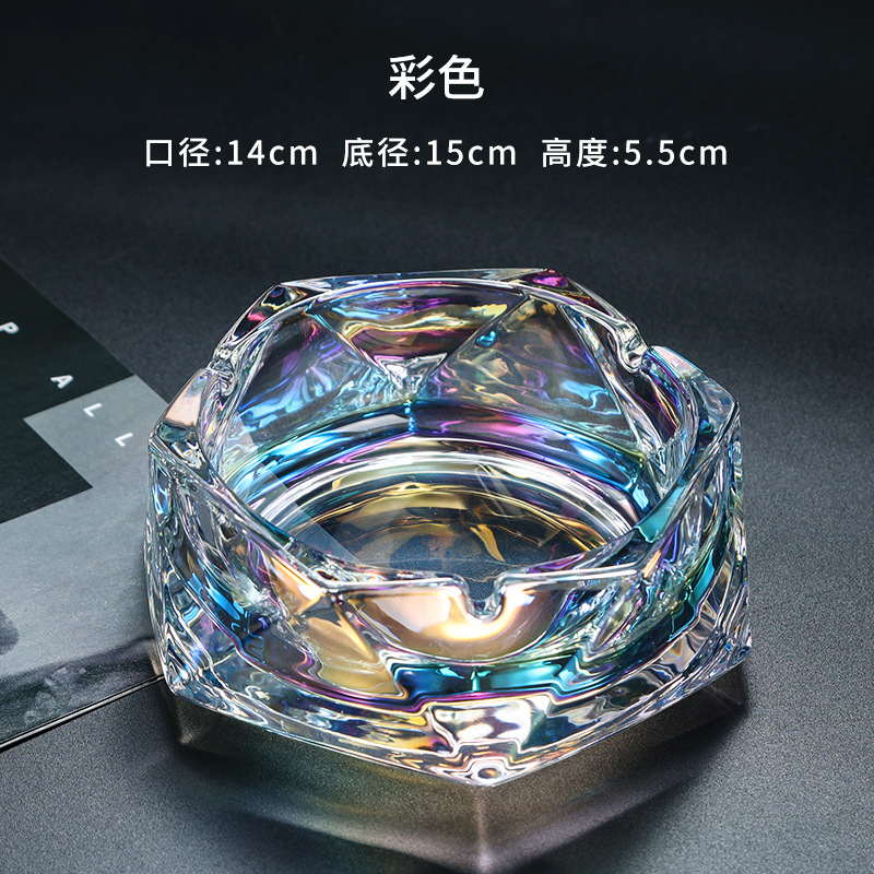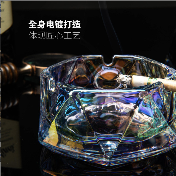 六角菱烟盅高品质烟灰缸电镀玻璃烟缸多颜色彩色烟缸可做logo
