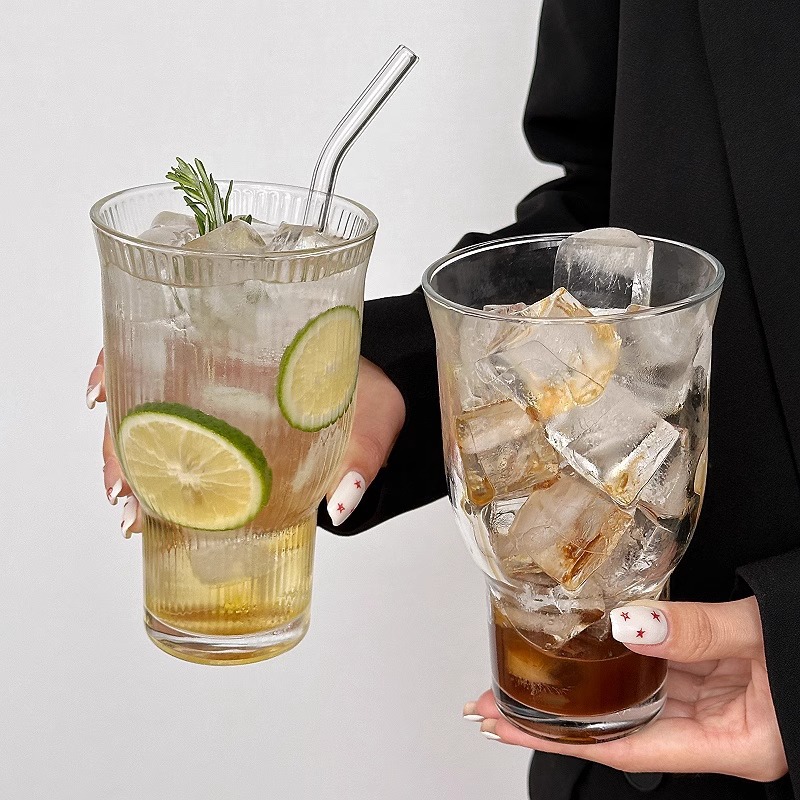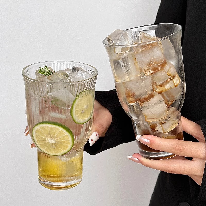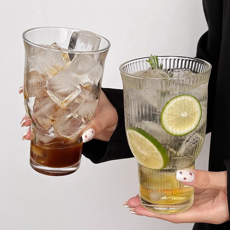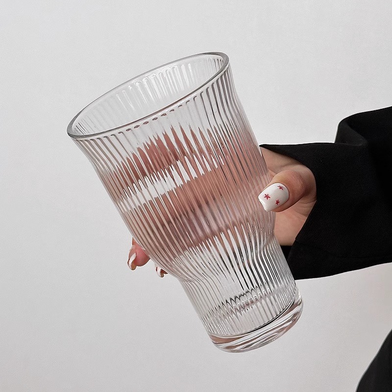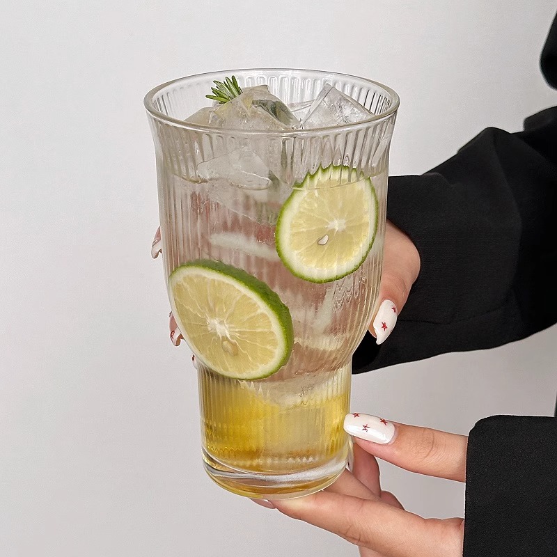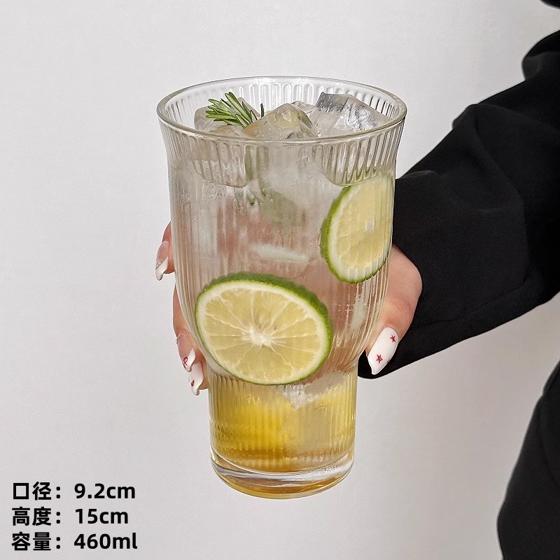 ins风竖纹果汁玻璃杯饮料咖啡饮品杯大容量卢森堡牛奶杯家用水杯