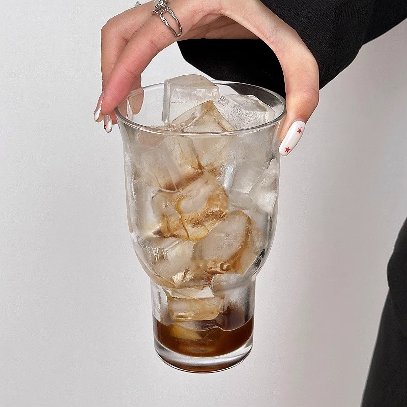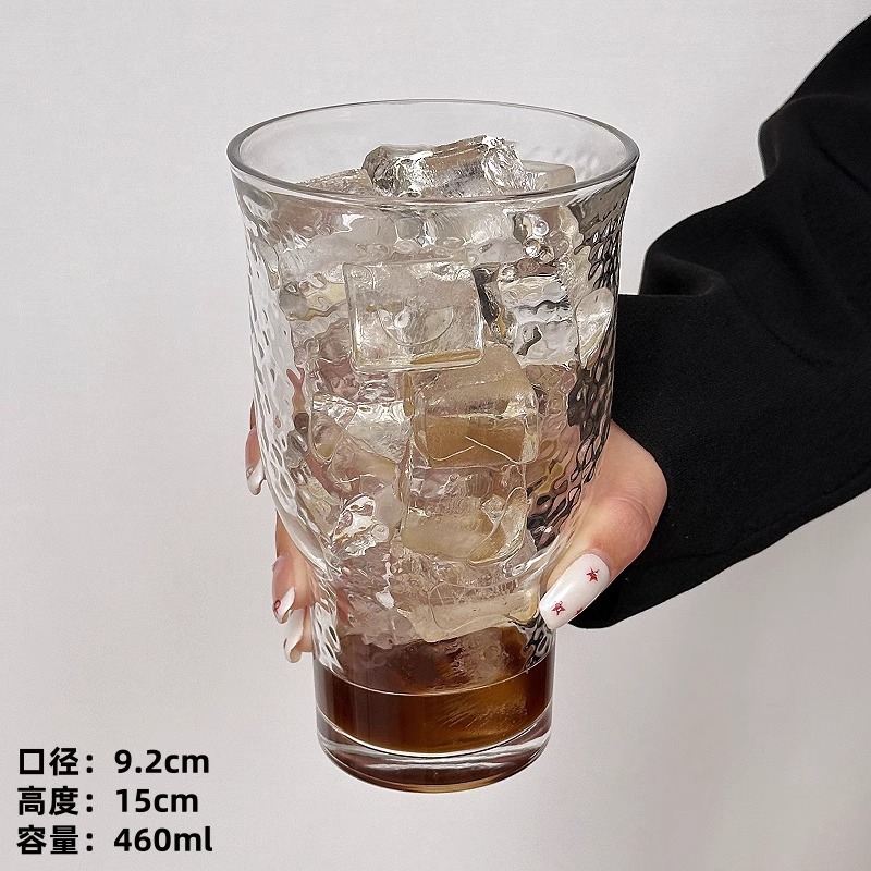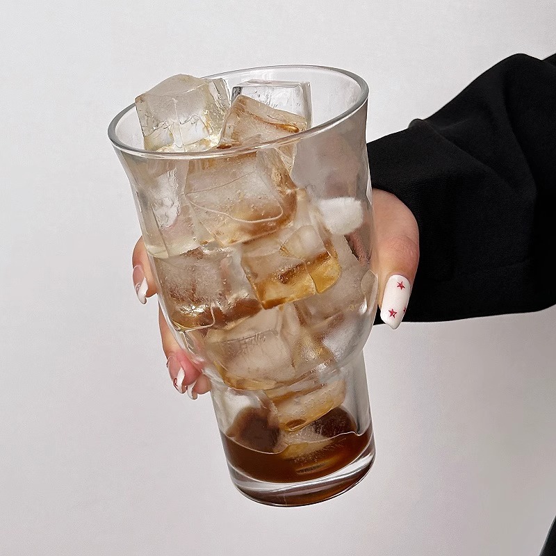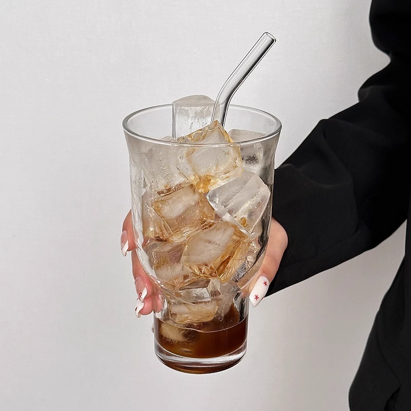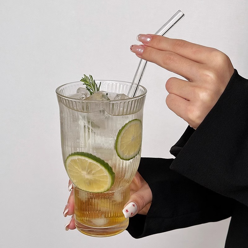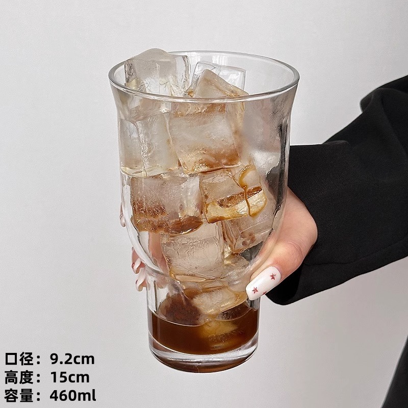 ins风竖纹果汁玻璃杯饮料咖啡饮品杯大容量卢森堡牛奶杯家用水杯