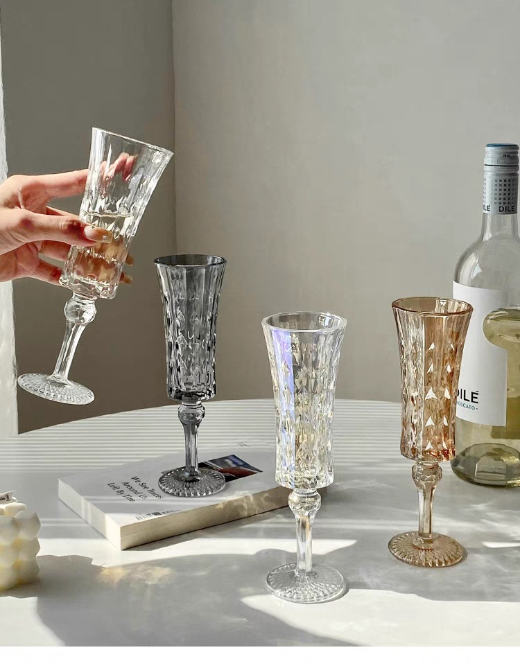 法式香槟杯小众设计高档红酒杯复古洋酒葡萄酒杯家用宫廷风高脚杯