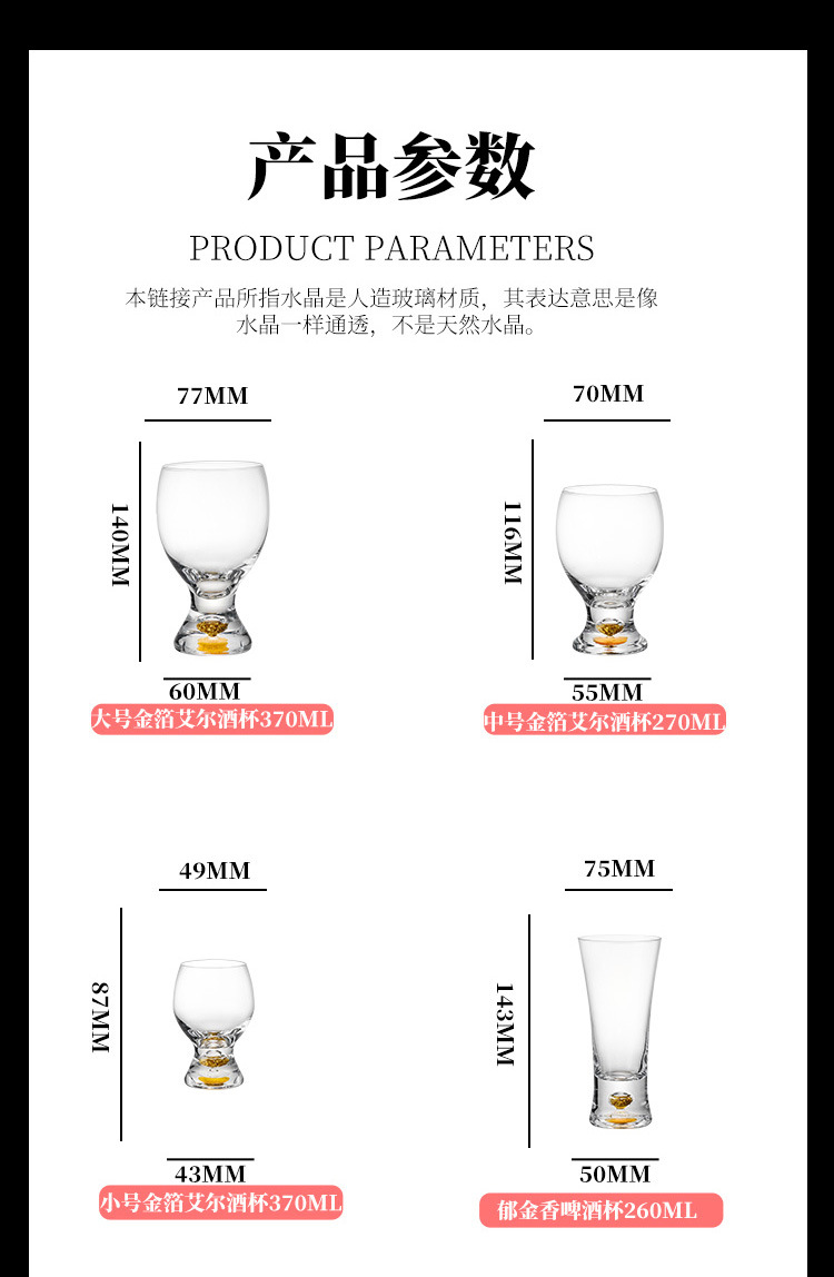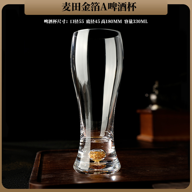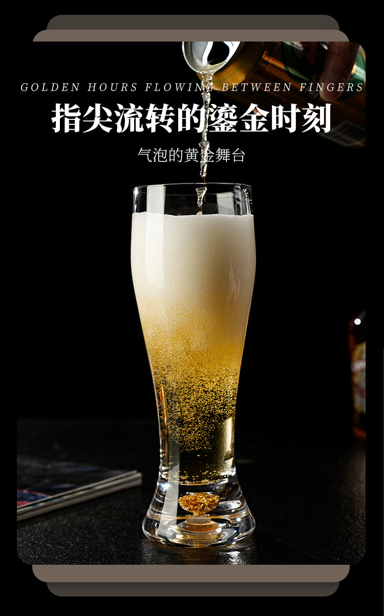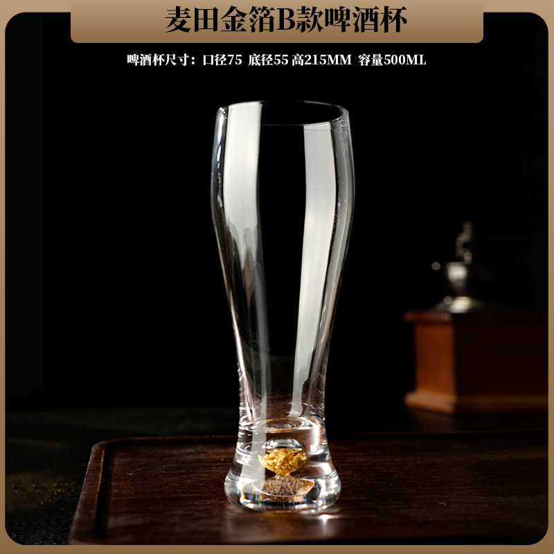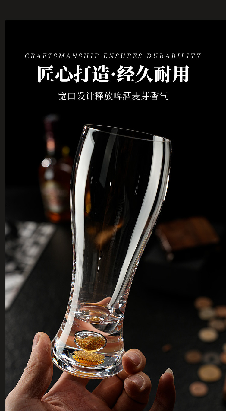 批发加厚玻璃金箔啤酒杯家用精酿小麦扎啤杯酒店ktv轻奢冷饮杯子