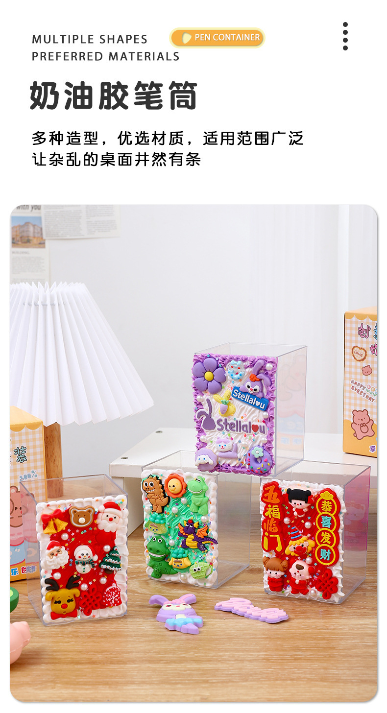 奶油胶笔筒学生diy手工自制笔盒大容量收纳文具盒奖品生日礼物