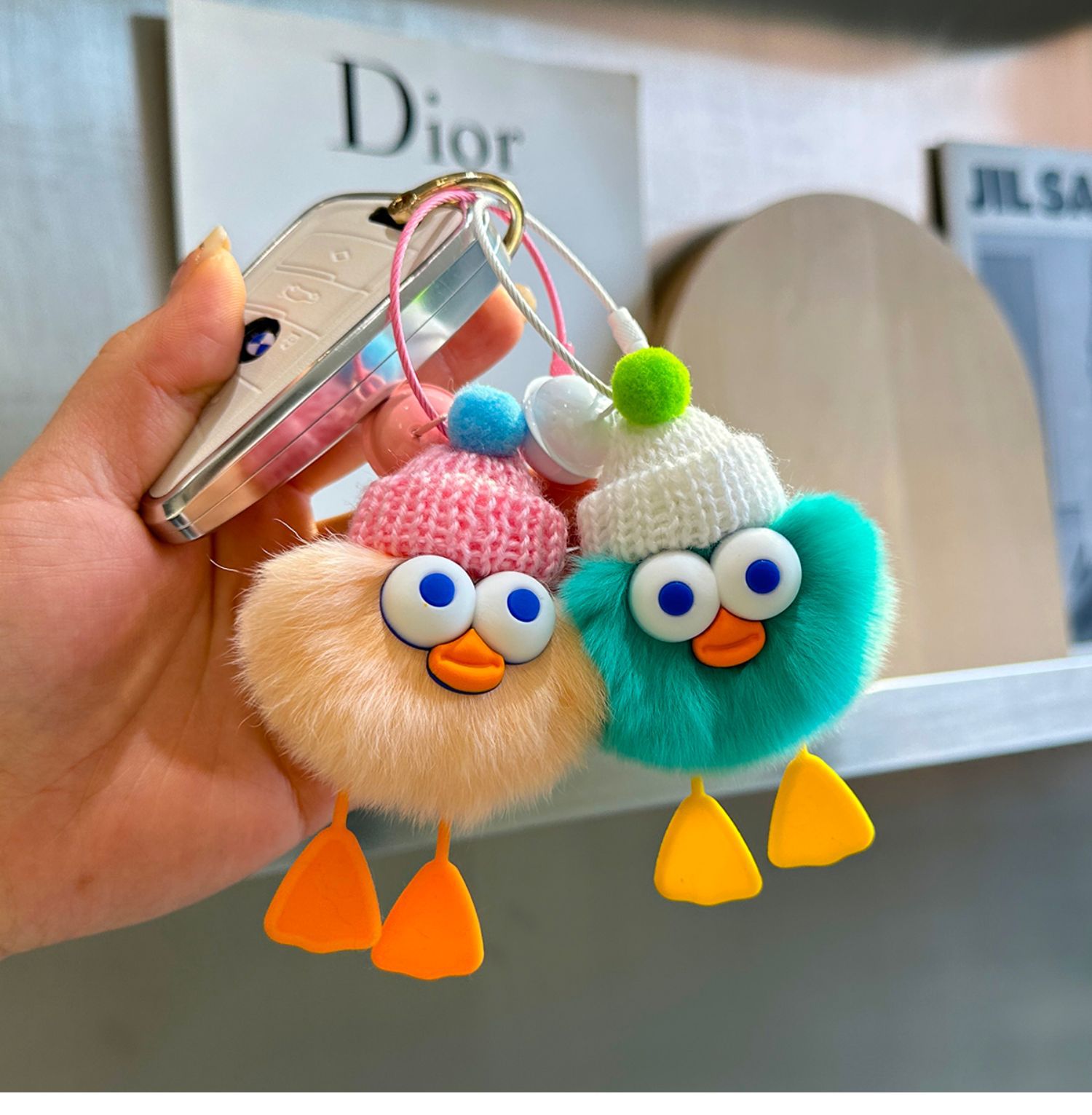 仿獭兔毛小鸭子汽车钥匙扣挂件毛绒公仔小煤球书包包挂饰原创设计