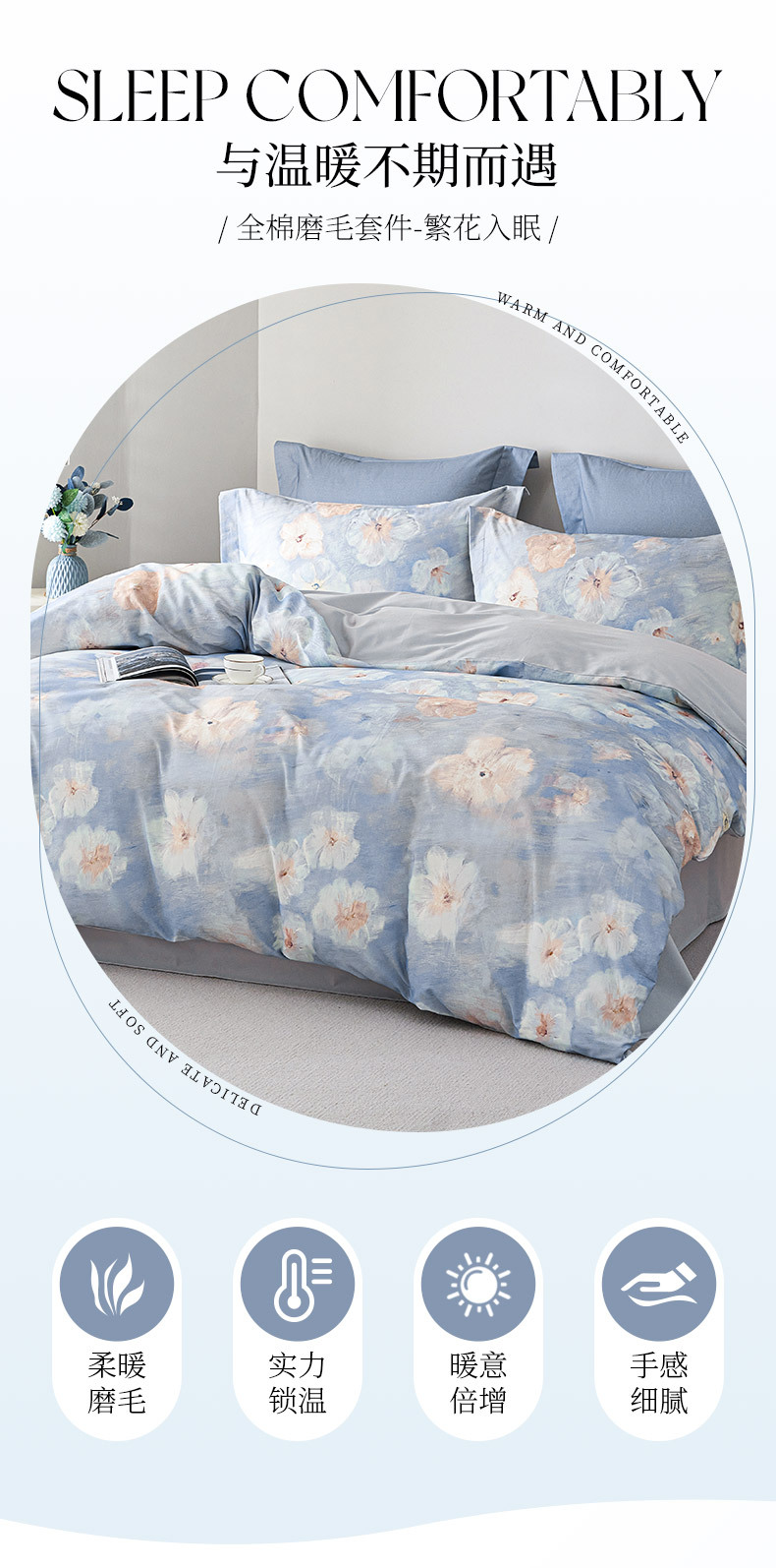 多喜爱美眠康纯棉印花磨毛四件套花卉全棉亲肤床单被套床上用品