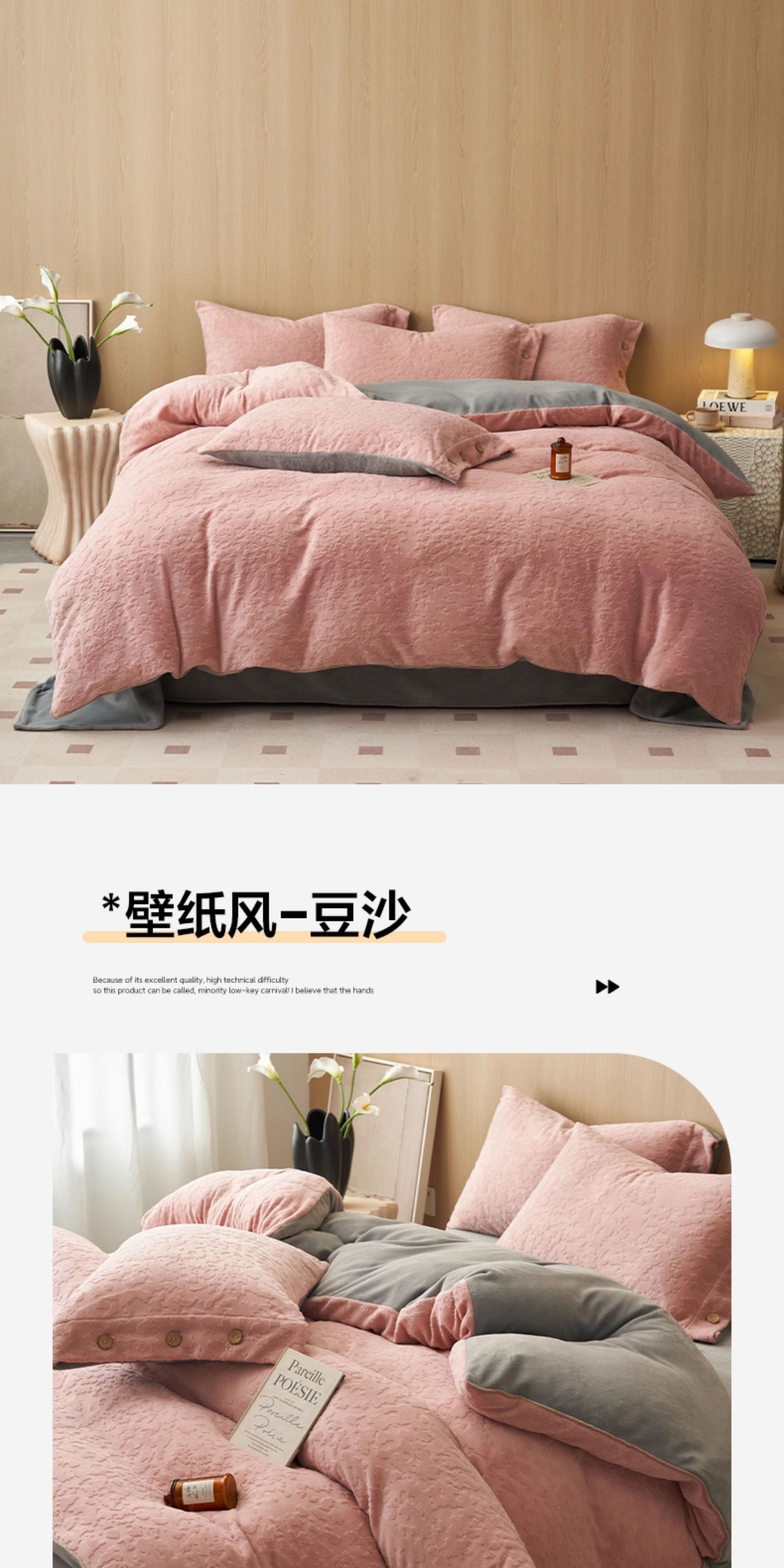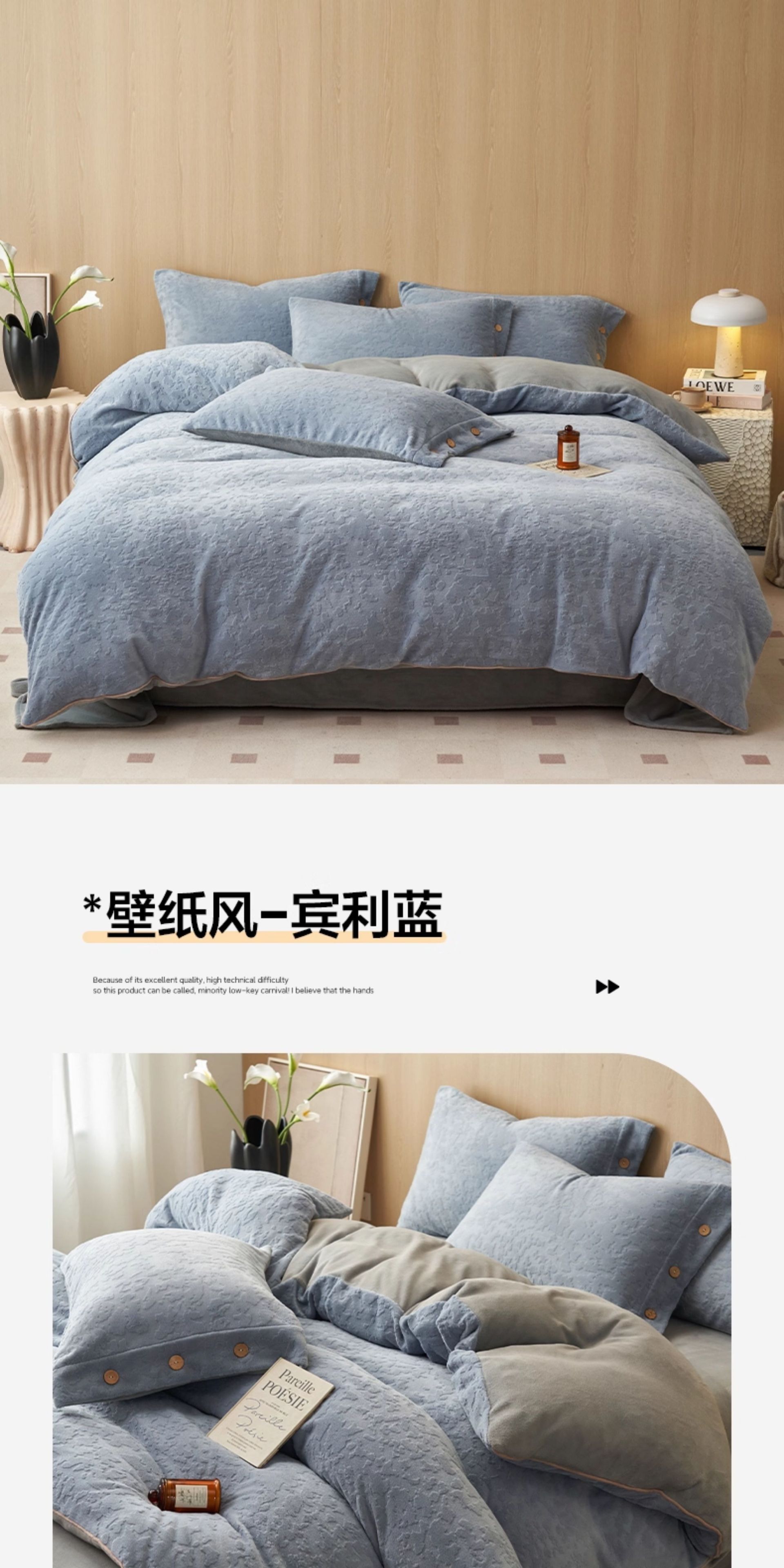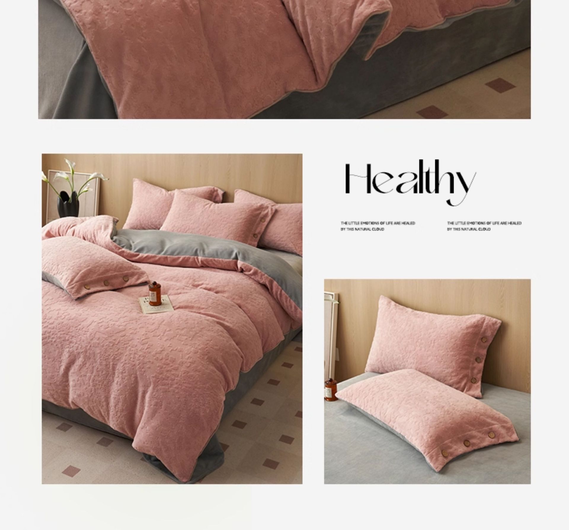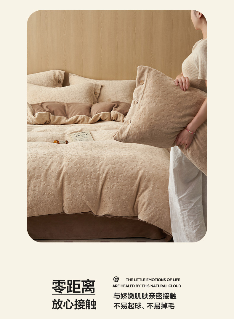 冬天A类雕花牛奶绒床上四件套加厚被罩宿舍床单人三件套床笠床品4