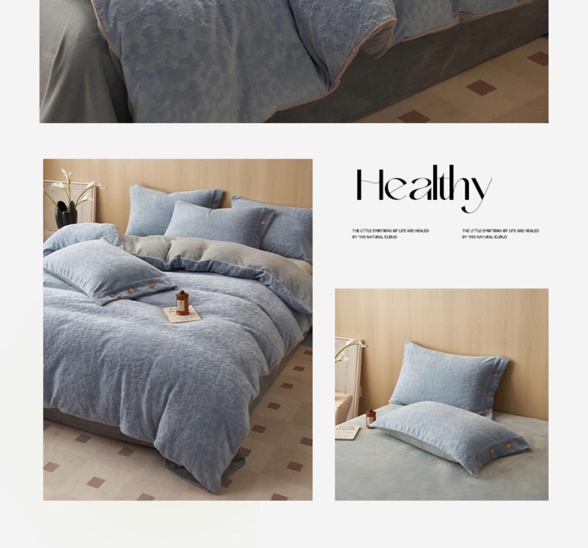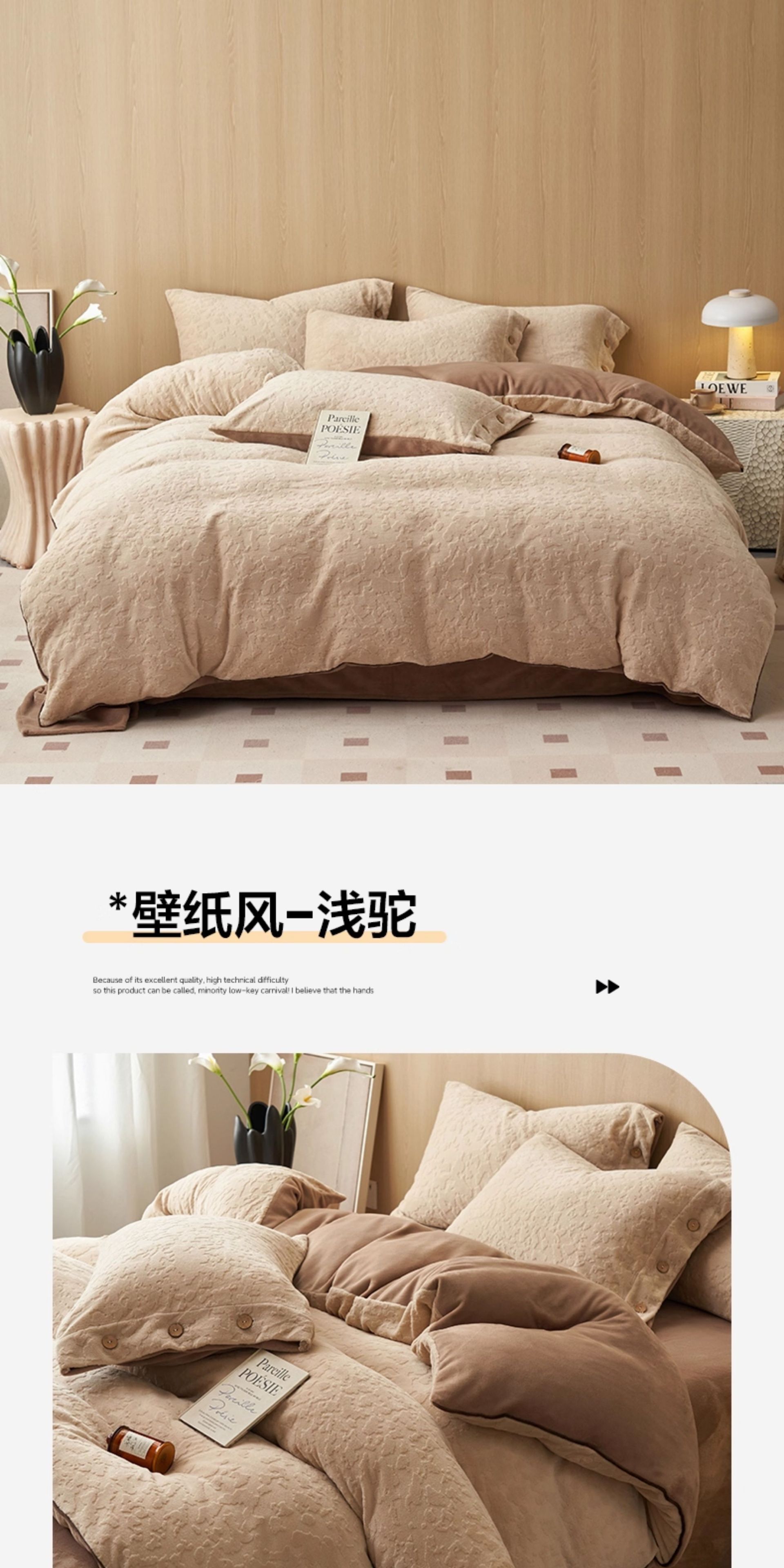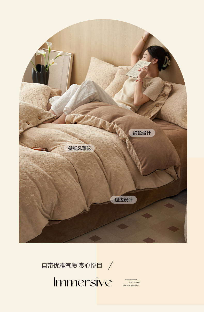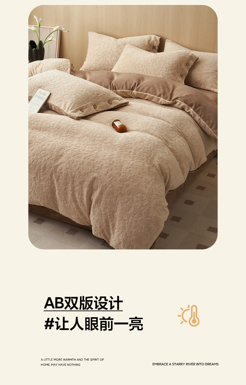 冬天A类雕花牛奶绒床上四件套加厚被罩宿舍床单人三件套床笠床品4