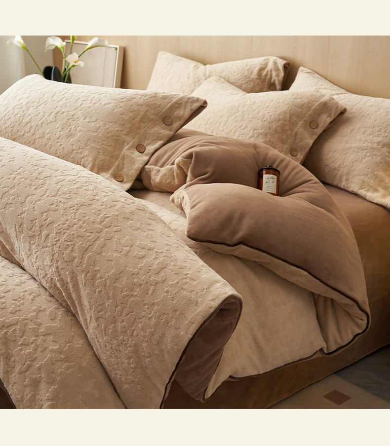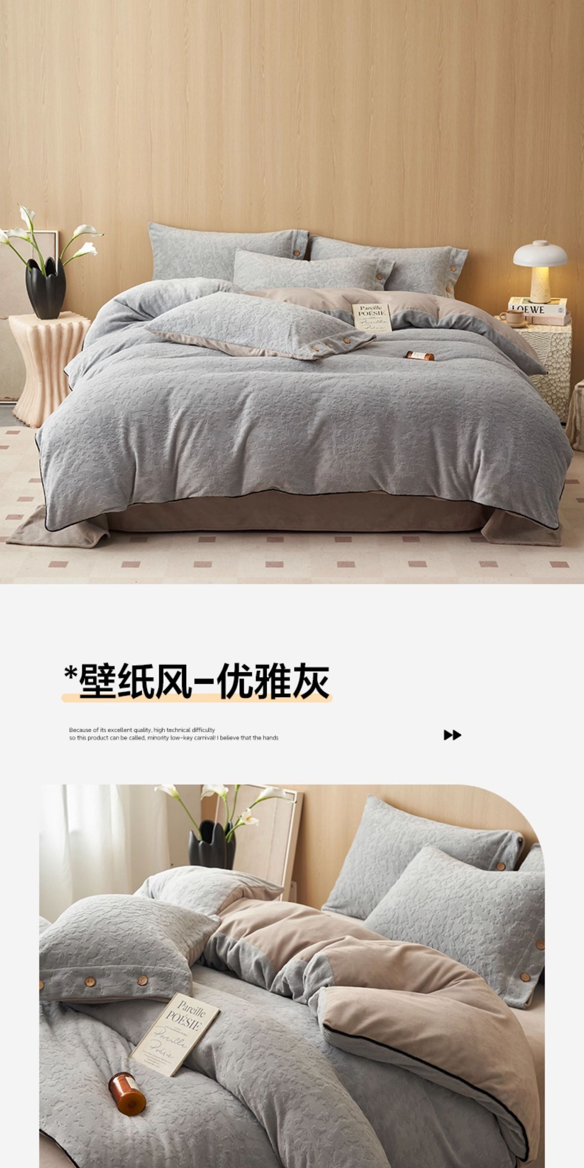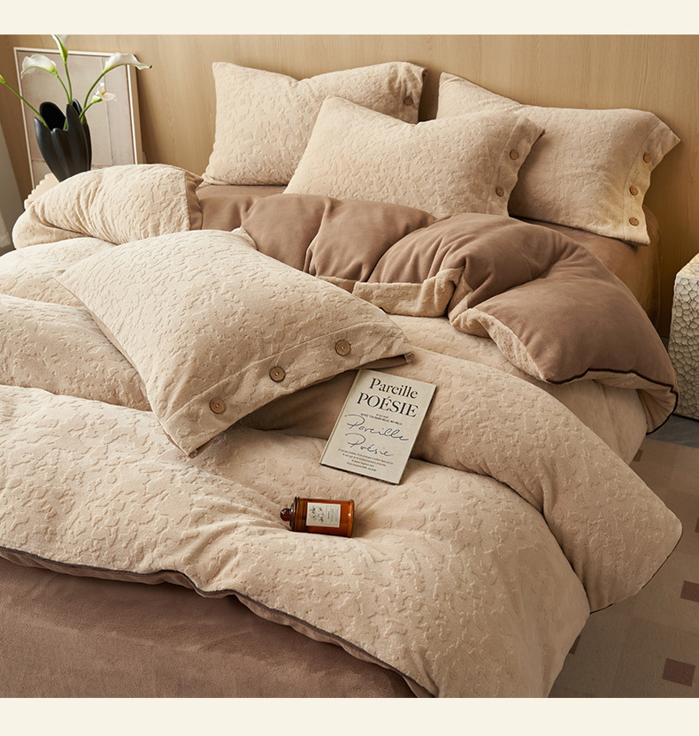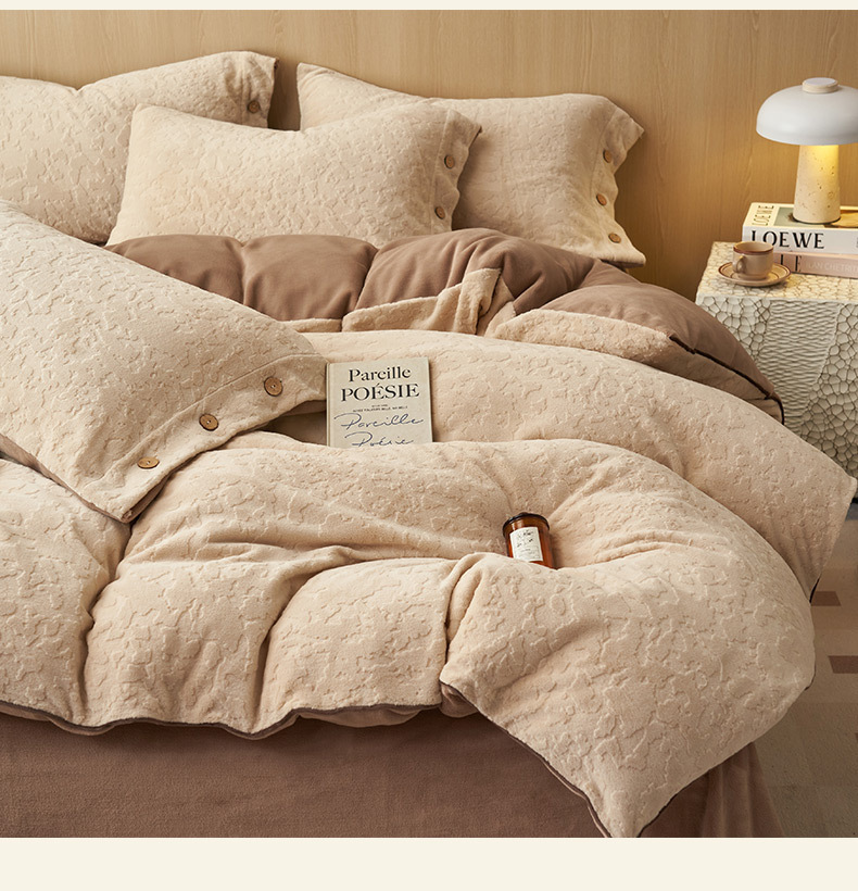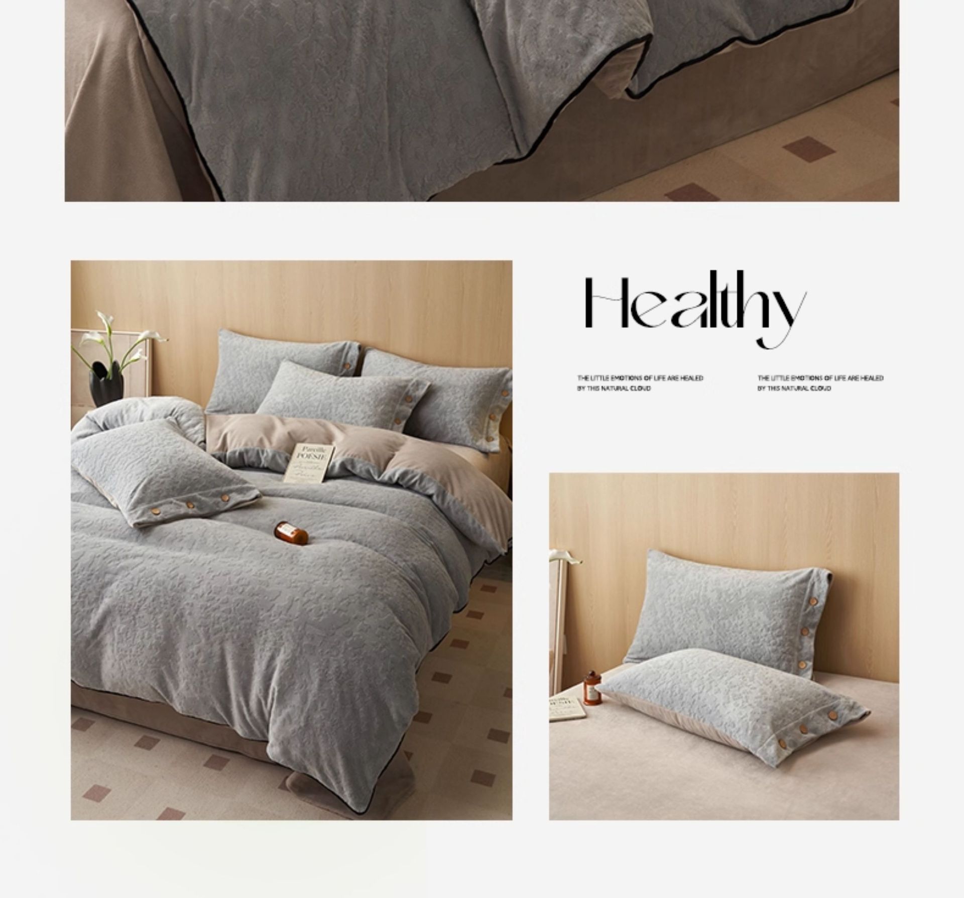冬天A类雕花牛奶绒床上四件套加厚被罩宿舍床单人三件套床笠床品4