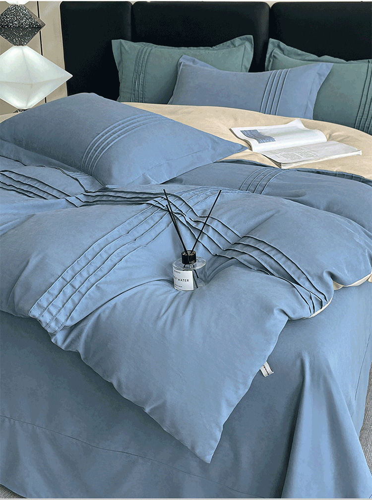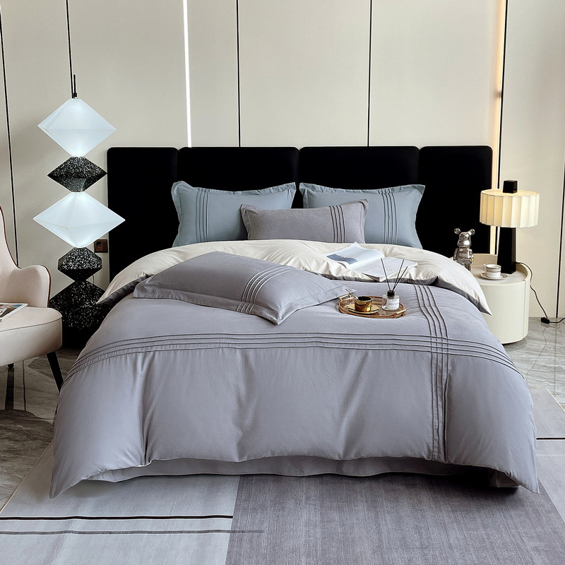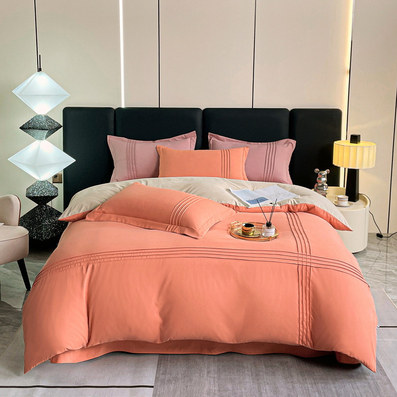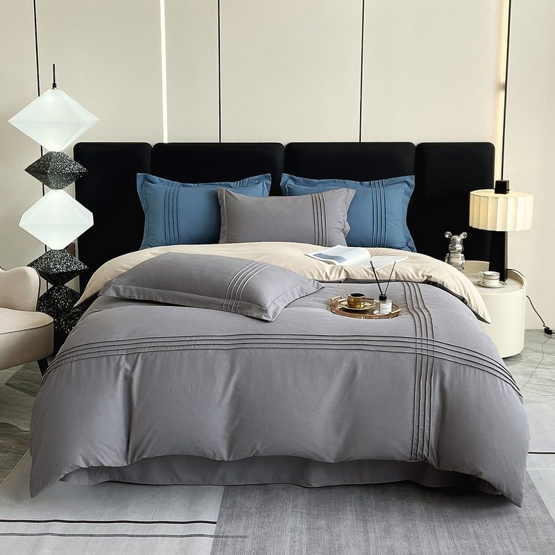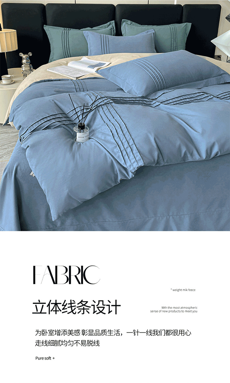 纯色立体线床上用品四件套被套床单套件四季可用批发纯棉四季款