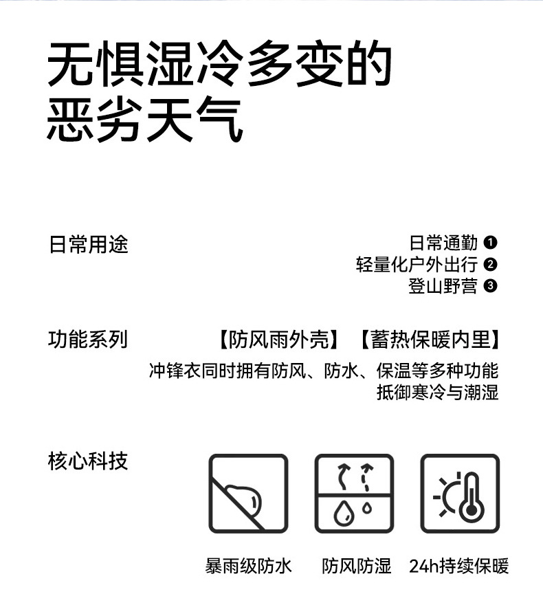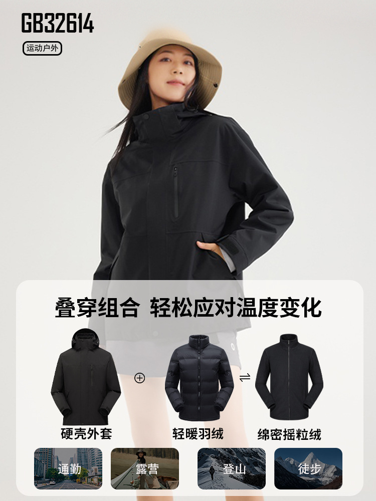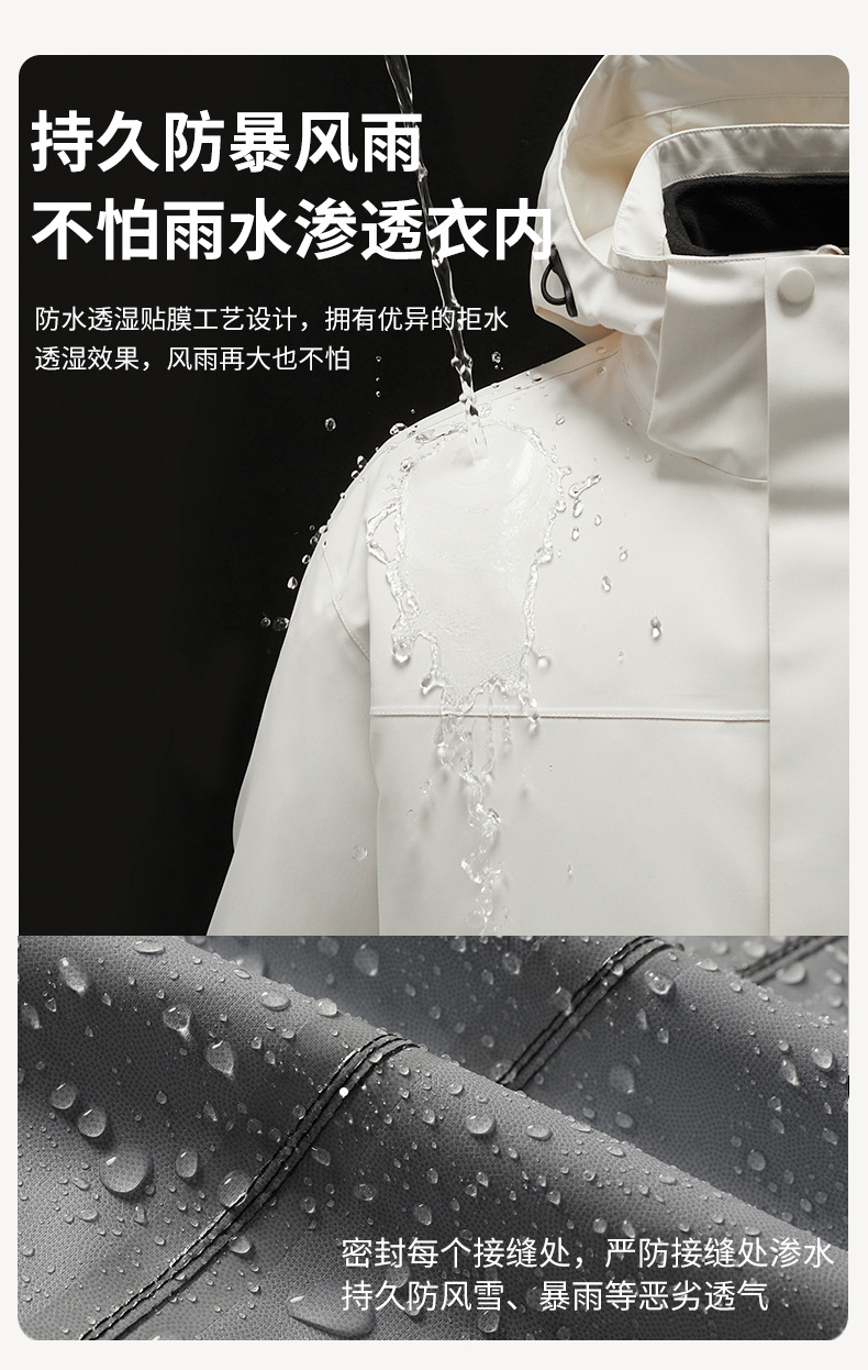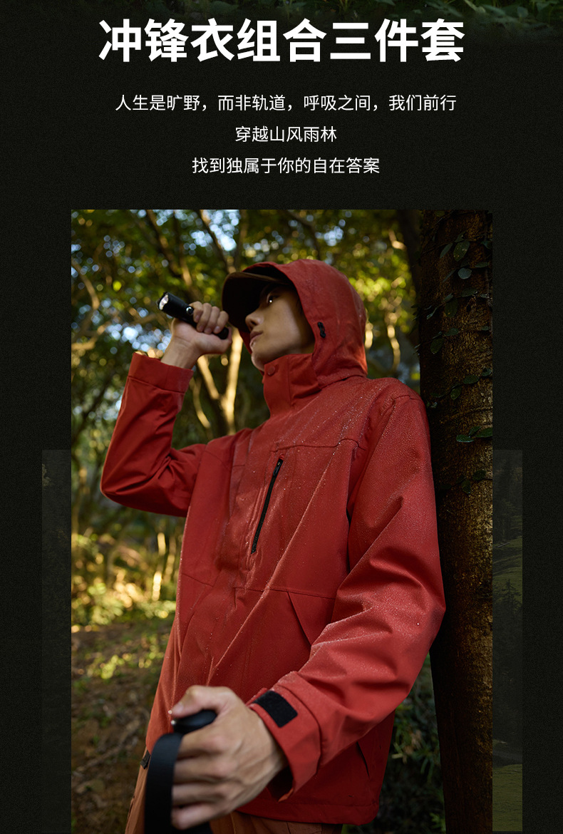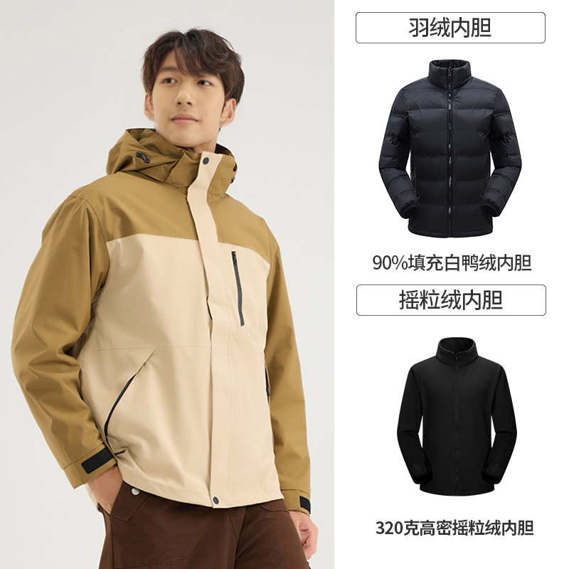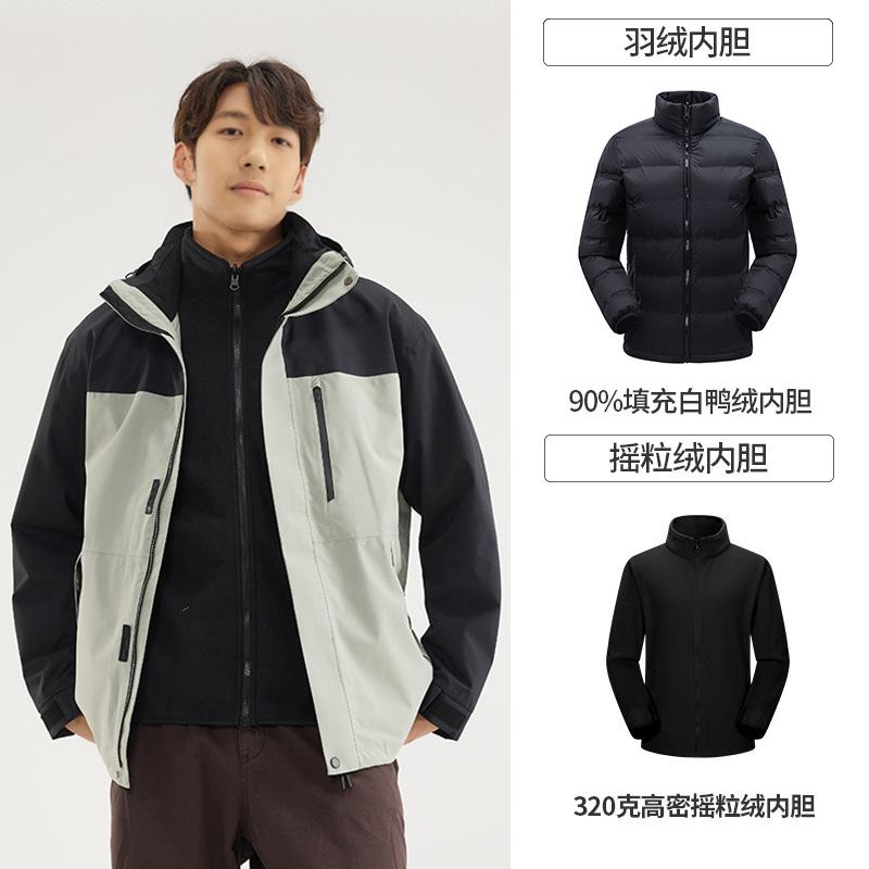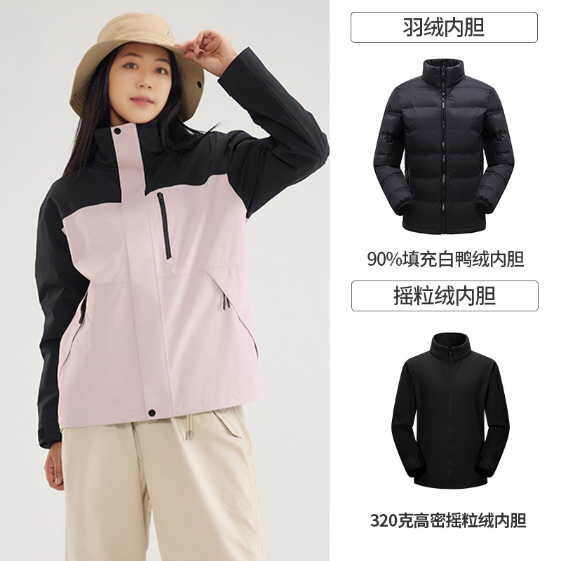 天猫禾冲锋衣男10000+防水女三合一抓绒羽绒组合三件套登山服