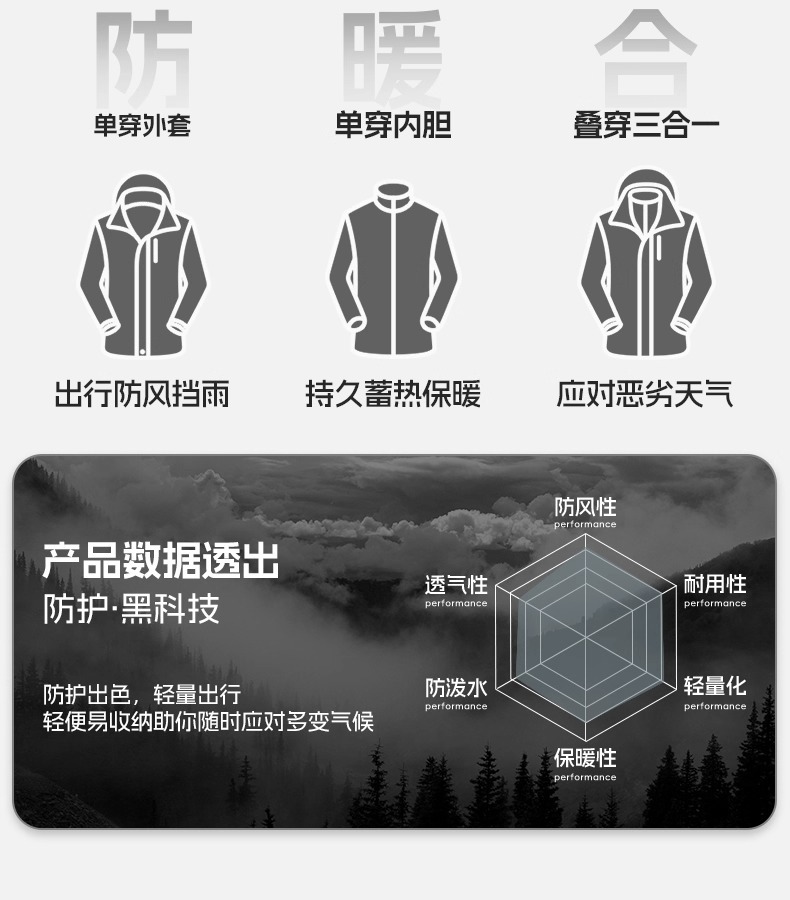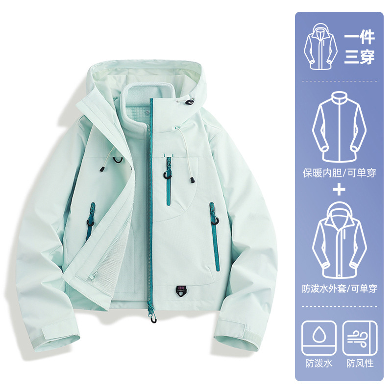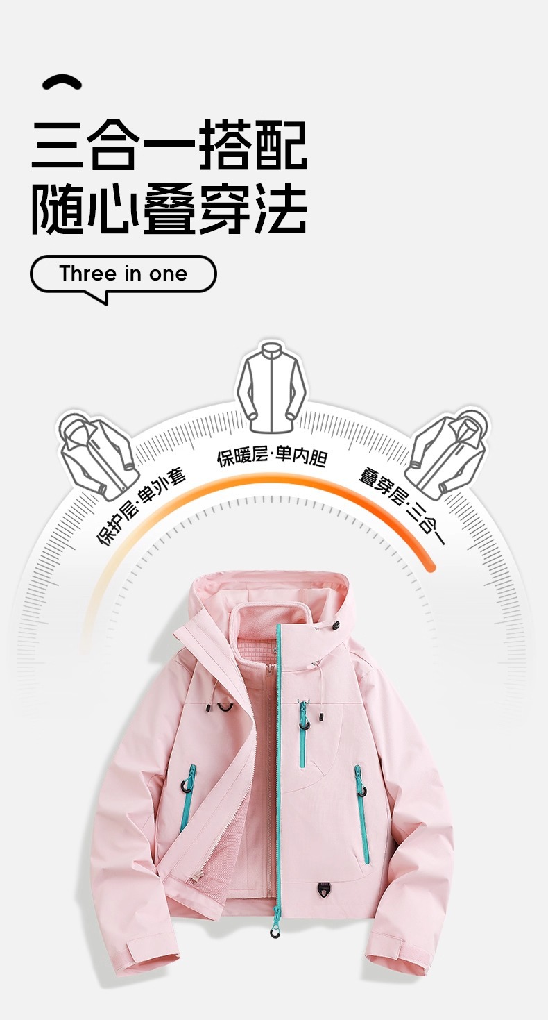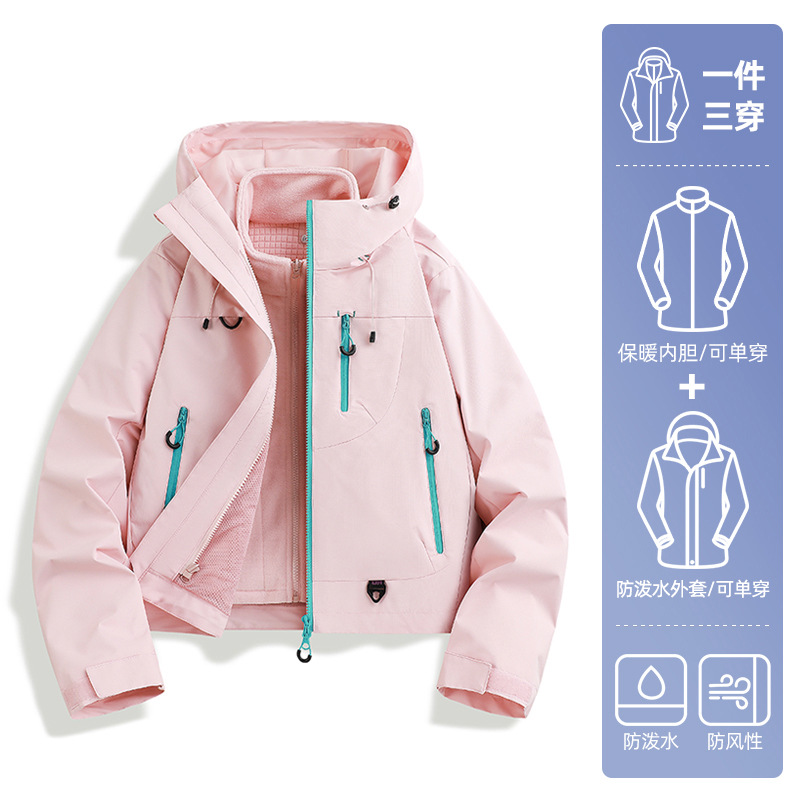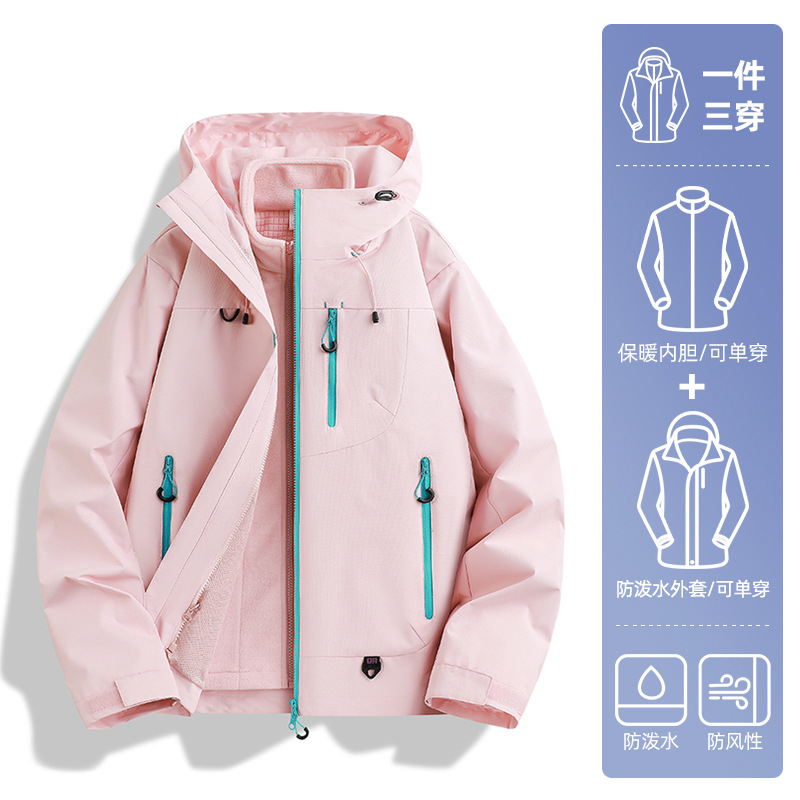 骆陀冲锋衣男女款山系新款春秋户外三合一防风防水登山服女士外套