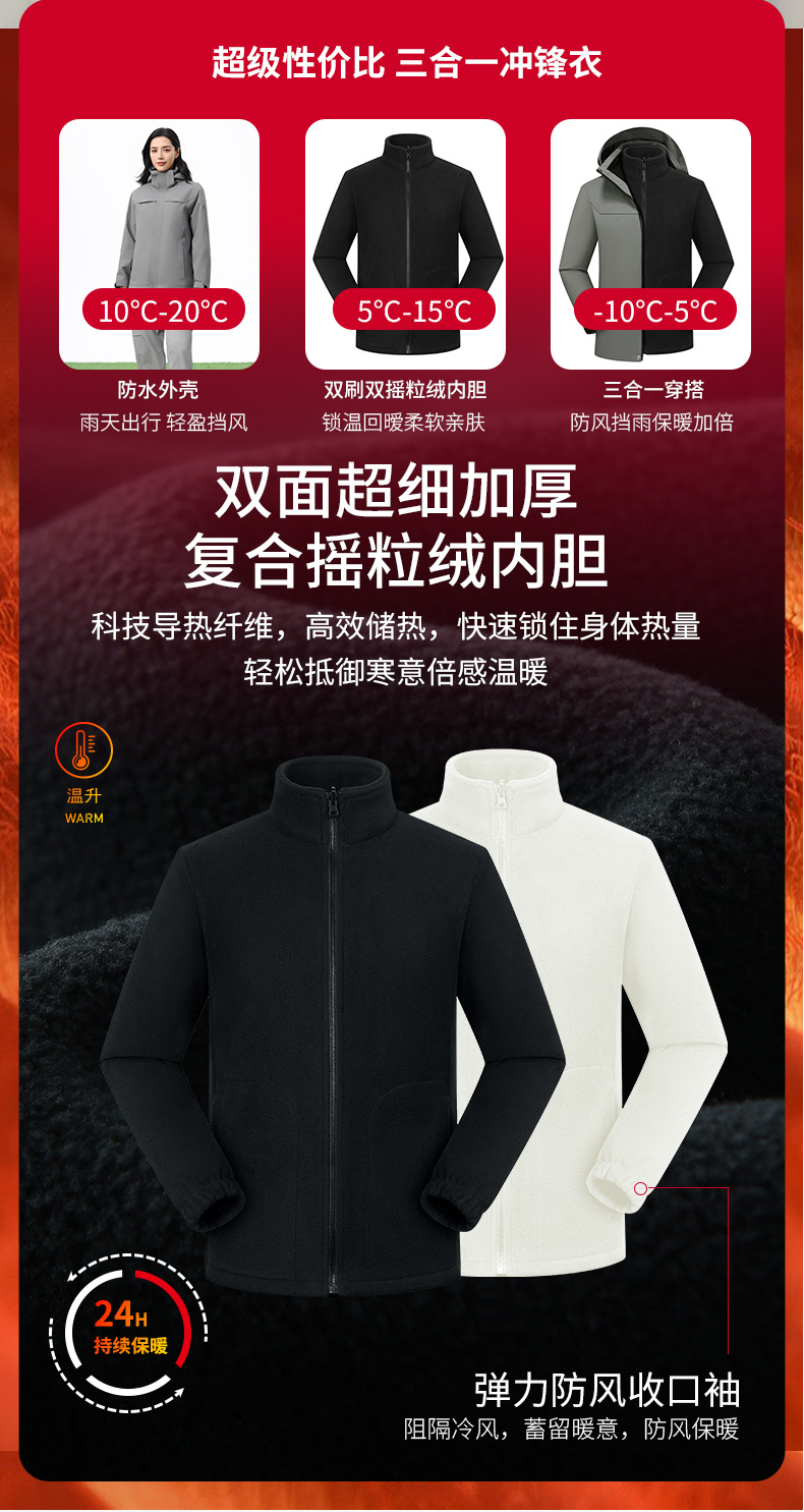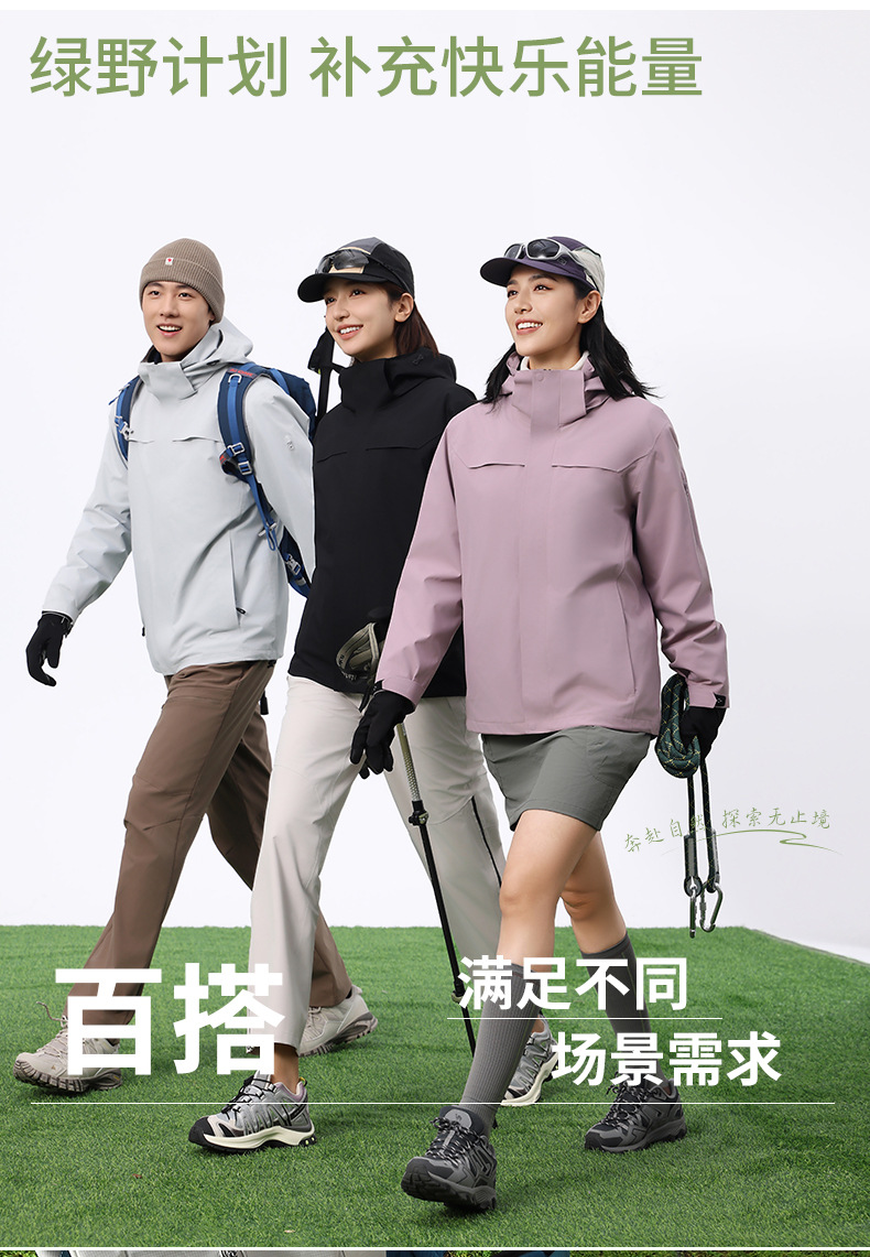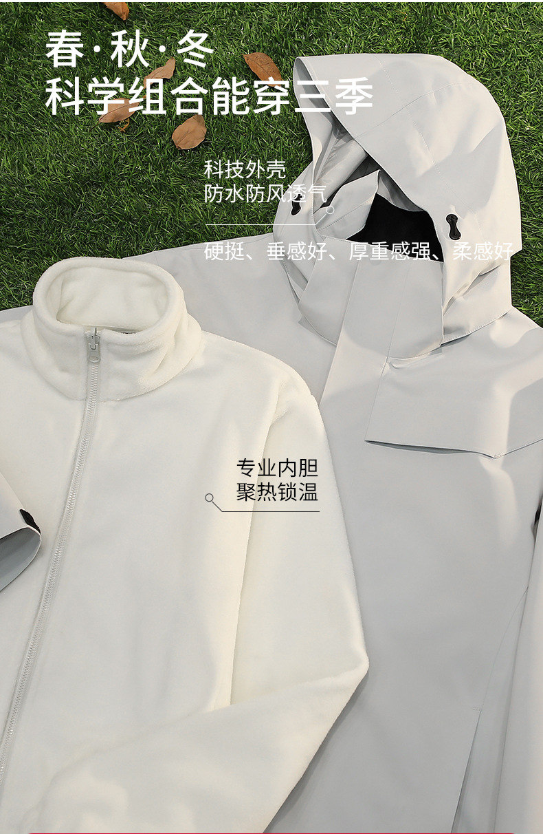 纯色冲锋衣男女同款三合一秋冬户外保暖登山钓鱼工作服公司印logo