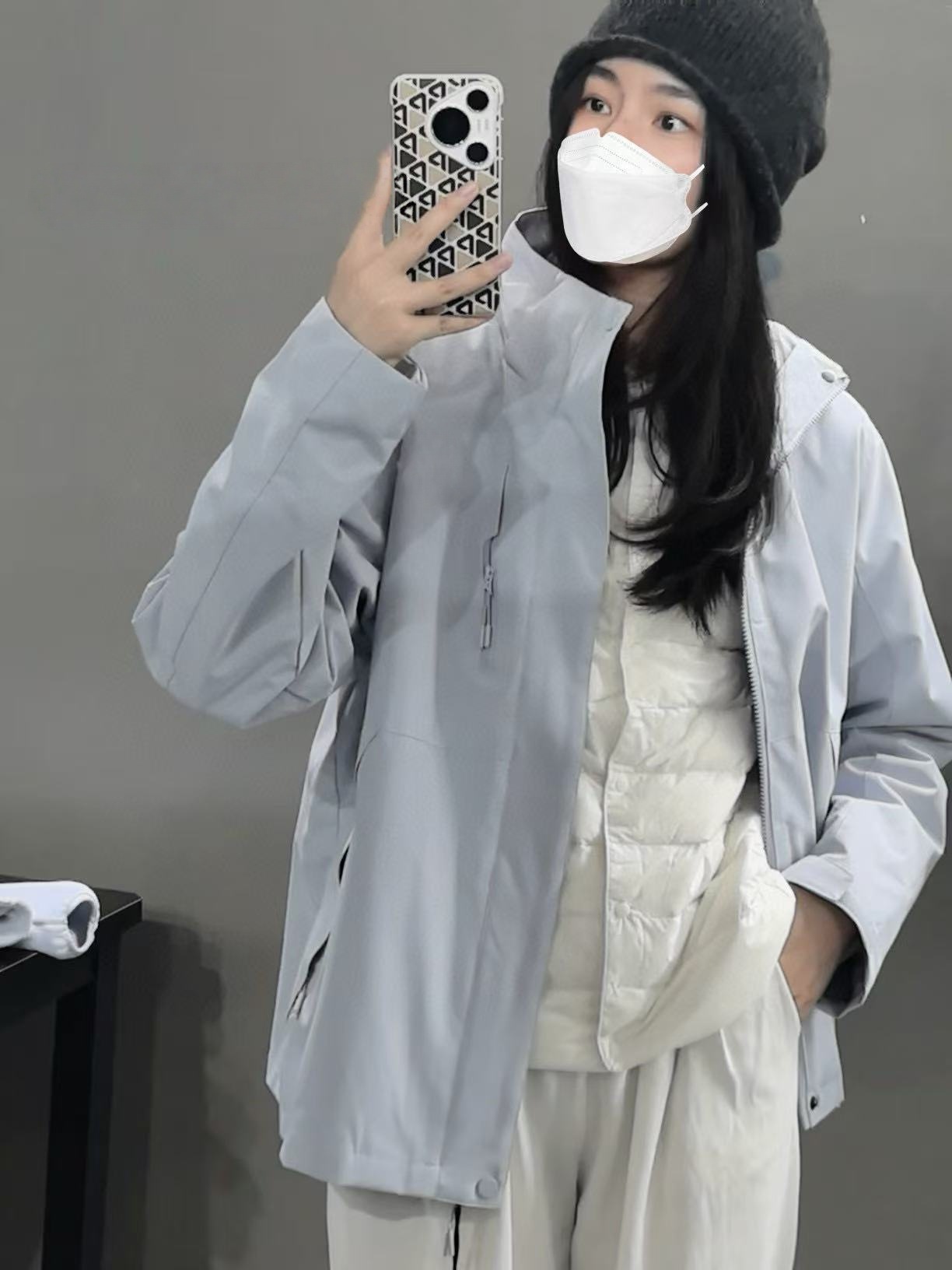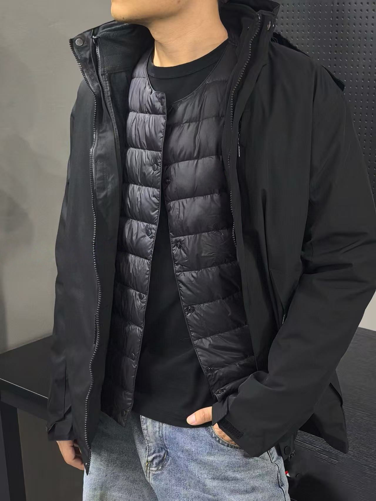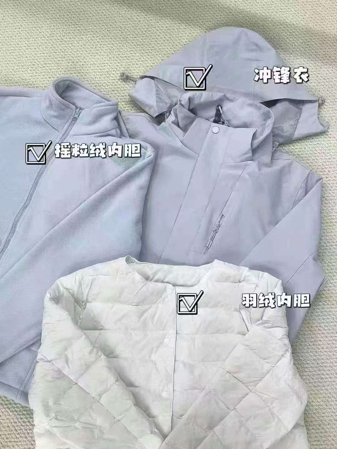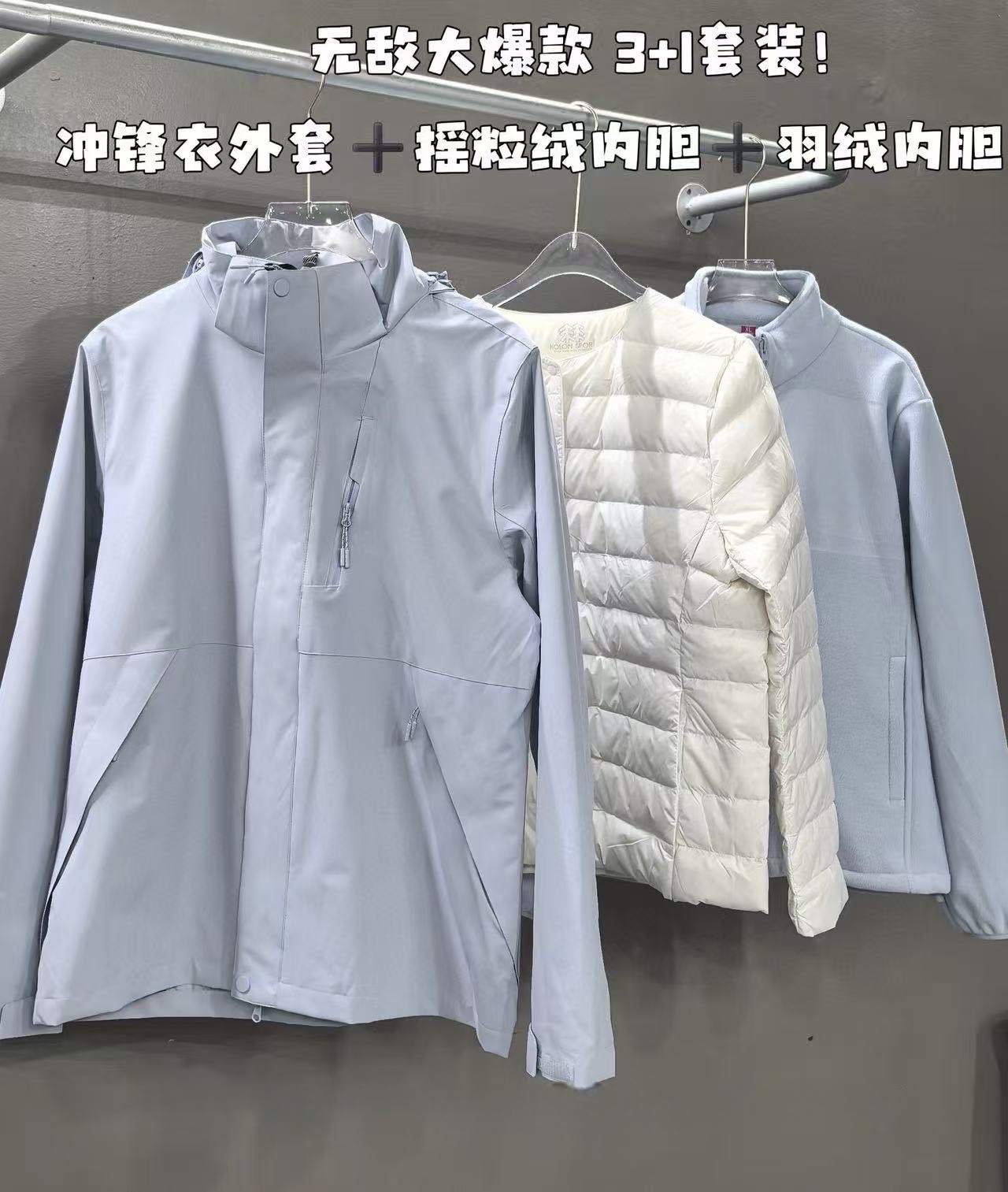 K隆2025情侣男女户外石墨烯摇粒绒羽绒白鸭绒冲锋衣四合一三件套