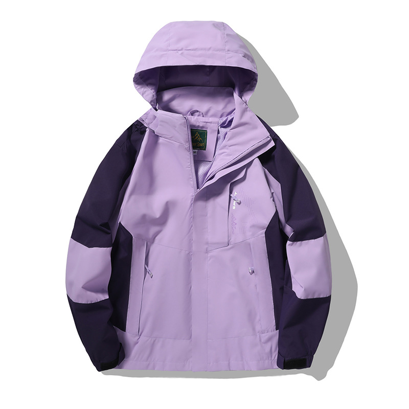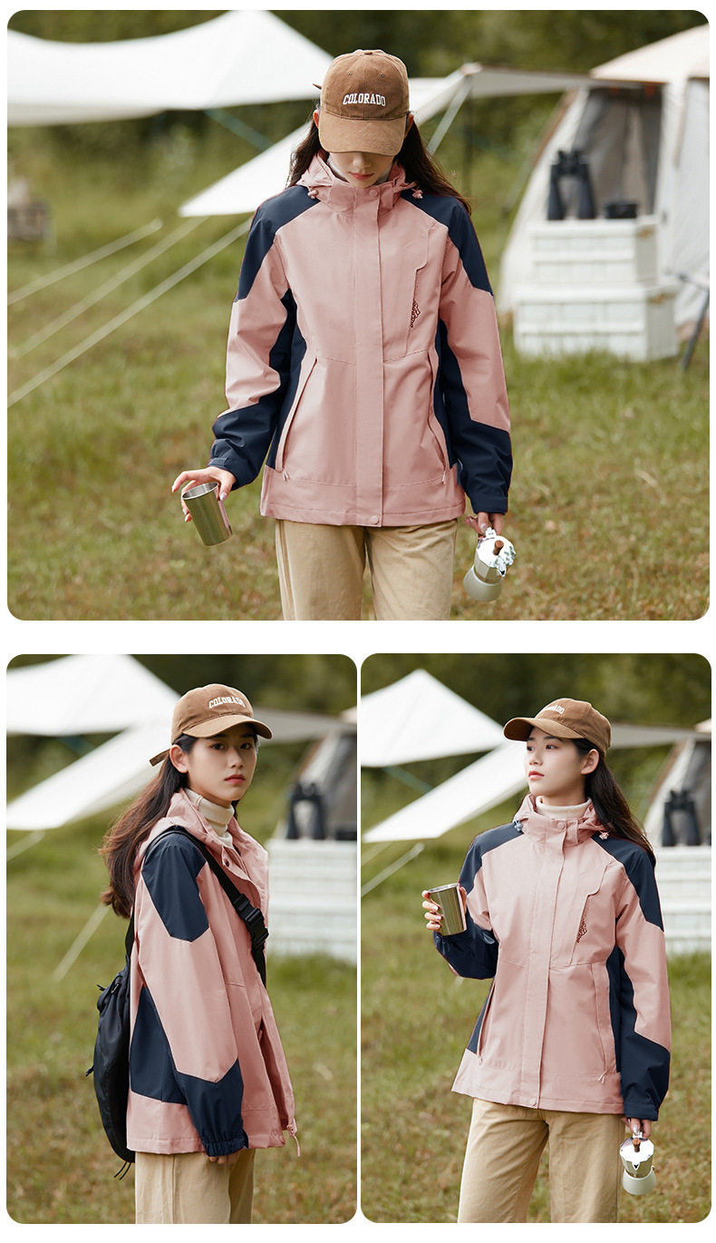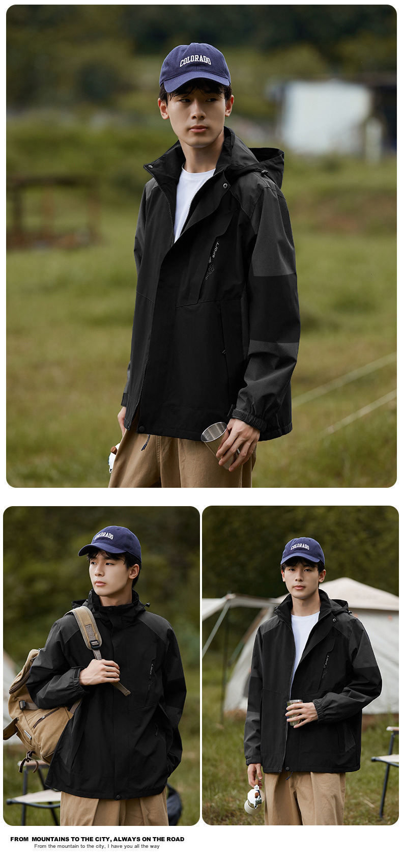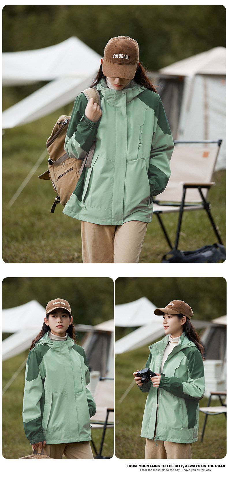 情侣款拼接三合一冲锋衣外套春秋季防风防水连帽男女夹克外套风衣