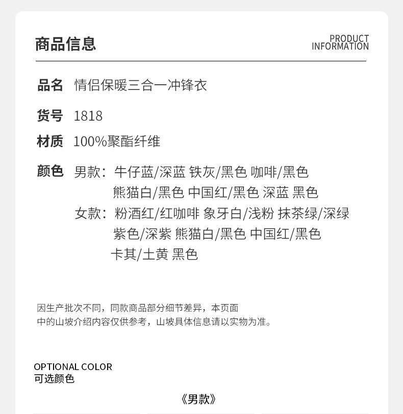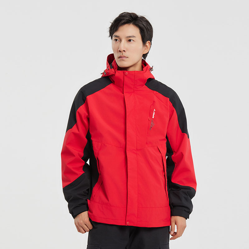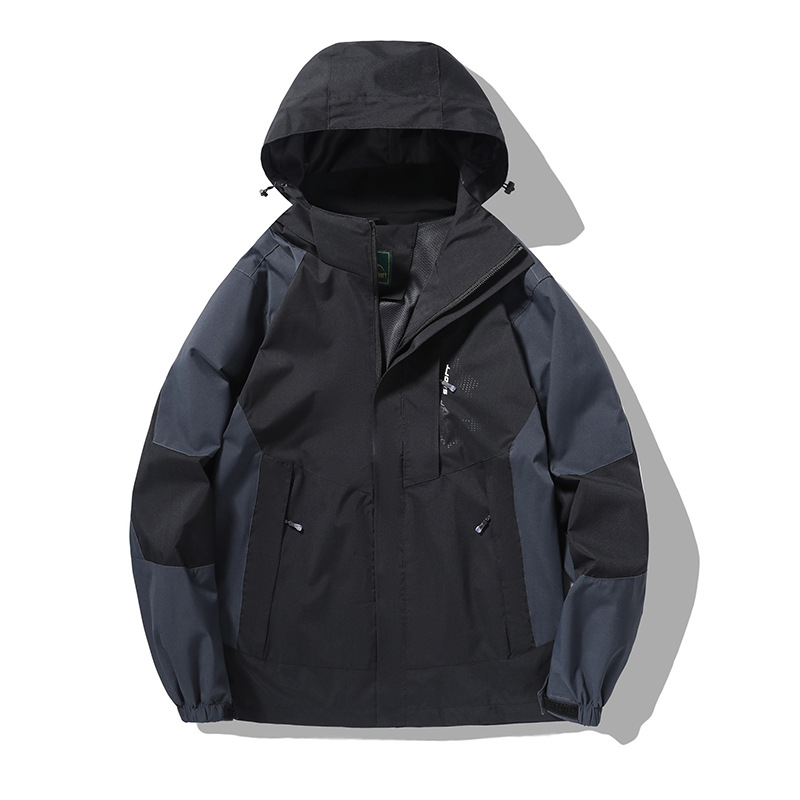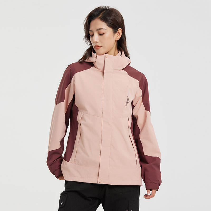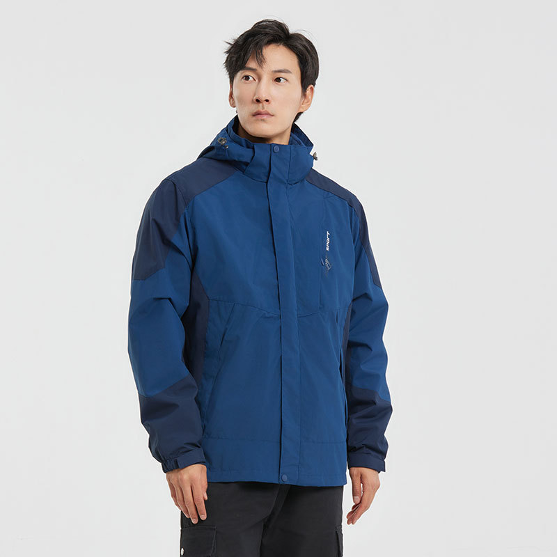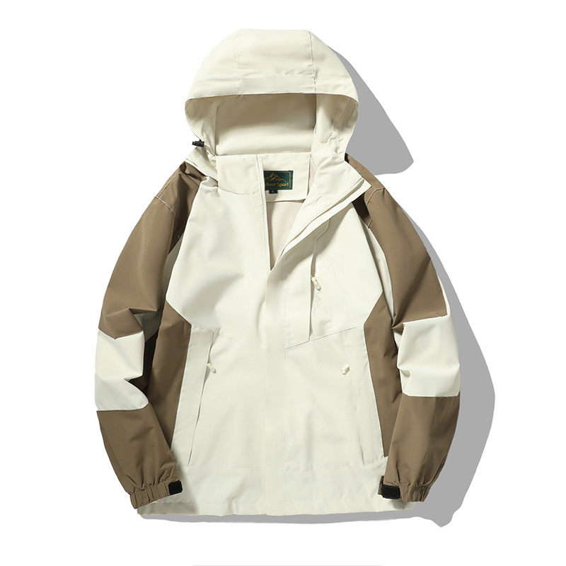 情侣款拼接三合一冲锋衣外套春秋季防风防水连帽男女夹克外套风衣