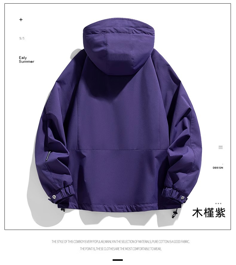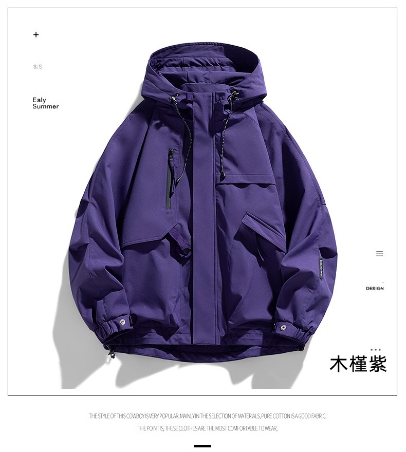 NASA2025新款紫色加绒加厚冲锋衣男秋冬季潮牌宽松登山服夹克外套