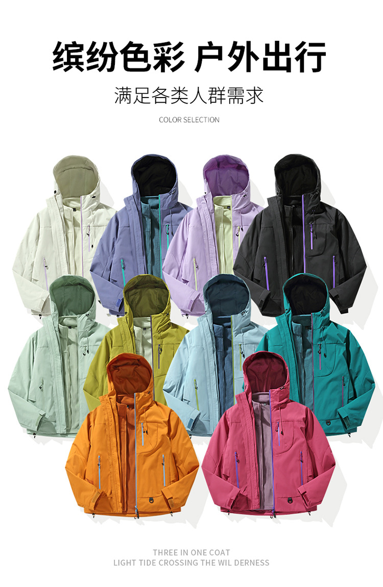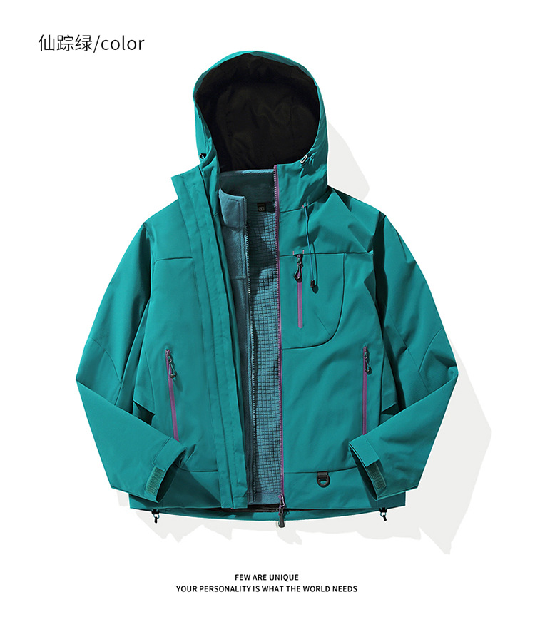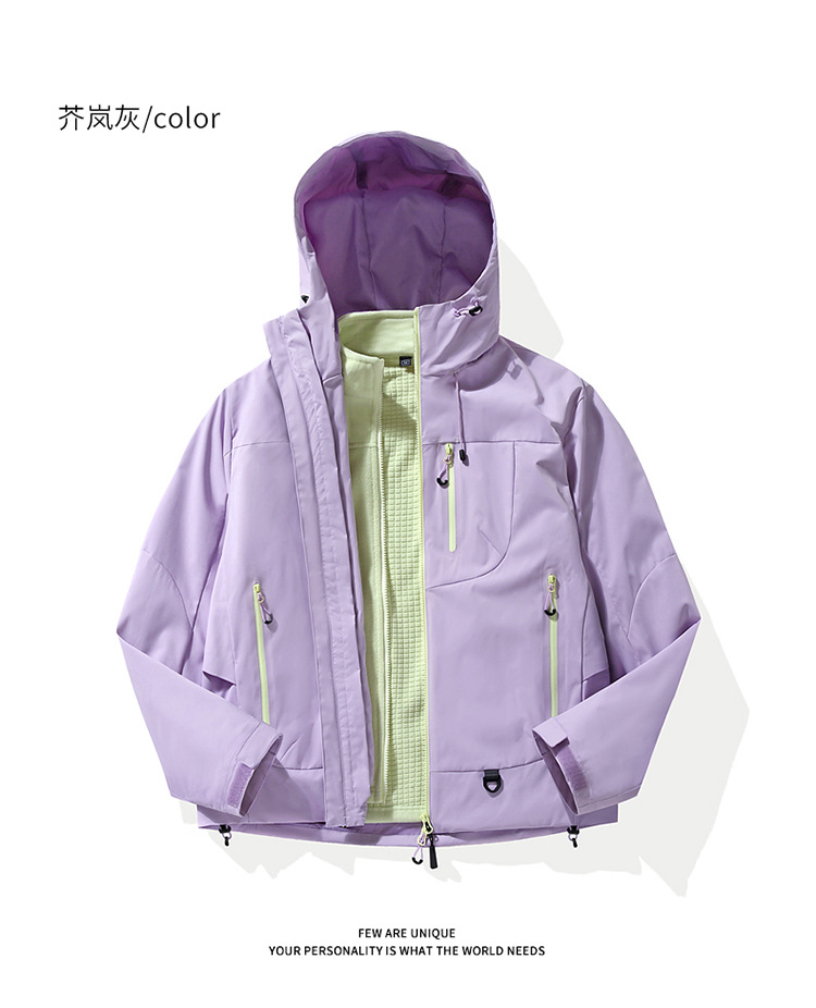 空山雨硬壳冲锋衣女情侣防风防水机能户外三合一连帽登山服男25