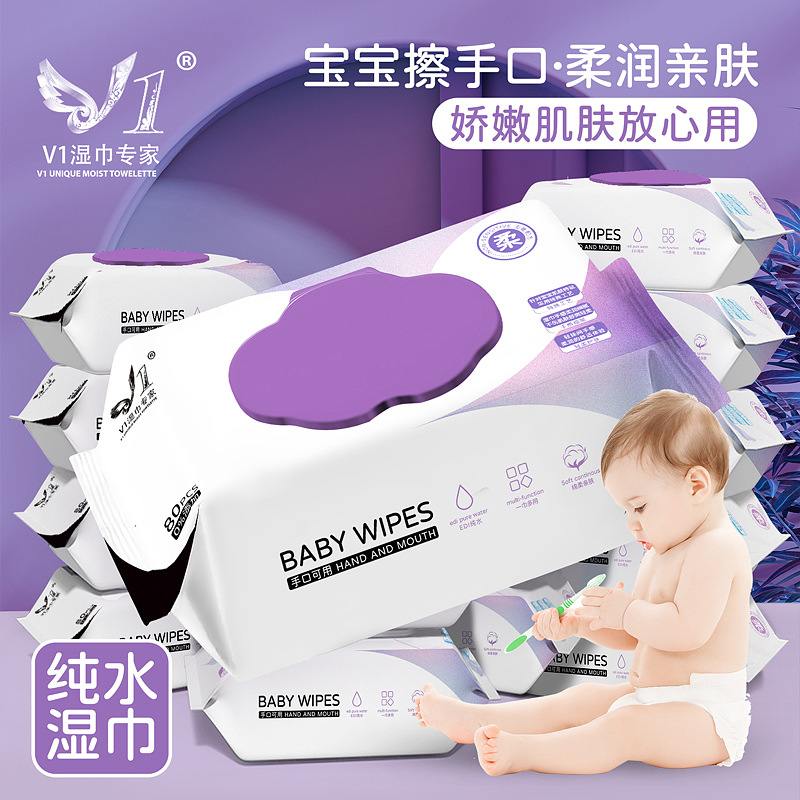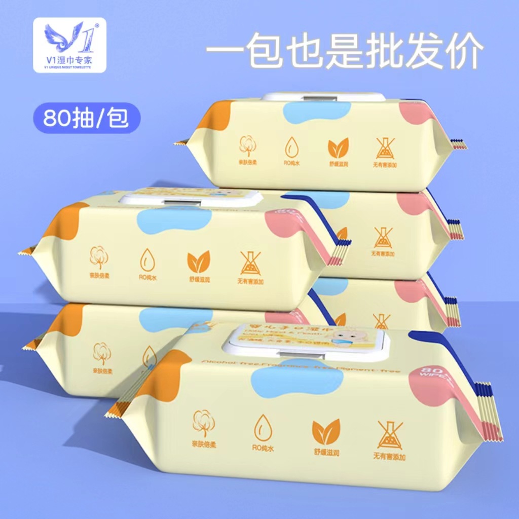 婴儿湿巾大包80抽清洁手口屁屁加厚一次性婴幼湿纸巾家庭实惠装