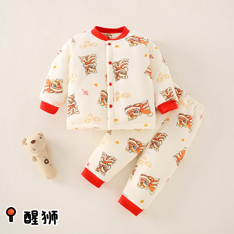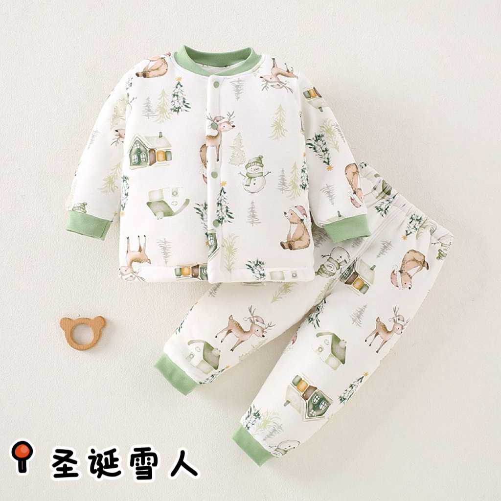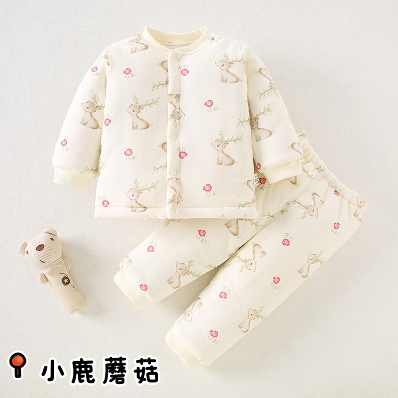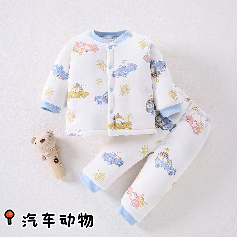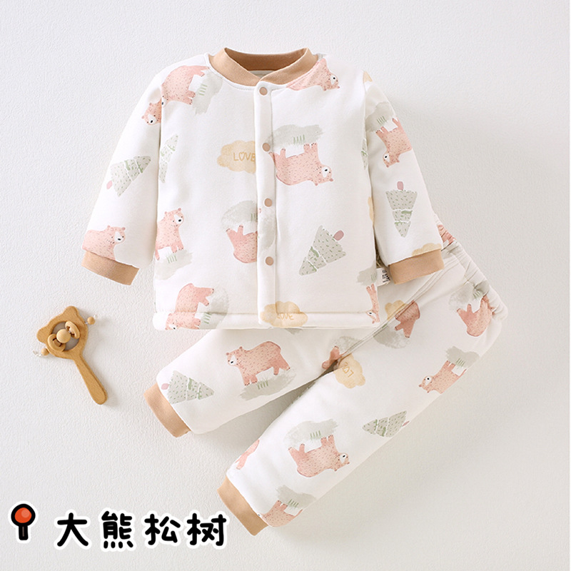 婴儿分体衣服加厚夹棉三层保暖秋冬纯棉新生儿宝宝棉衣棉服童套装