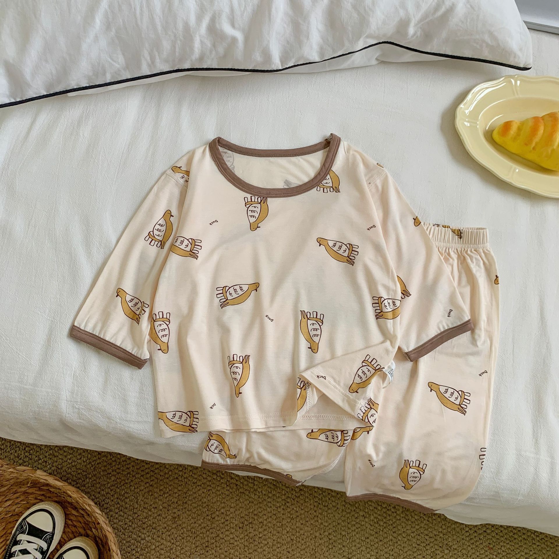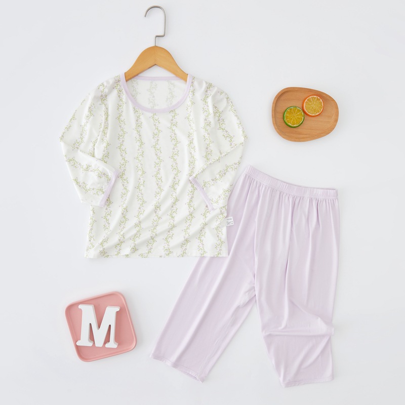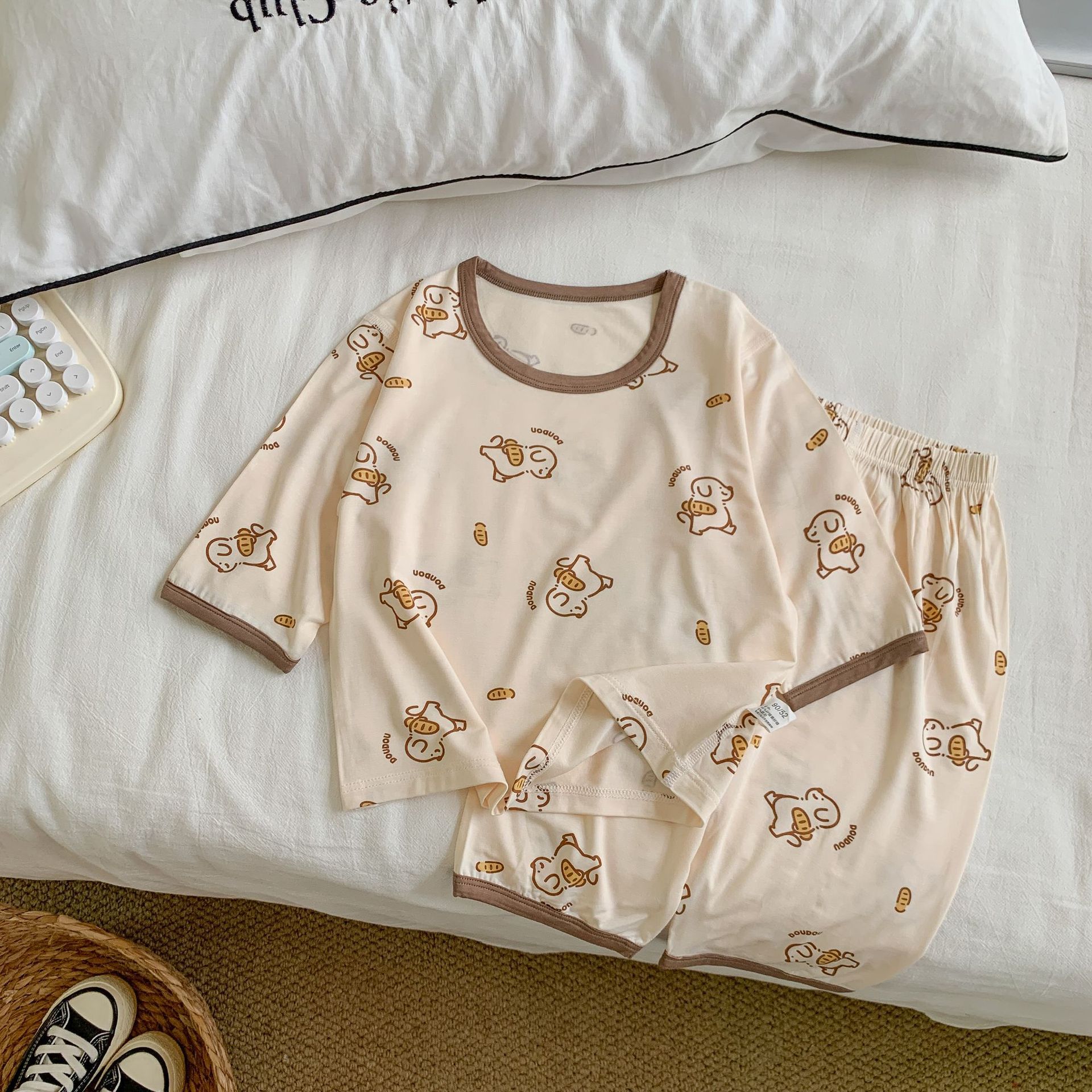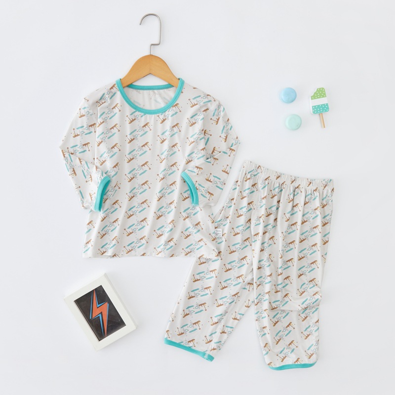 儿童睡衣夏季a类50支优可丝冰哆啦7分袖男女童家居空调服安阳童装