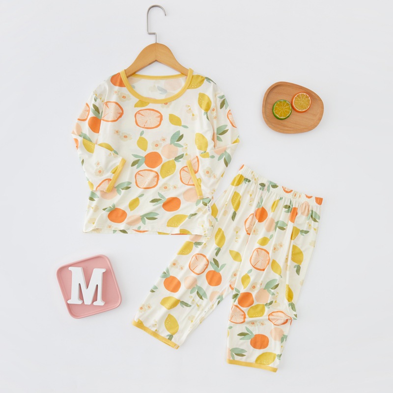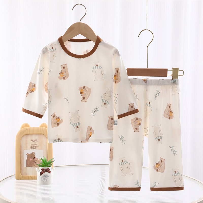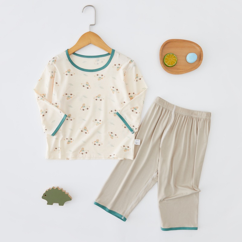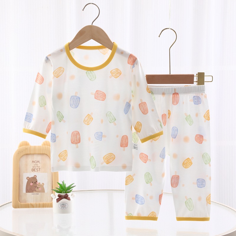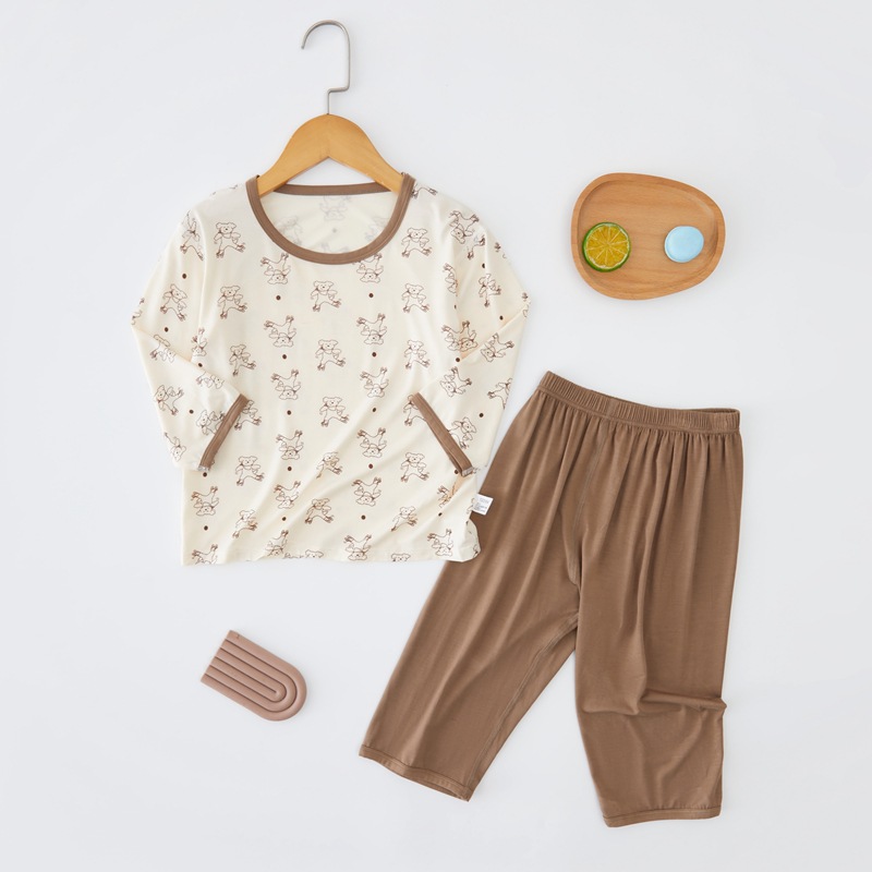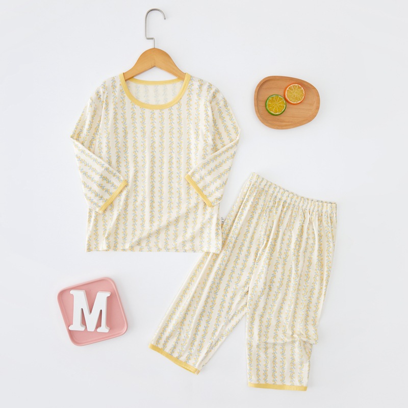 儿童睡衣夏季a类50支优可丝冰哆啦7分袖男女童家居空调服安阳童装