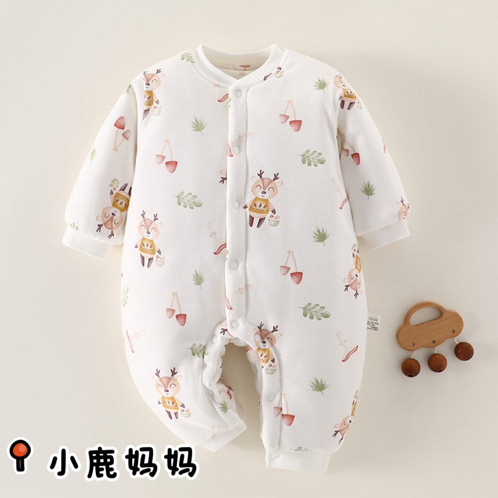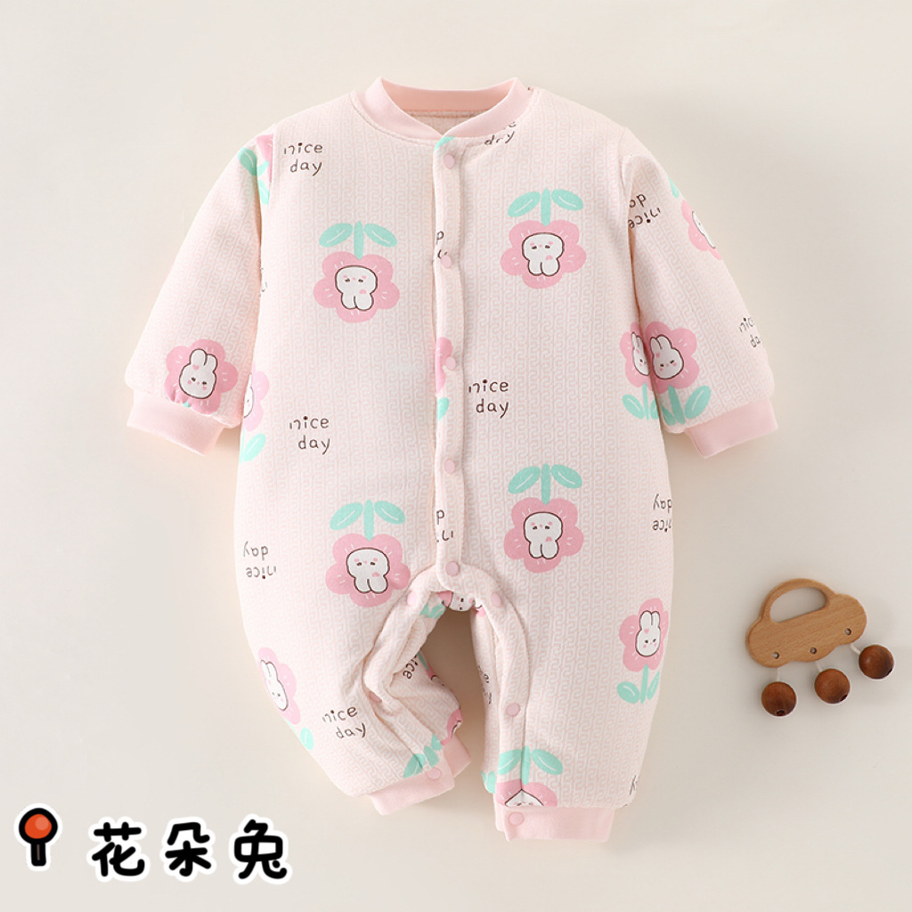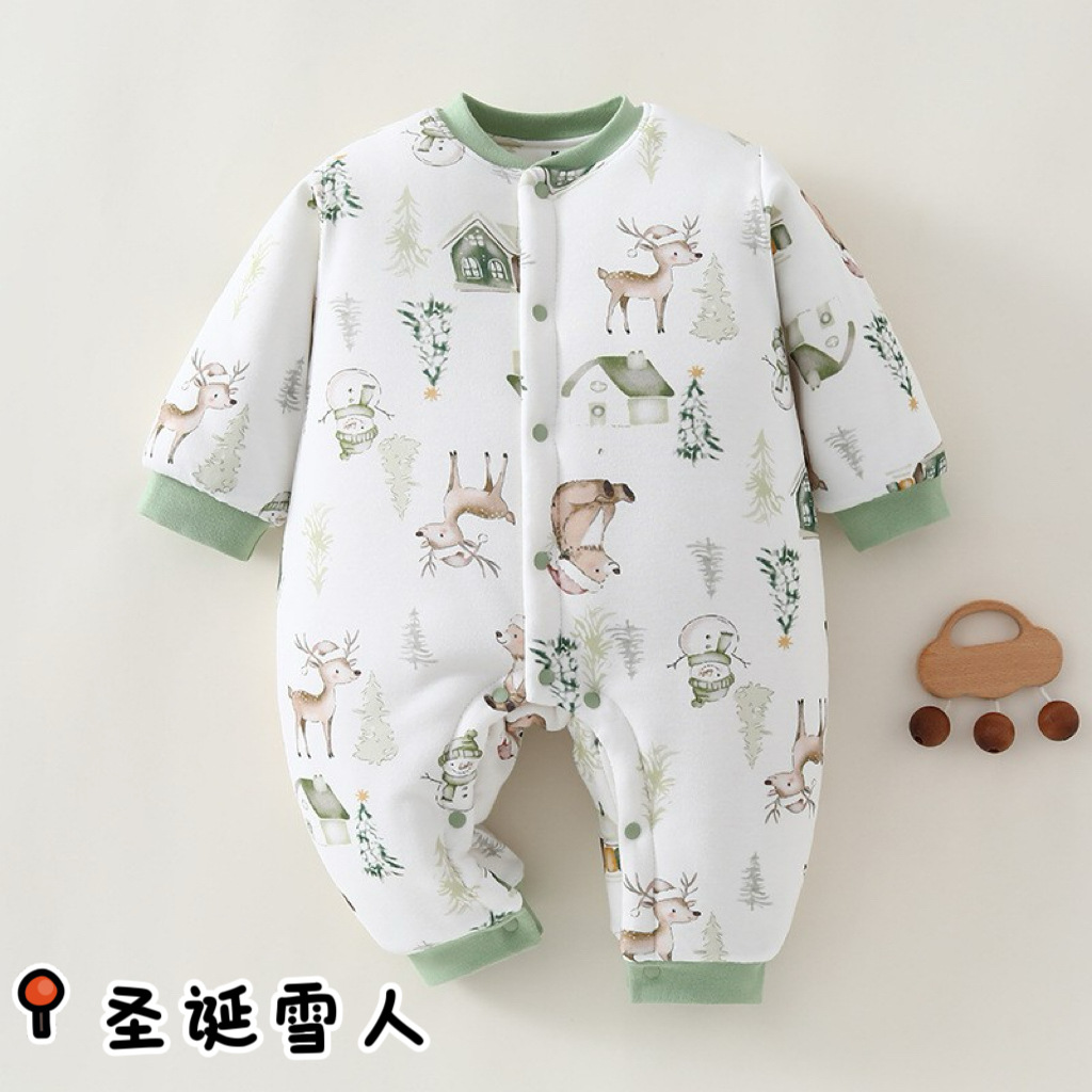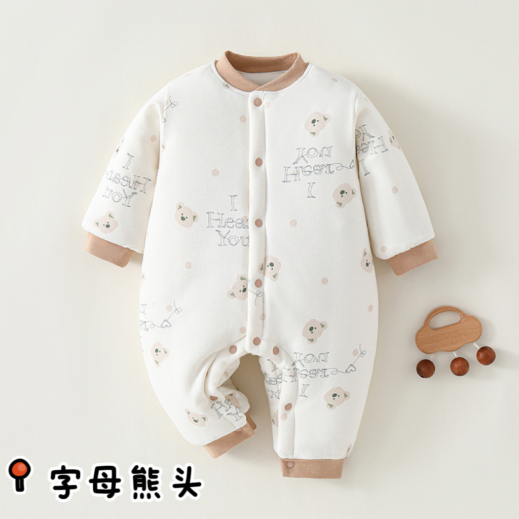 冬款婴儿连体衣夹棉三层保暖加厚新生儿衣服A类纯棉宝宝哈衣爬服