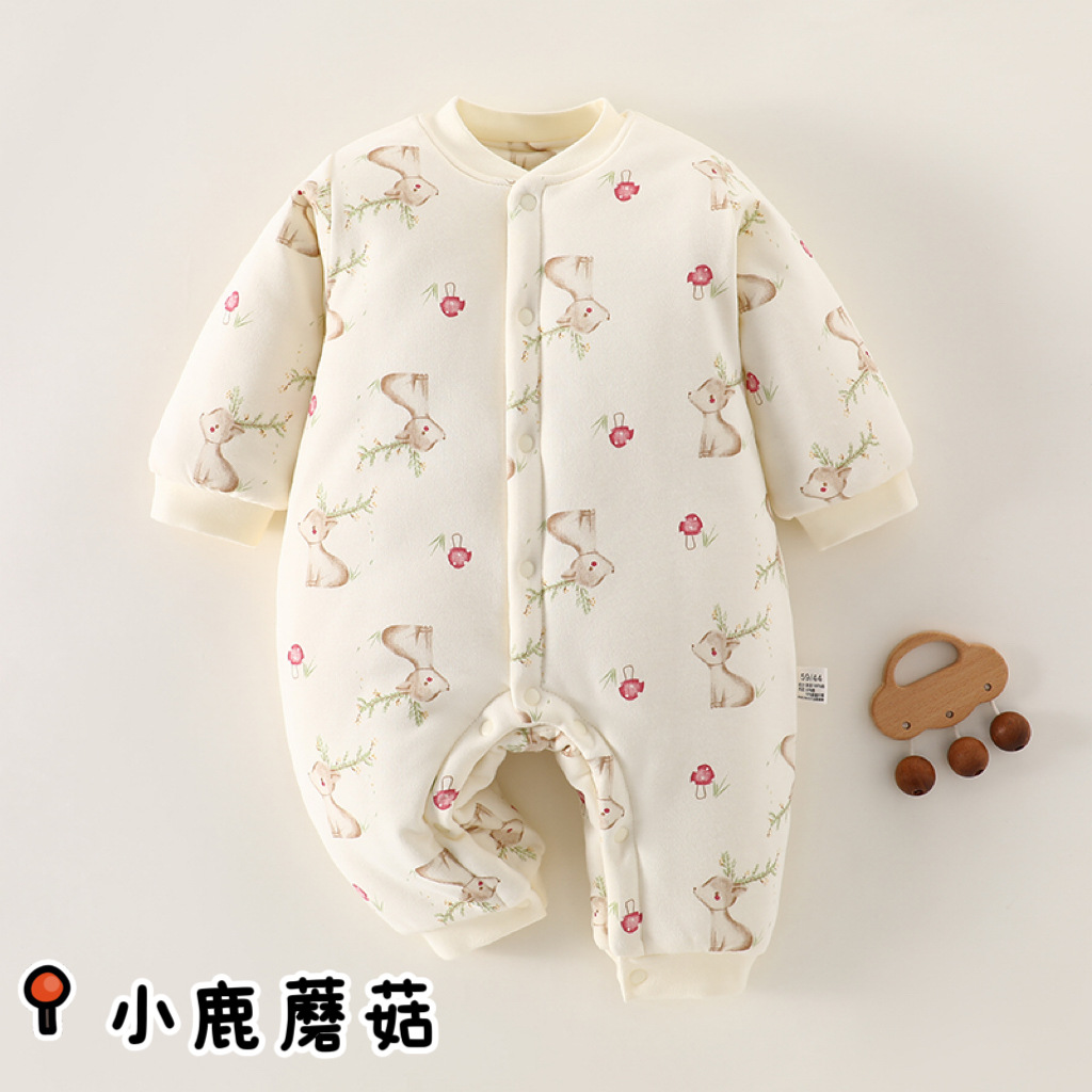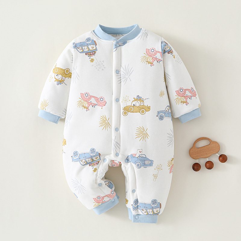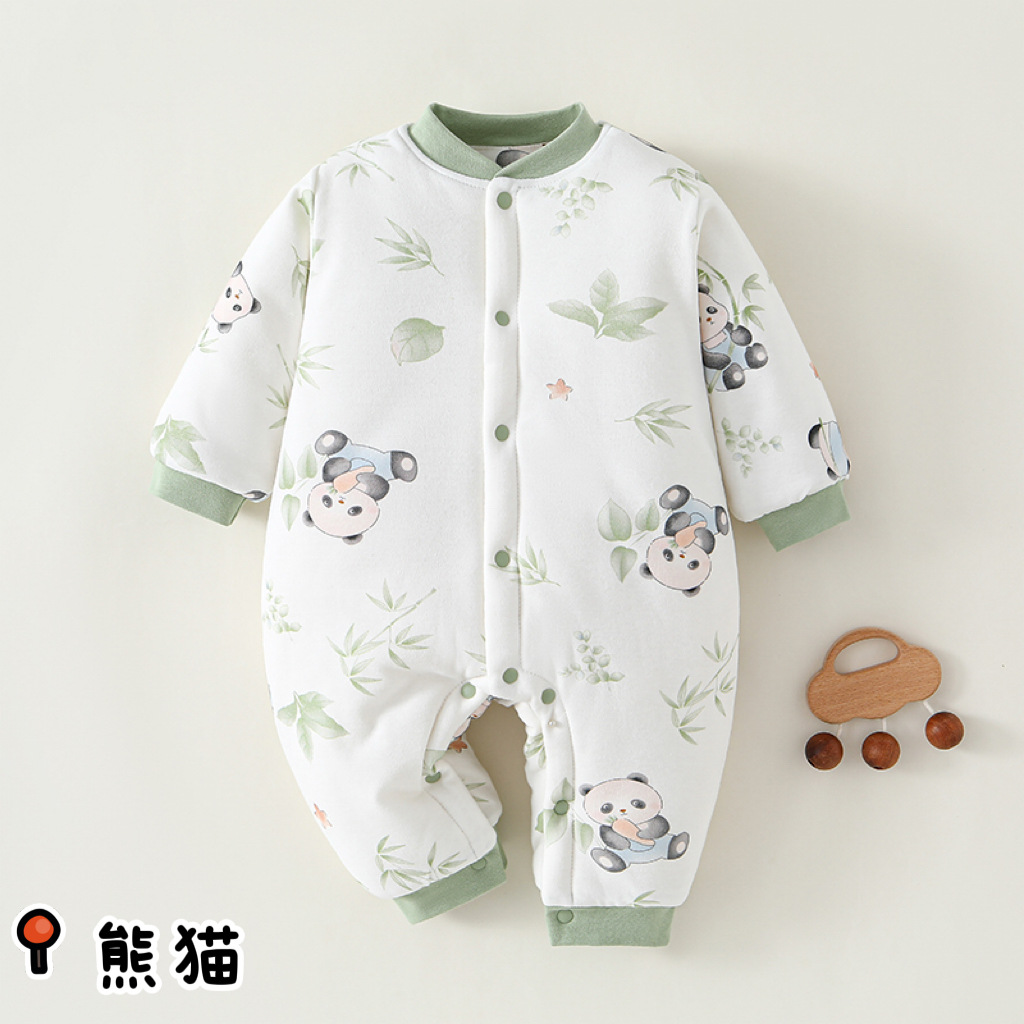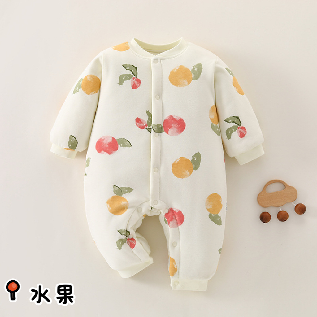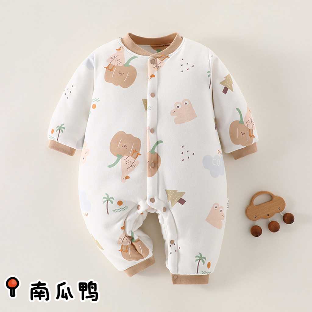 冬款婴儿连体衣夹棉三层保暖加厚新生儿衣服A类纯棉宝宝哈衣爬服