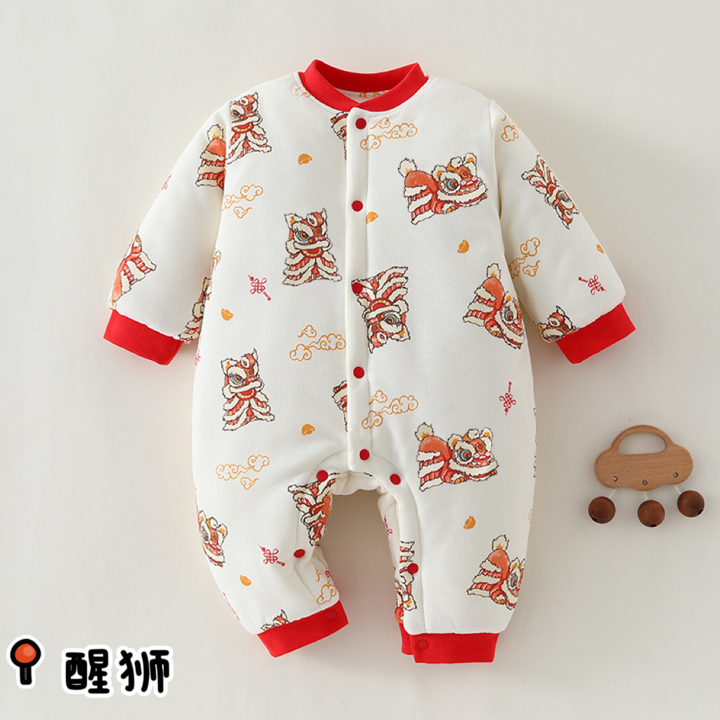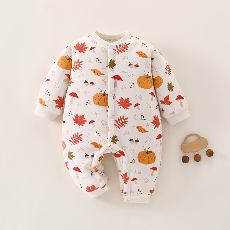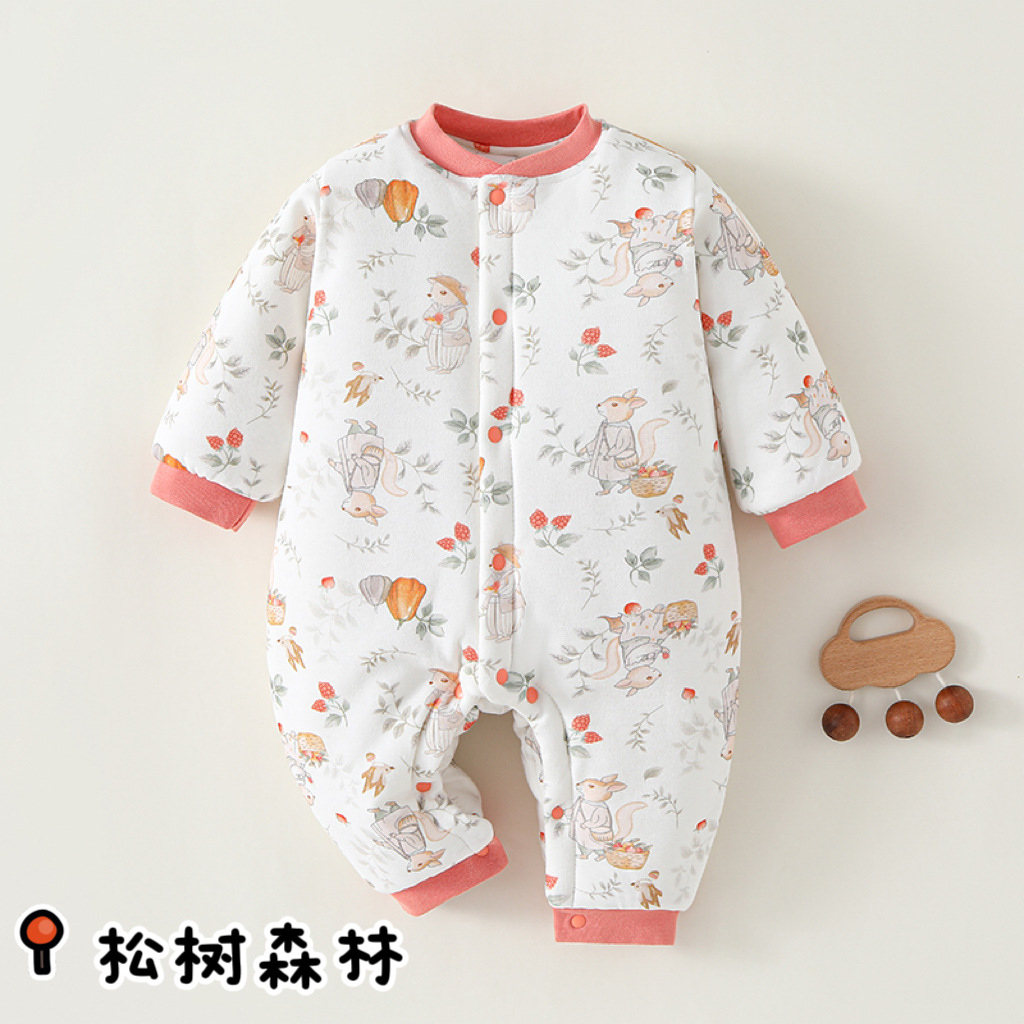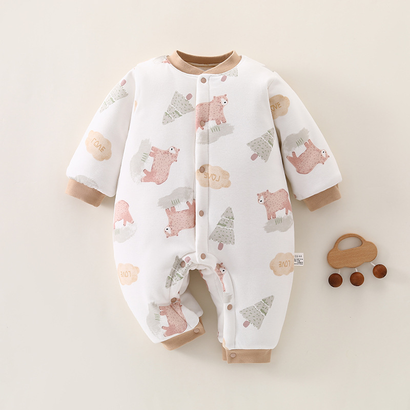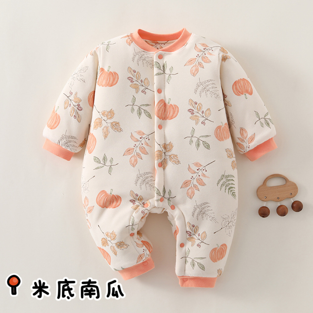 冬款婴儿连体衣夹棉三层保暖加厚新生儿衣服A类纯棉宝宝哈衣爬服