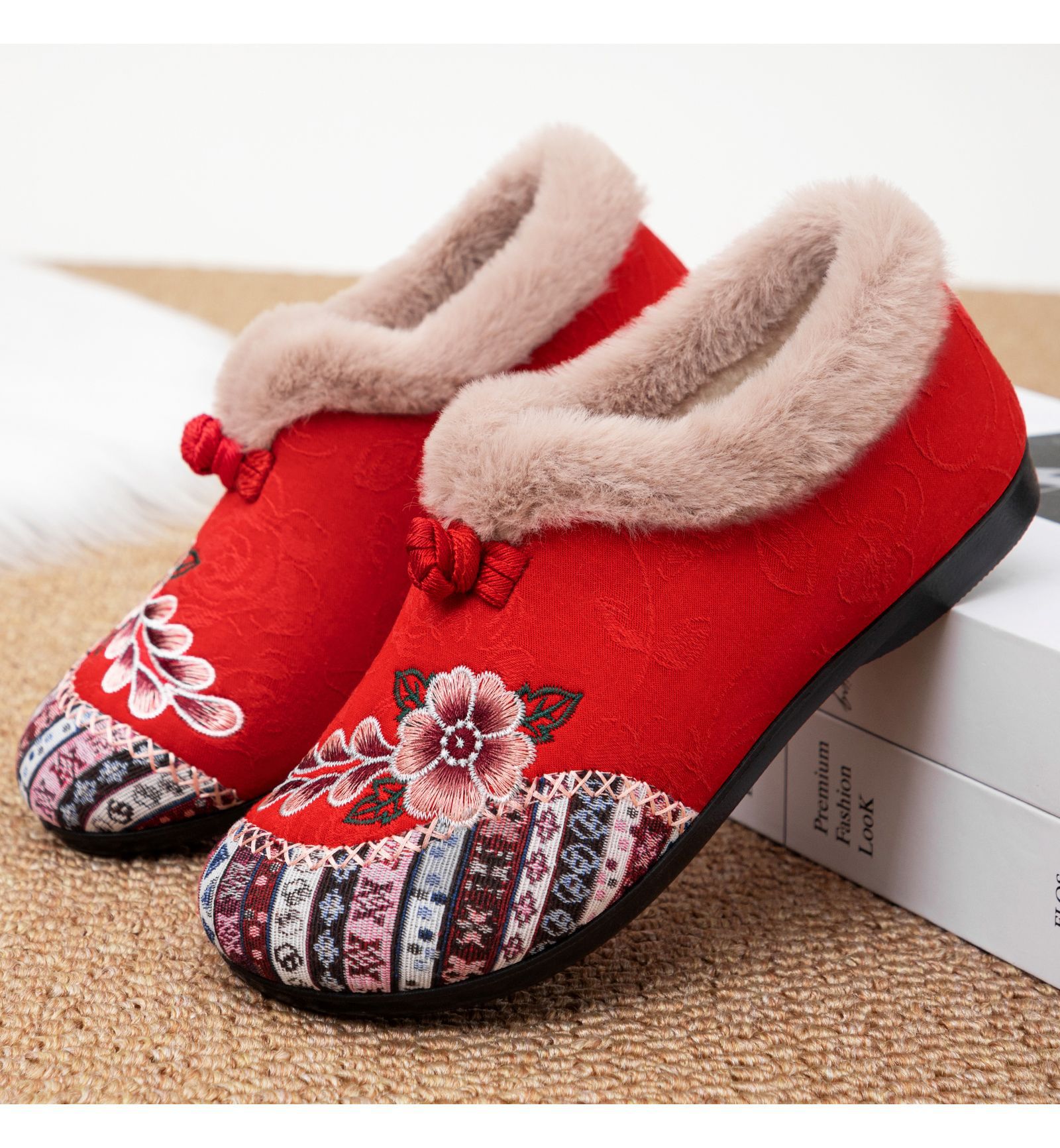 鞋子女棉鞋跨境代发雪地靴刺绣女靴保暖浅口短靴民族风时尚棉靴