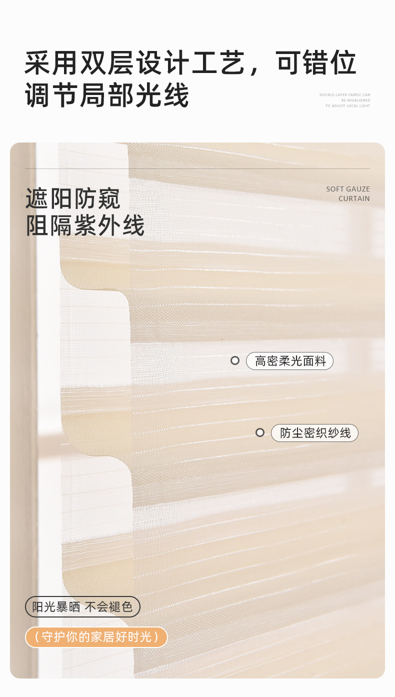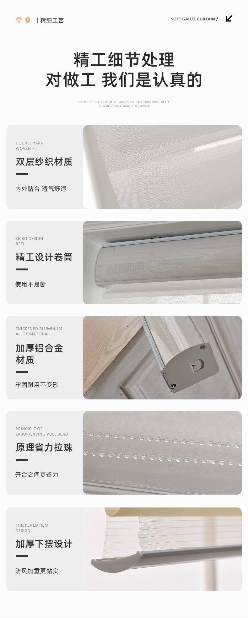 香格里拉加厚柔纱帘现代简约免打孔升降卷帘遮光厨房卫生间窗帘