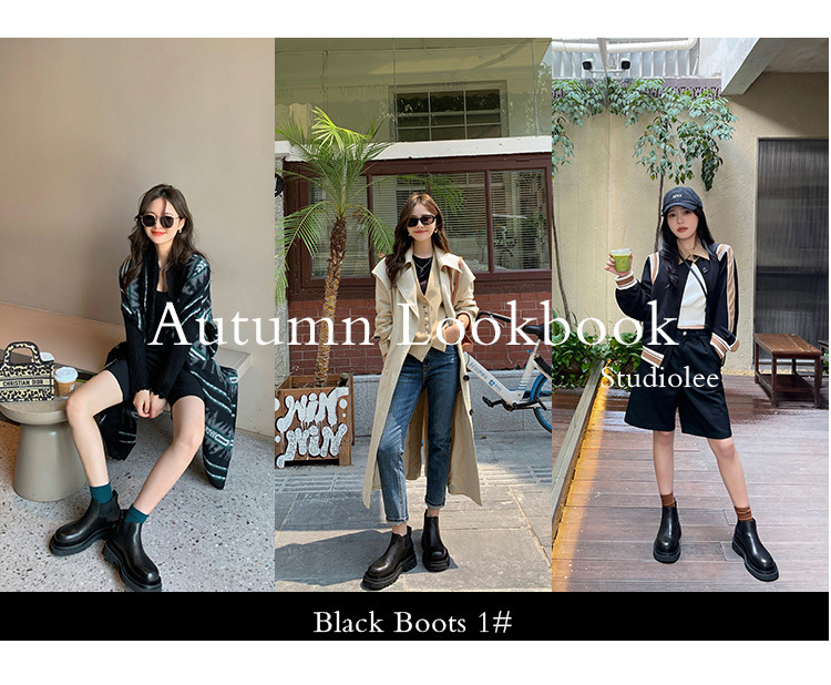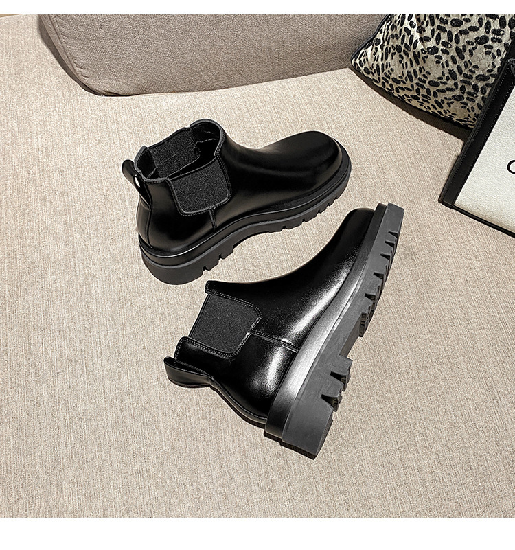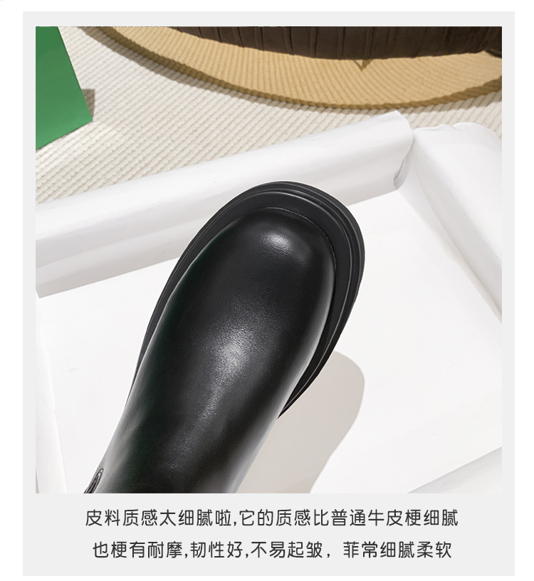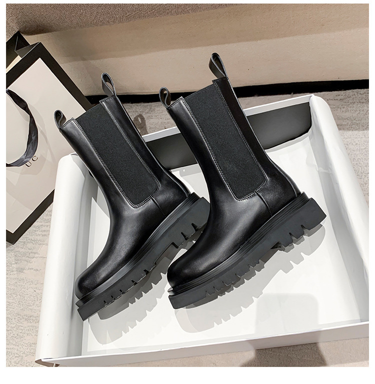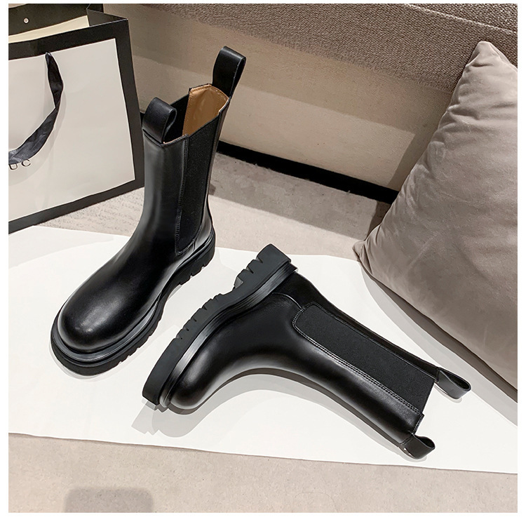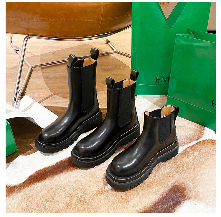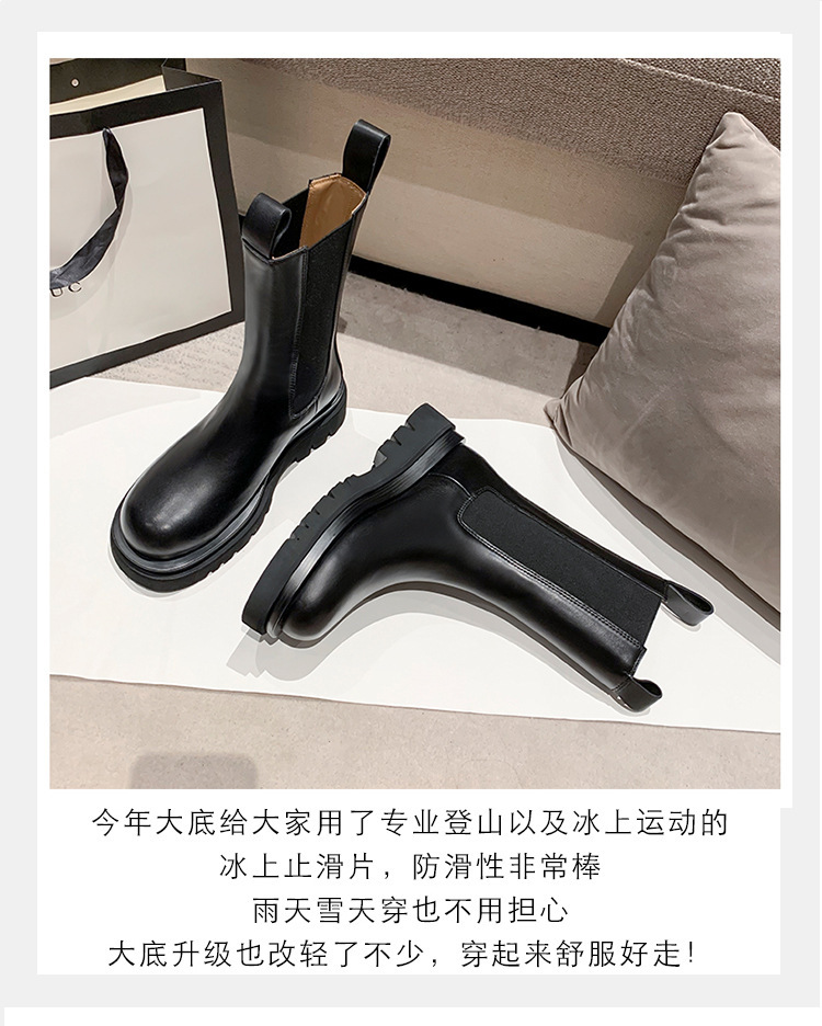 牛皮版~新款加绒厚底切尔西短靴女内增高马丁靴英伦风烟筒中筒靴