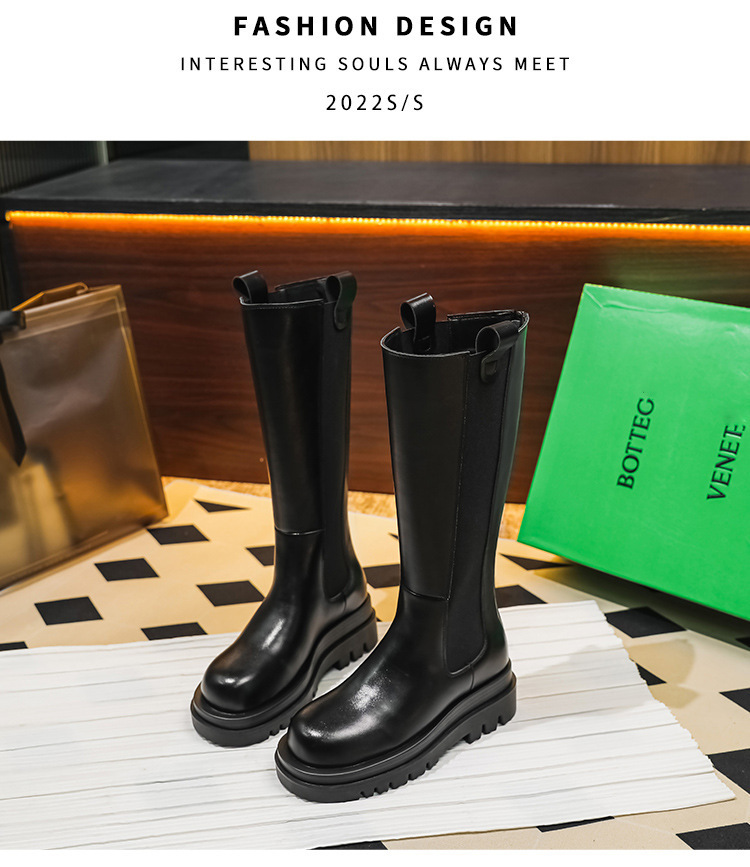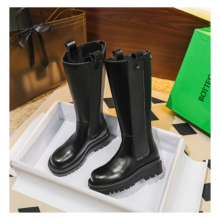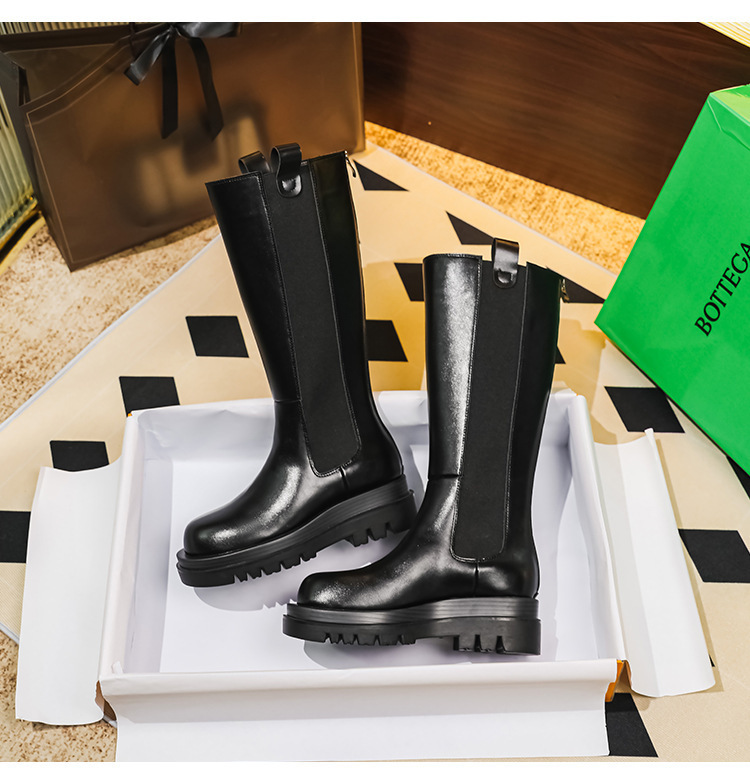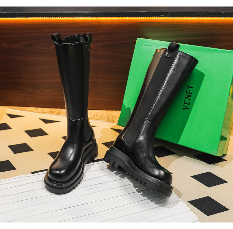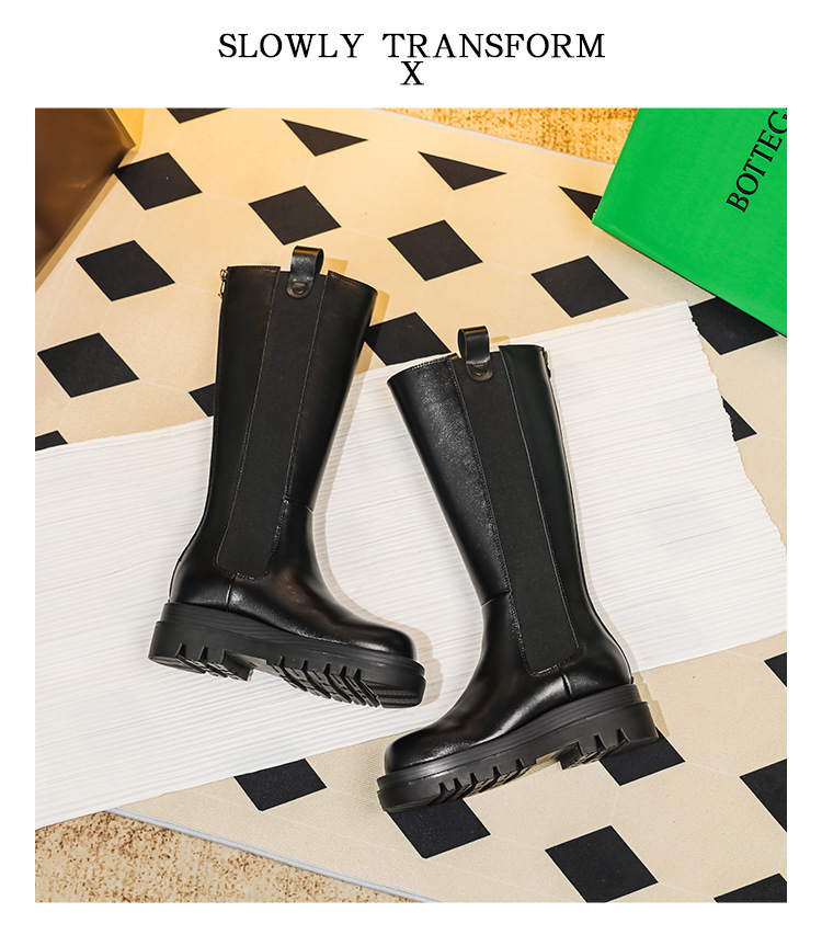 牛皮版~新款马丁靴女长筒靴骑士靴加绒保暖内增高靴厚底高筒靴子