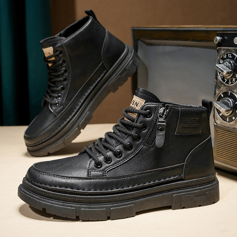 高帮休闲鞋子男2025秋季新款马丁靴复古男鞋工装皮鞋防滑耐磨皮靴