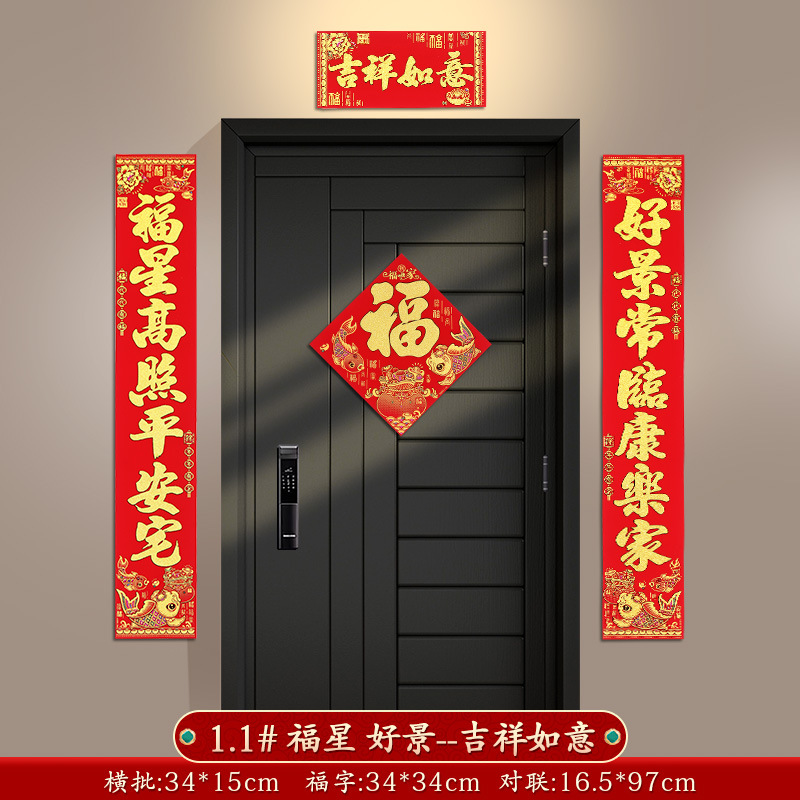 | including lucky word door sticker-[flannel couplet + self-adhesive]](含福字门贴-【绒布对联+自带背胶】) | USD $1.3 | 29982 pair available |