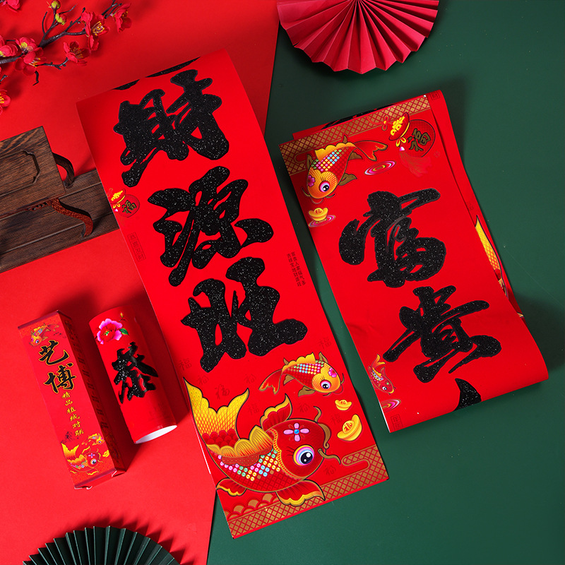 对联批发2026马年植绒春联春节新年金粉铜版纸烫金装饰年货门贴