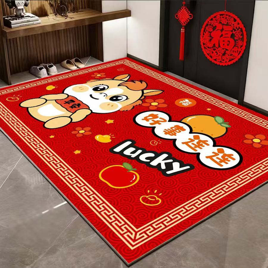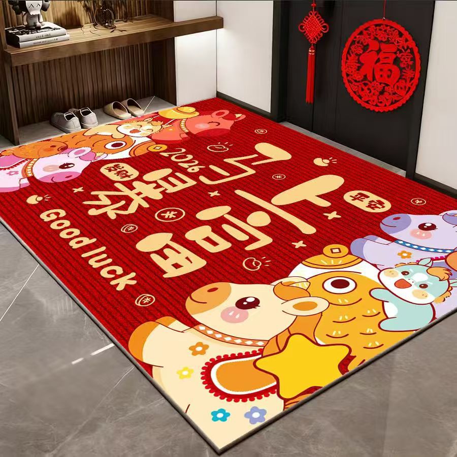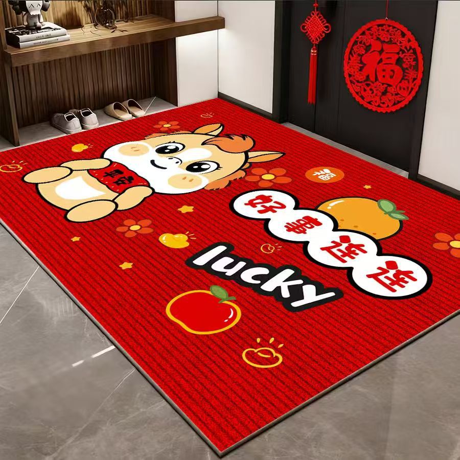 2026年新年地垫红色喜庆地毯吸水防滑好打理脚垫新款马年吉祥地垫