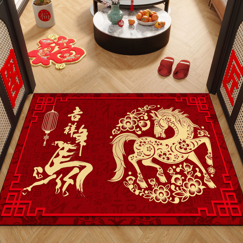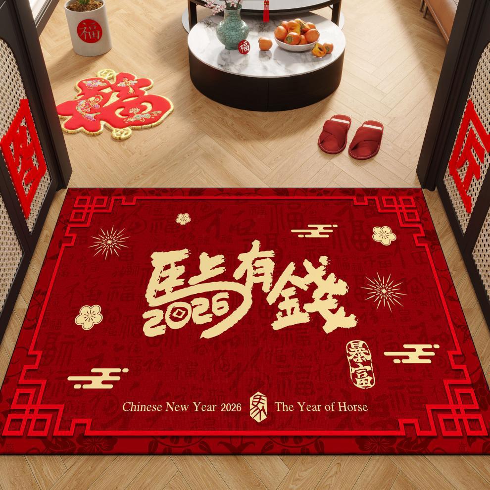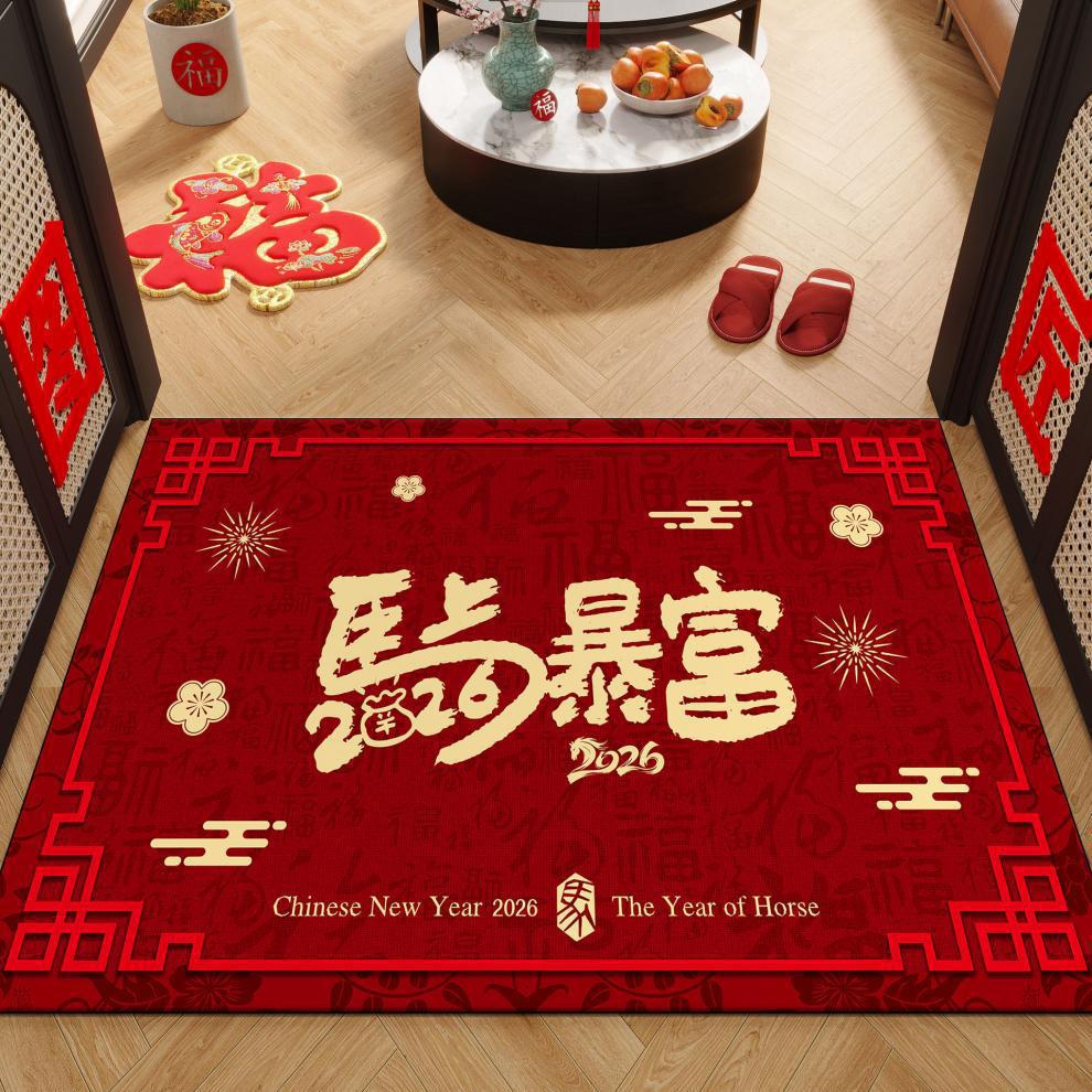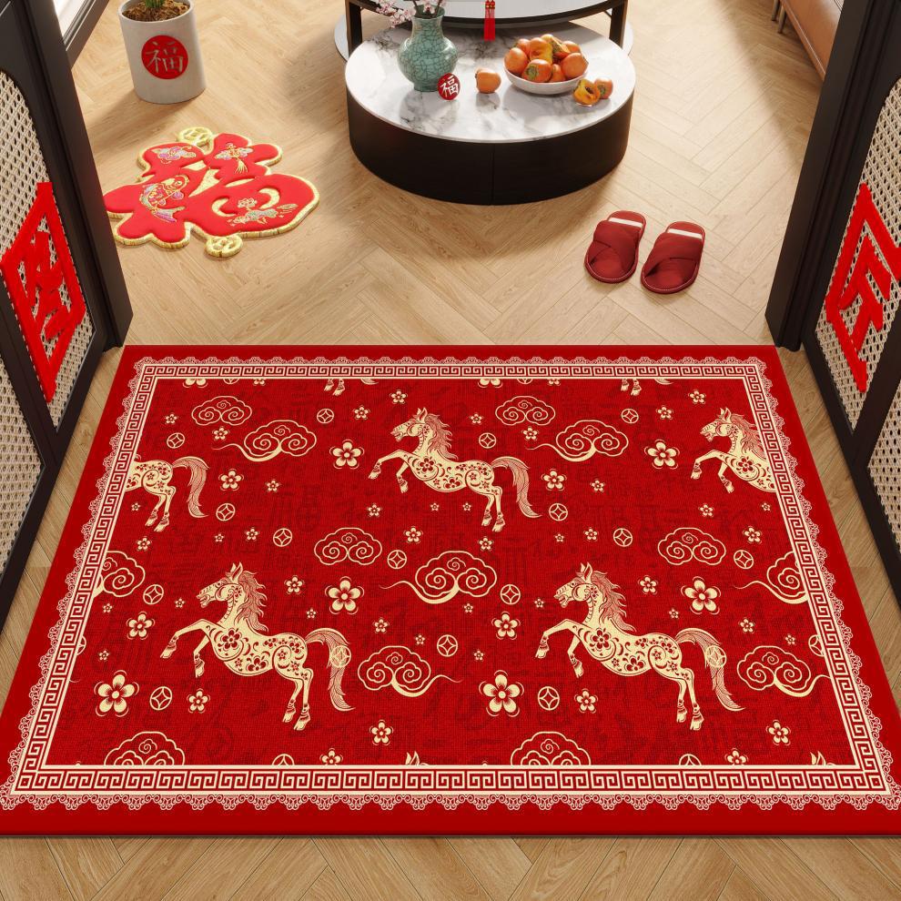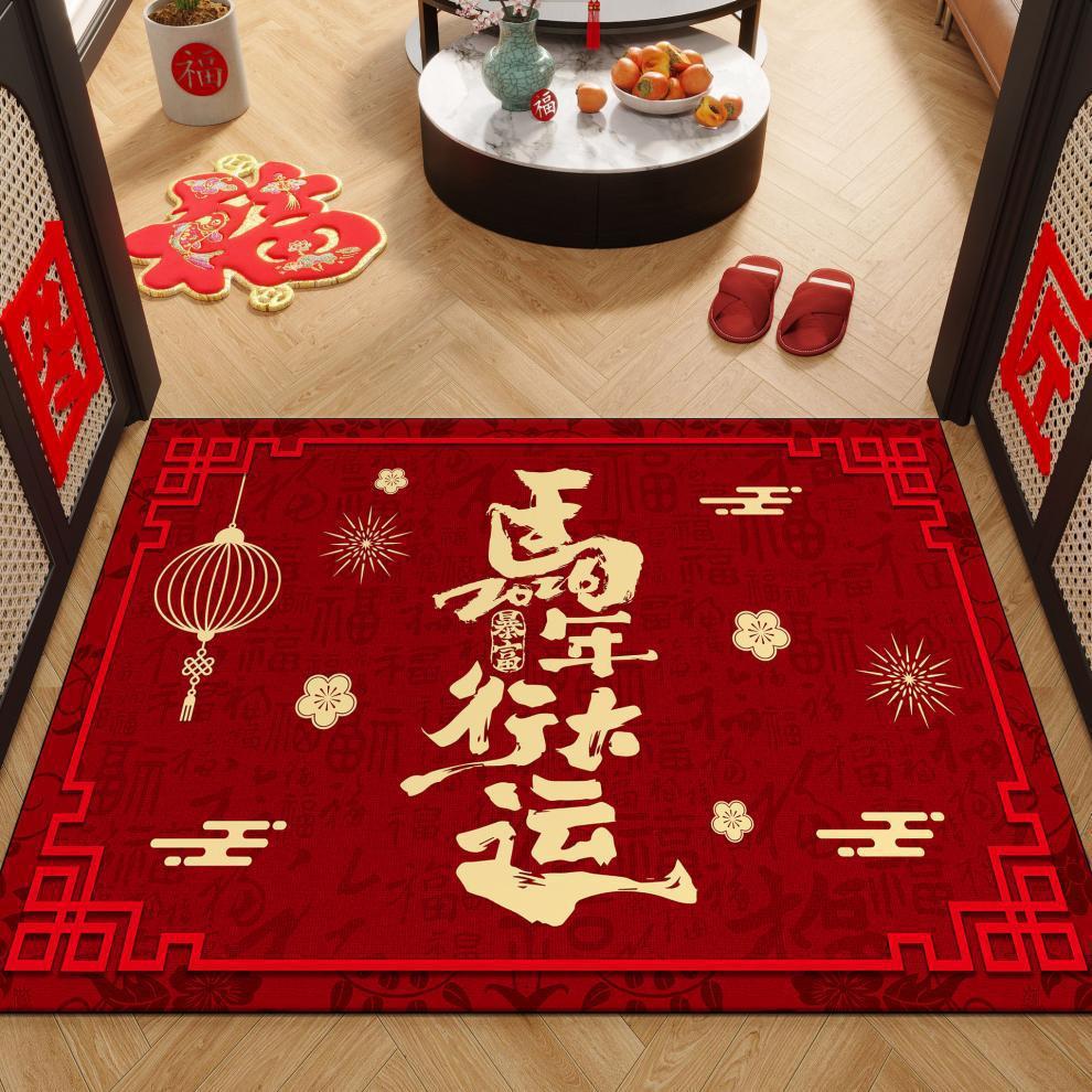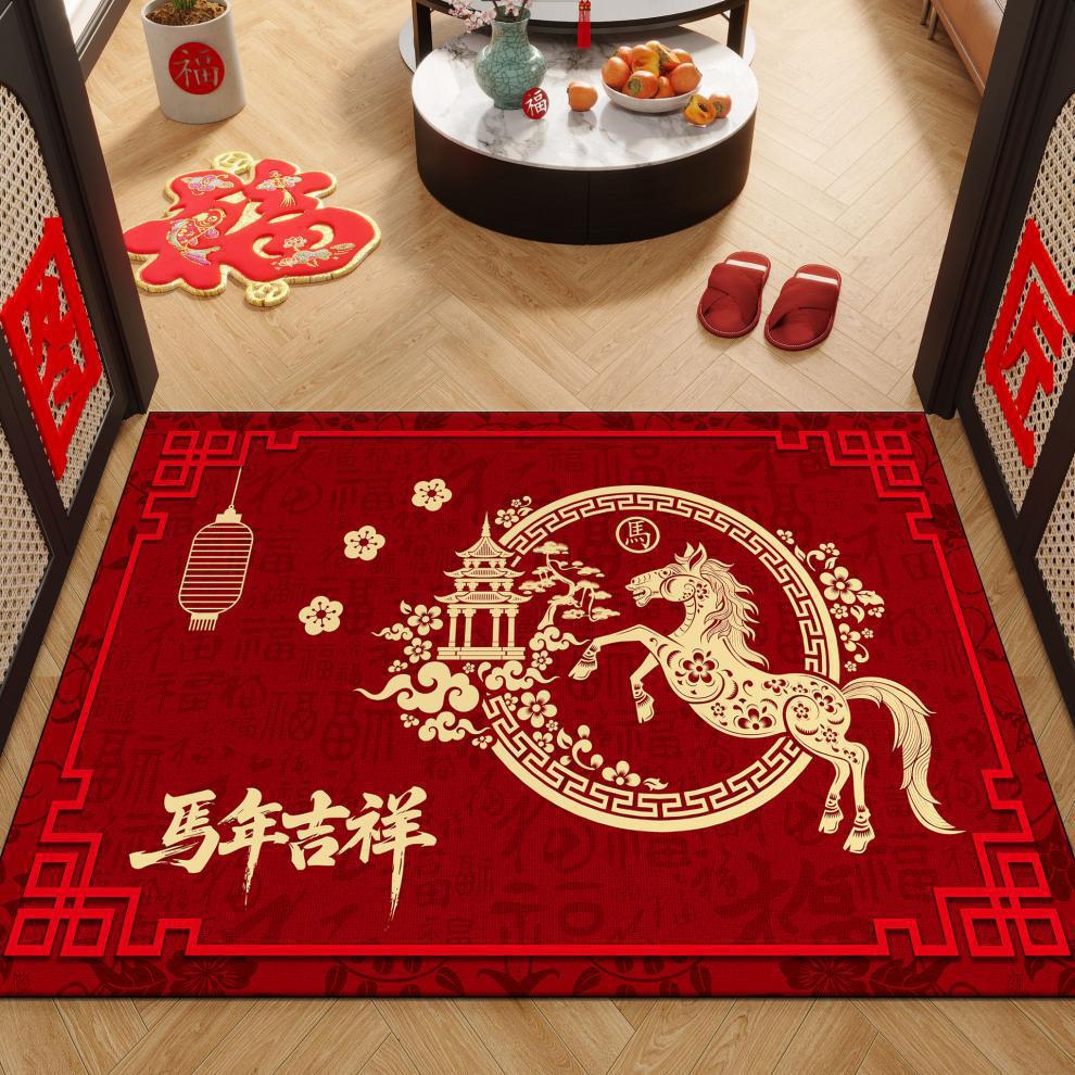 2026马年玄关门口地垫喜庆新中式家用防滑脚垫红门垫入户进门地毯