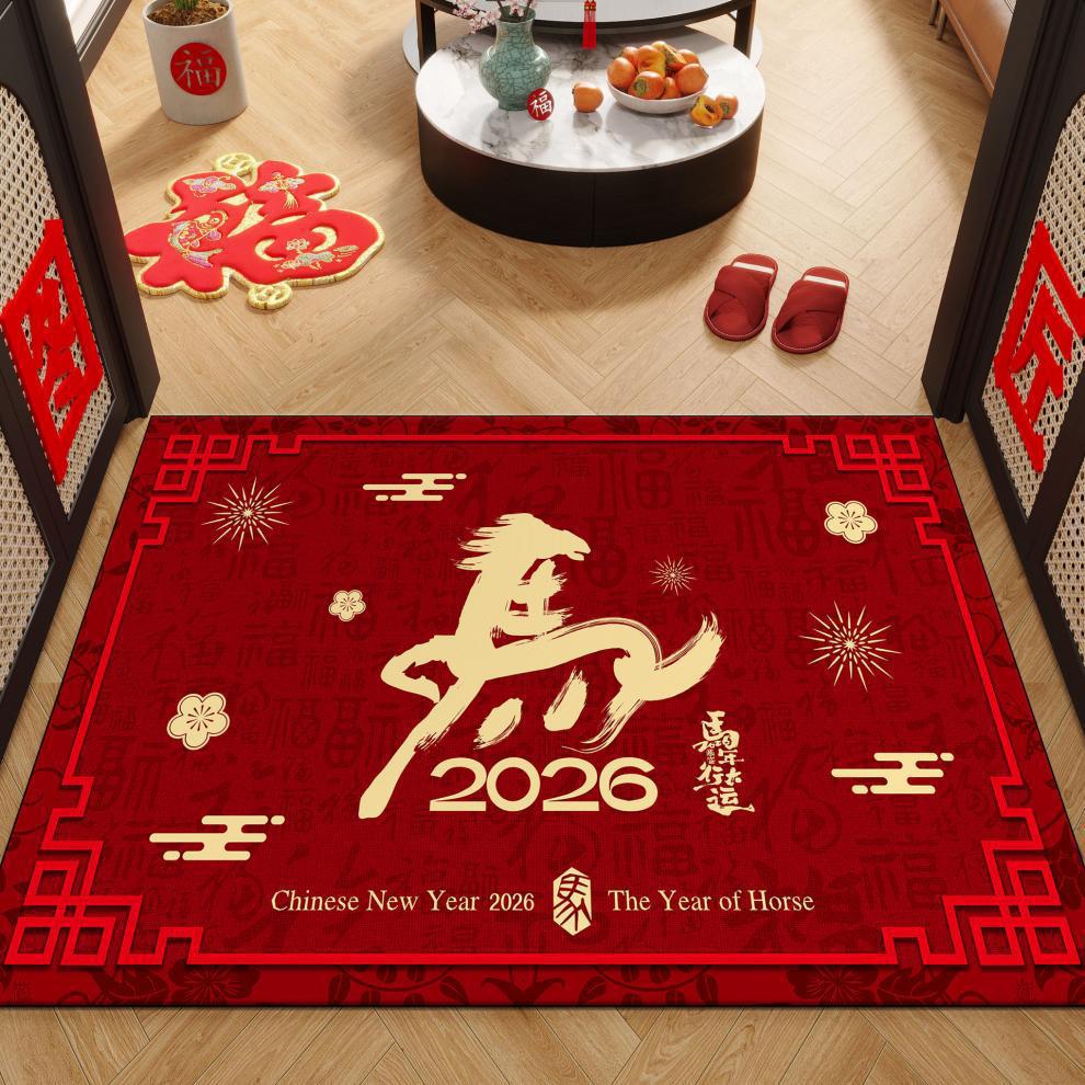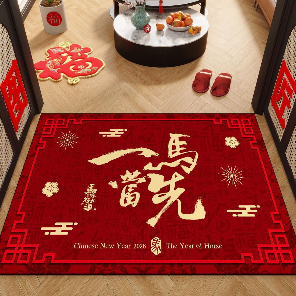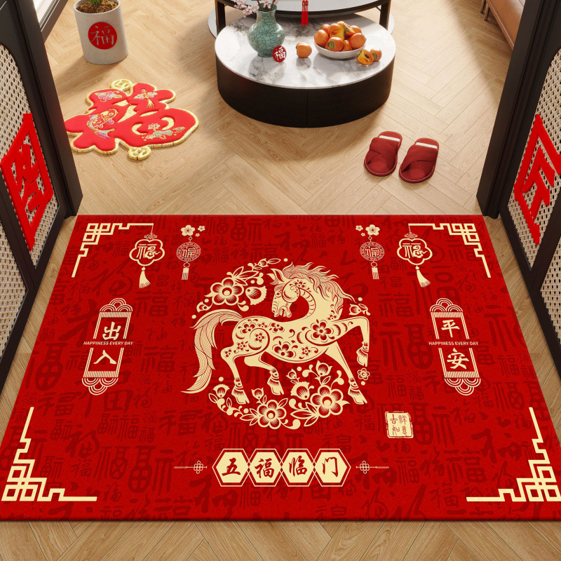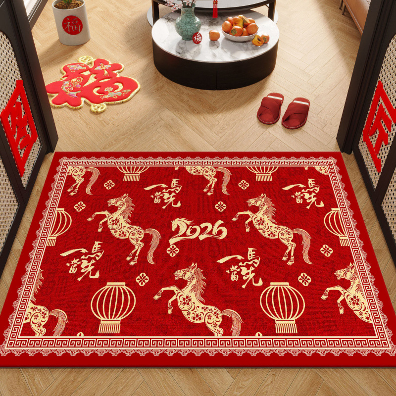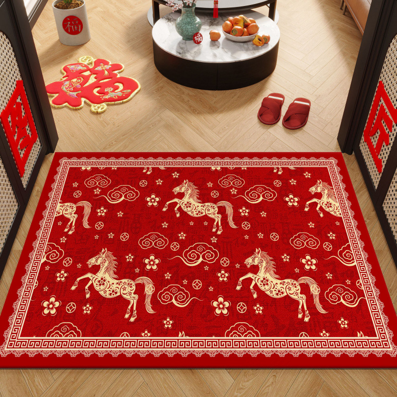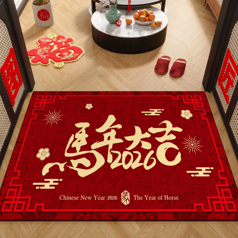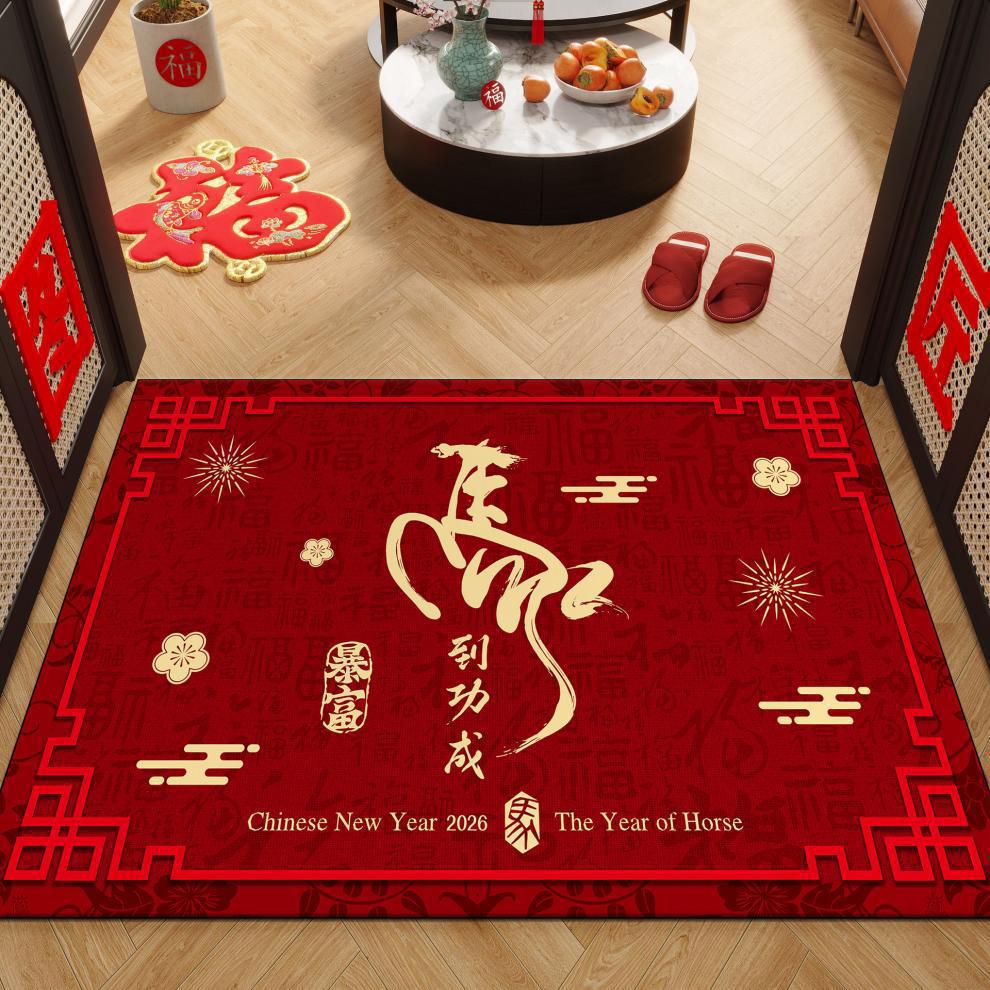 2026马年玄关门口地垫喜庆新中式家用防滑脚垫红门垫入户进门地毯